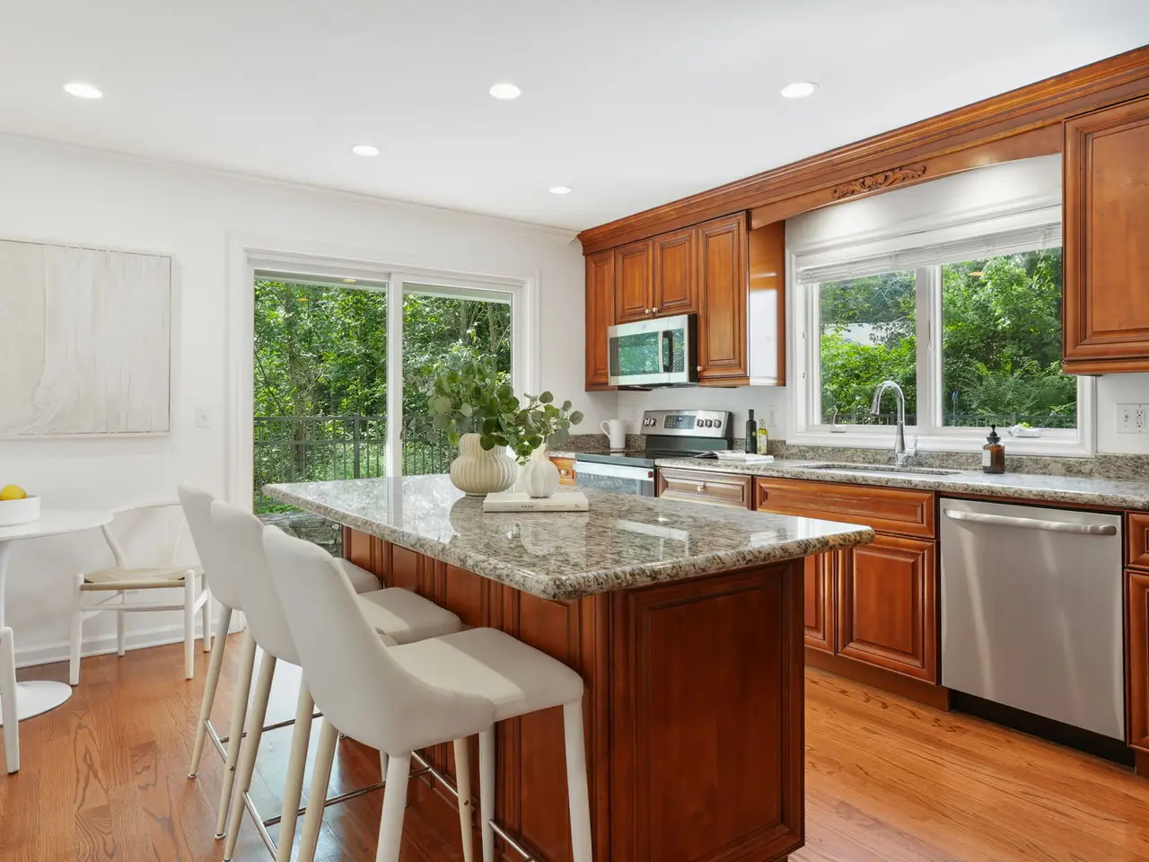 Charming three-bedroom Darien colonial on quiet cul-de-sac offers 2,064 sqft of beautifully appointed living space on a lush 0.52-acre parcel with large rear private patio with a low maintenance setting with tasteful landscaping. Inside the home flows effortlessly, with a spacious living room featuring hardwood floors and a cozy fireplace. The heart of the home - an open kitchen with center island that seamlessly connects to the dining area and sliders that provides easy access to outdoor entertaining. A flexible upstairs family room is ideal for a home office, playroom or media lounge. Retreat upstairs to the three well-proportioned bedrooms, including a primary suite graced with hardwood floors and ample natural light, and two adult-sized secondary bedrooms. Two full baths and a half bath ensure comfort and convenience for family and guests. Practical features include central laundry (off the kitchen), garage with automatic opener, and efficient zoned heating powered by propane and Central AC. The home sits on a quaint street with a level lot yet conveniently close to Goodwives Shopping Center, Trader Joe's, Downtown Darien, and the train - Perfect for daily life or commuting. Located in the sought-after Darien school district (Tokeneke Elementary, Middlesex Middle, and Darien High), this picture-perfect home embodies the ideal blend of elegance, comfort, and convenience. A rare opportunity to move right into a gorgeous home in a wonderful neighborhood!!