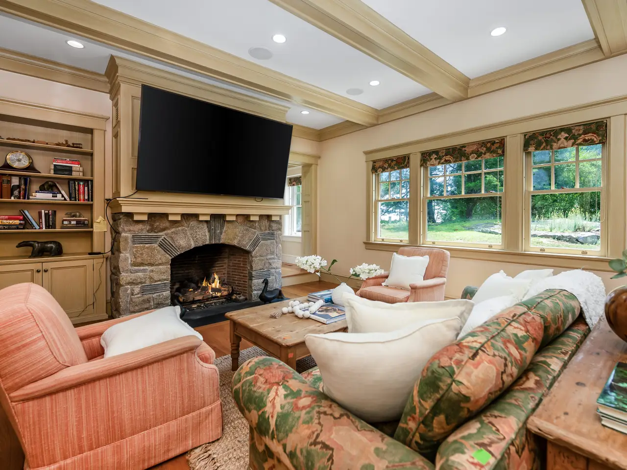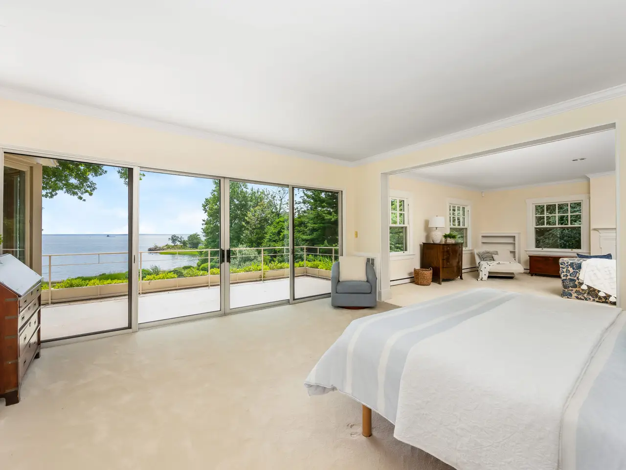 Introducing one of Tokeneke's most iconic waterfront estates-available for the first time in 50 years. This rare and storied compound is set on 2.4 acres of exquisitely landscaped grounds with 180 feet of private shoreline along Long Island Sound. It offers an unrivaled blend of historic charm, timeless elegance, and breathtaking coastal beauty. A sweeping two-story paneled foyer leads to a gracious formal living and dining rooms with soaring ceilings, fireplaces, and uninterrupted views of the water. Sunlight pours into the sophisticated sunroom-an ideal setting for quiet mornings or refined entertaining. The expansive kitchen and breakfast area open seamlessly to a family room with a granite fireplace, while a discreet back stairway leads to a stunning double-height billiards room with vaulted, beamed ceilings. The second floor is anchored by a grand primary suite with an oversized waterfront balcony, offering a private vantage point for sunsets over the Sound. Two additional bedrooms complete this level, with three more on the top floor to accommodate family or guests in style. A separate three-car garage includes a fully finished upper level with a full bath - ideal for a guest suite, gym, or private office. This exceptional estate embodies the quiet prestige of a bygone era, offering privacy, beauty, and unparalleled access to the water-all in the heart of Darien's most coveted private enclave. A once-in-a-generation opportunity to own a true coastal masterpiece.