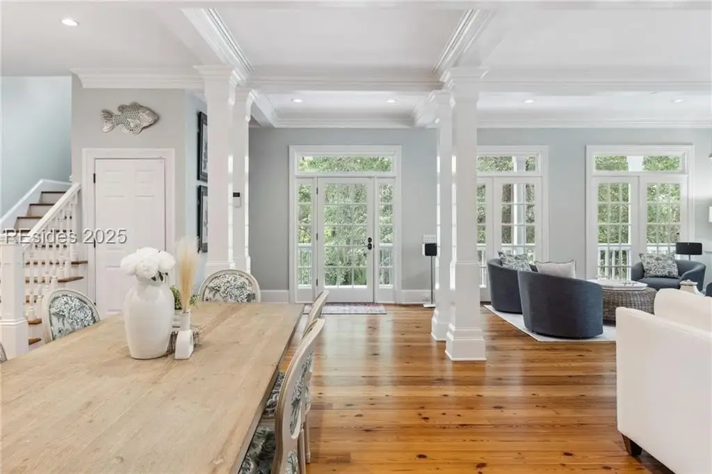 Discover coastal living at its finest in this stunning 3,883 square foot home located in the exclusive Haig Point Community. This beautifully furnished residence features 4 spacious bedrooms and 3.5 bathrooms, highlighted by beautiful heart pine floors Enjoy an open living area, a remodeled gourmet kitchen, and a private office space perfect for remote work. The main-floor master suite offers convenience and comfort. With amazing porches and under-house parking, this extremely private retreat provides 24/7 boat access to the picturesque Daufuskie Island. Golf carts are excluded from the sale.