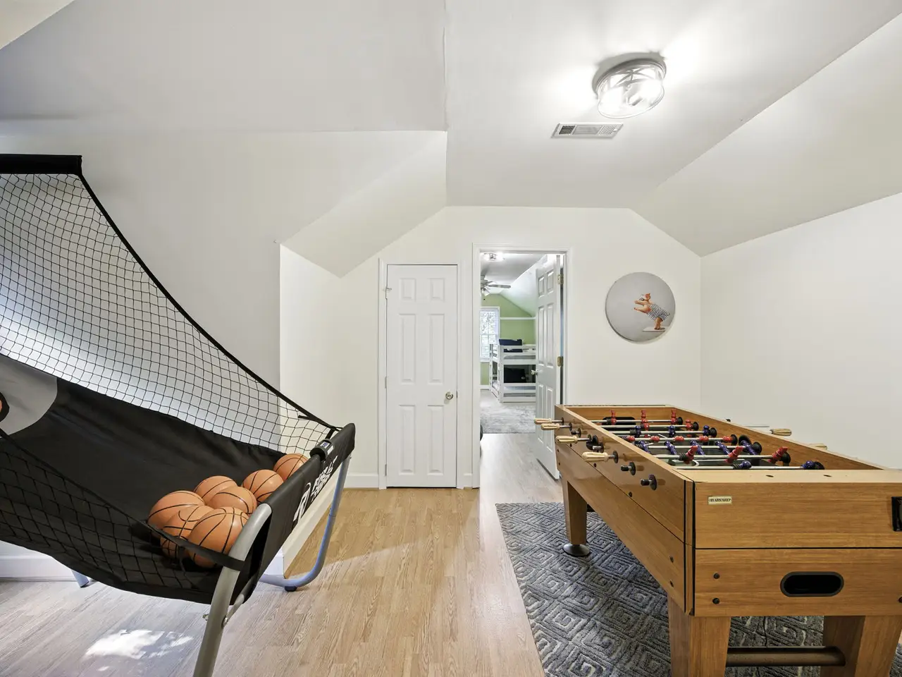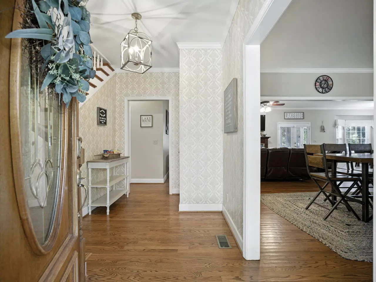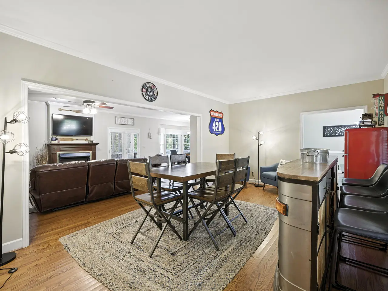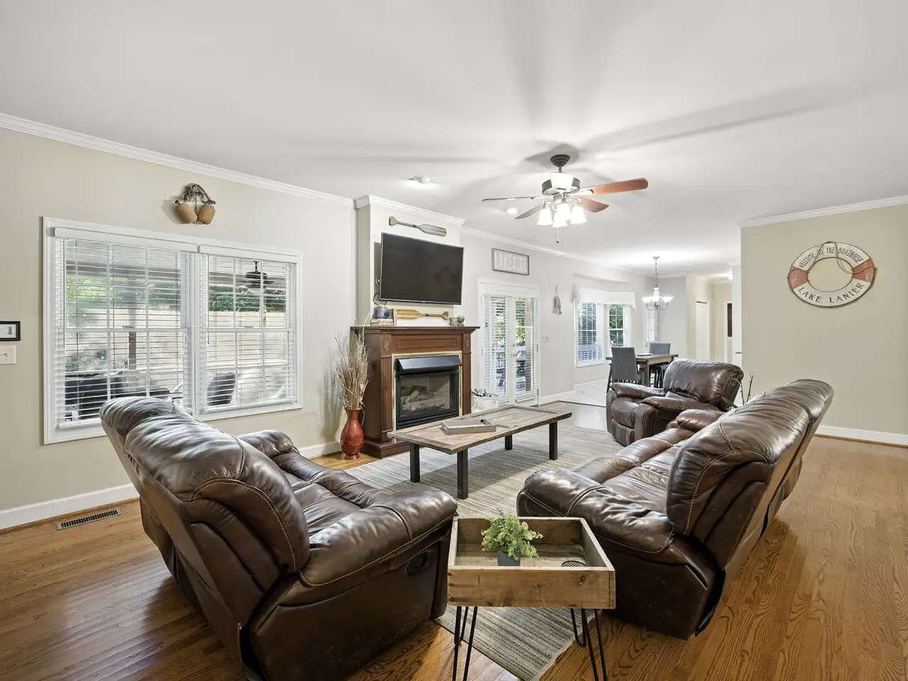 This rare Lake Lanier find offers 4 bedrooms, 4 full baths and 2 oversized bonus rooms making it the perfect retreat for entertaining, relaxing, and enjoying the lake lifestyle. To top it off, the owners are happy to include all the furnishings in the sale price! From the level driveway and inviting front porch, you'll step into a thoughtfully designed home with a graceful flow from the foyer and staircase into the family room, currently enjoyed as a recreation space, and then on to the great room with a cozy fireplace. A wall of windows frames sparkling lake views and draws you into the large, open kitchen with stainless steel appliances, granite countertops, and a bright breakfast area, while the separate dining room provides plenty of space for gathering with family and friends. The main level also includes a spacious suite with an oversized full, along with a convenient half bath and another full bath just off the kitchen for easy access after a day on the water. A large laundry room with sinks makes it simple to handle wet towels and lake gear. Upstairs, five generously sized bedrooms and a full bath provide comfortable accommodations for all your guests. The outdoor living is just as inviting, with an expansive screened-in porch overlooking the water, a side deck with connections for a hot tub in place and a separate grilling deck with ample space for outdoor seating. From there, it's just an easy walk to your private single slip dock with party deck and electricity, where you'll enjoy year-round deep water and wide, open views of the lake. Practical touches add even more appeal, including plenty parking space, two fenced-in yard areas, and a storage shed for all of your lake toys. Nestled on a quiet street, the property is just minutes from War Hill Park boat ramp, Athens Boat Club for gas and fireworks, quick access to Ga 400, Dawsonville shopping, restaurants, hiking, Dahlonega, and North Georgia's favorite wineries. With its blend of comfort, convenience, and its proven success as a short-term rental, this is a rare opportunity on Lake Lanier that you won't want to miss!