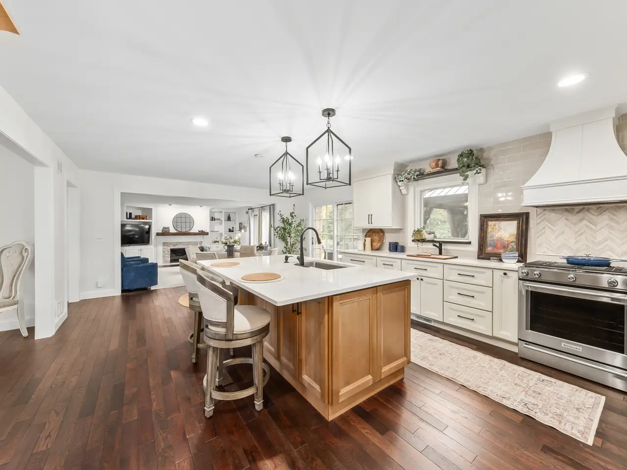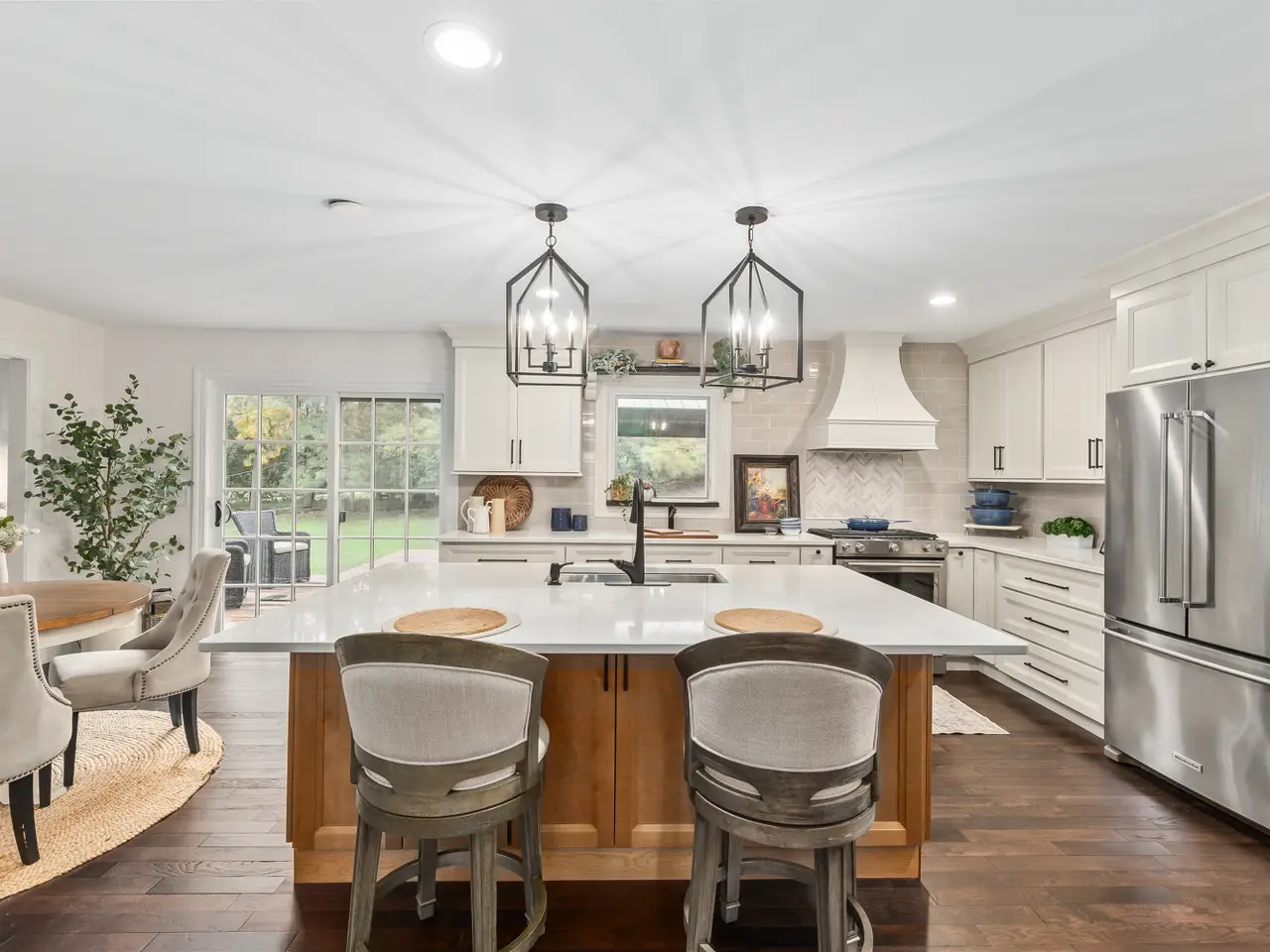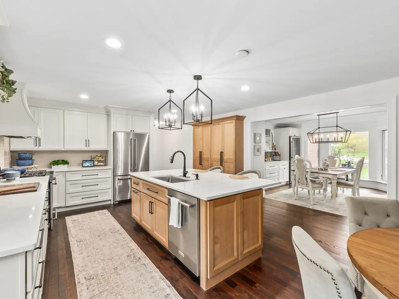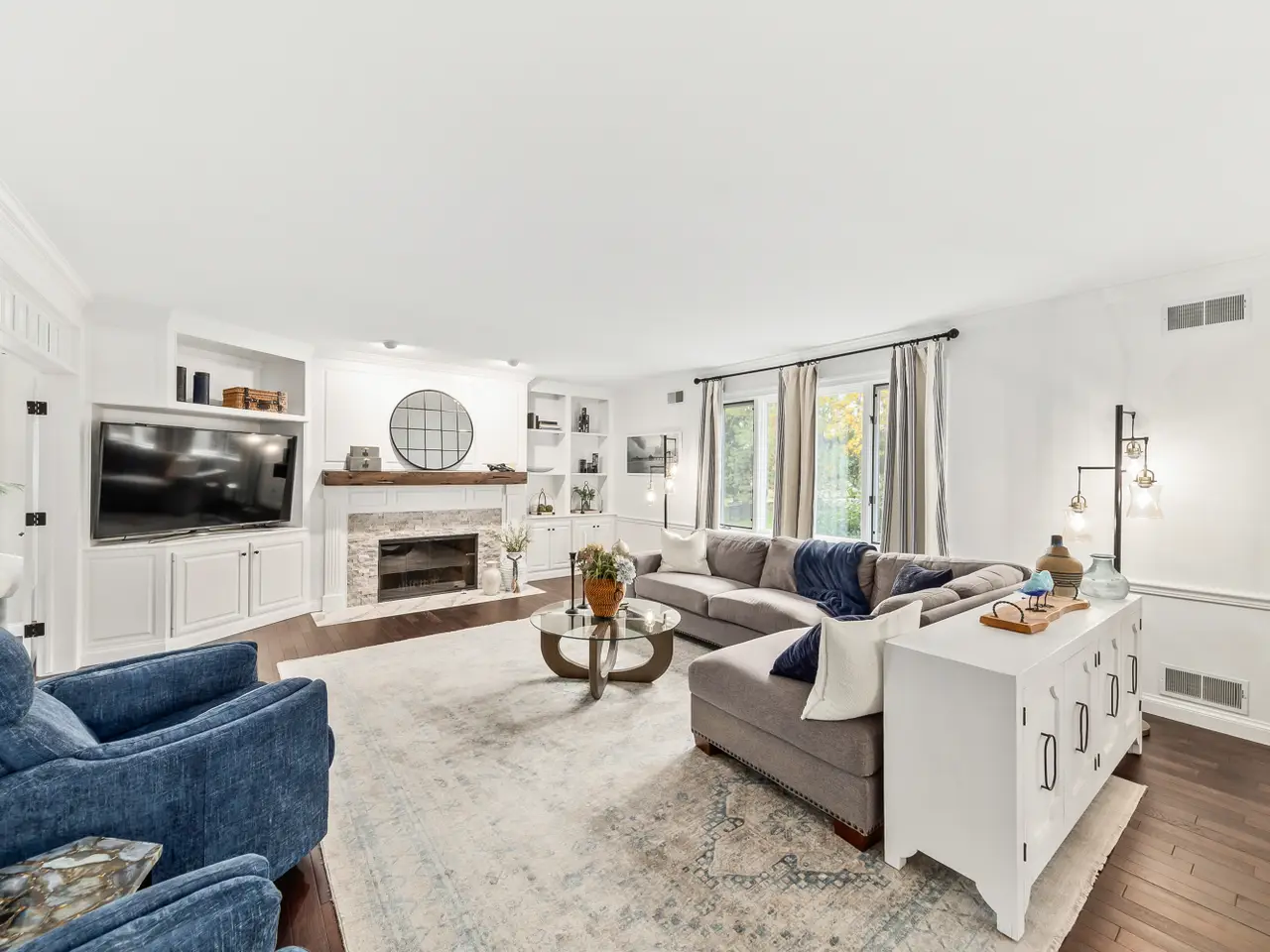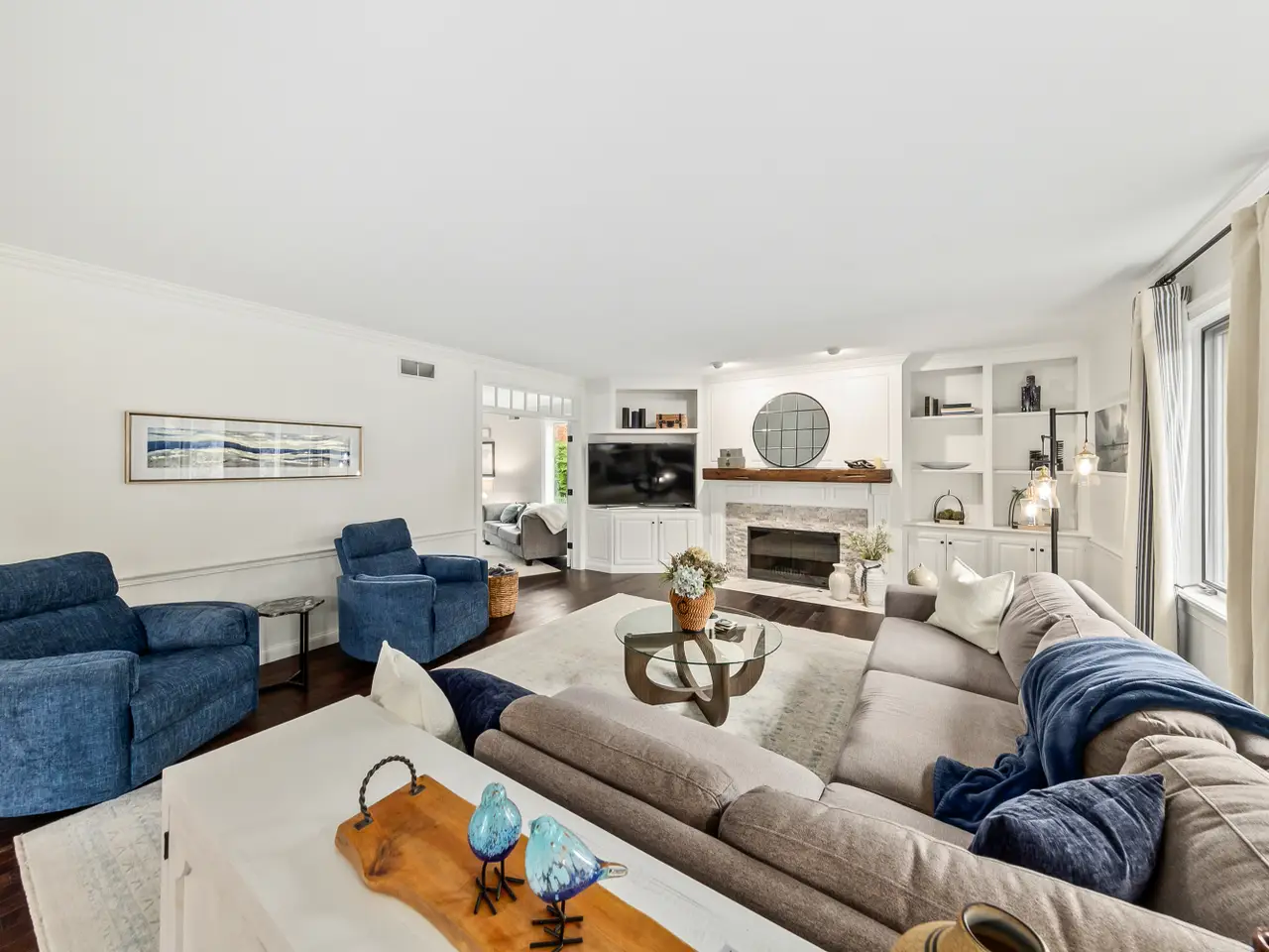Exquisitely revitalized two story set on a beautiful court in the heart of Lake Country! Enjoy the large lot and take full advantage of the subdivision park that includes tennis courts, a soccer field and a large pond. The setting is spectacular! The home presents an awesome curb presence that boasts a full brick belt, copper topped bays and a soaring roof line. Gracious dual story foyer sets the tone of a brilliant and bright interior. The soothing color palette is a perfect complement to the lustrous walnut hardwood floors. They are gorgeous! The floor plan defines open and airy. The bayed living room can go formal to causal. French doors open to the uber relaxing family room. Stacked stone surrounds the fireplace which is flanked by built-ins. Large windows present a peaceful vista of the private backyard. In full view of this haven of relaxation is a total dream kitchen. The kitchen defines elegant style! Large center island, cage pendant lights, glistening quartz counters and sleek designed cabinetry with soft close features. A full complement of stainless appliances is at your fingertips. A pantry wall with unique coffee alcove. The adjoining dinette is the perfect spot to start your day! Sliding doors open to a large deck with built-in pergola. Build lasting memories by hosting your special dinners in the elegant dining room. A large bayed window brings the outdoors in. A large serving bay complete with wine/beverage refrigerator is a valuable asset. The back-service hall leads to an incredible laundry/drop zone. The area is super-sized, just what you need for Wisconsins seasons. There is even a full bath should you think about putting a pool in the level backyard. A dual flight staircase ushers you to the resting quarters where you will find four generous sized bedrooms with superior closet space. Primary suite is luxurious with a coffered ceiling framed in crown molding. A get lost in walk-in closet is a plus as is the spa-feel bath that includes oversized shower and soothing whirlpool. Pamper yourself, you deserve it! There is a large bonus space for future development above the garage. Hawksnest is strategically located close to conveniences, inland lakes, recreation trails, shopping, and of course, the highly sought-after Arrowhead School District. Yes, you can have it all in Hawksnest!