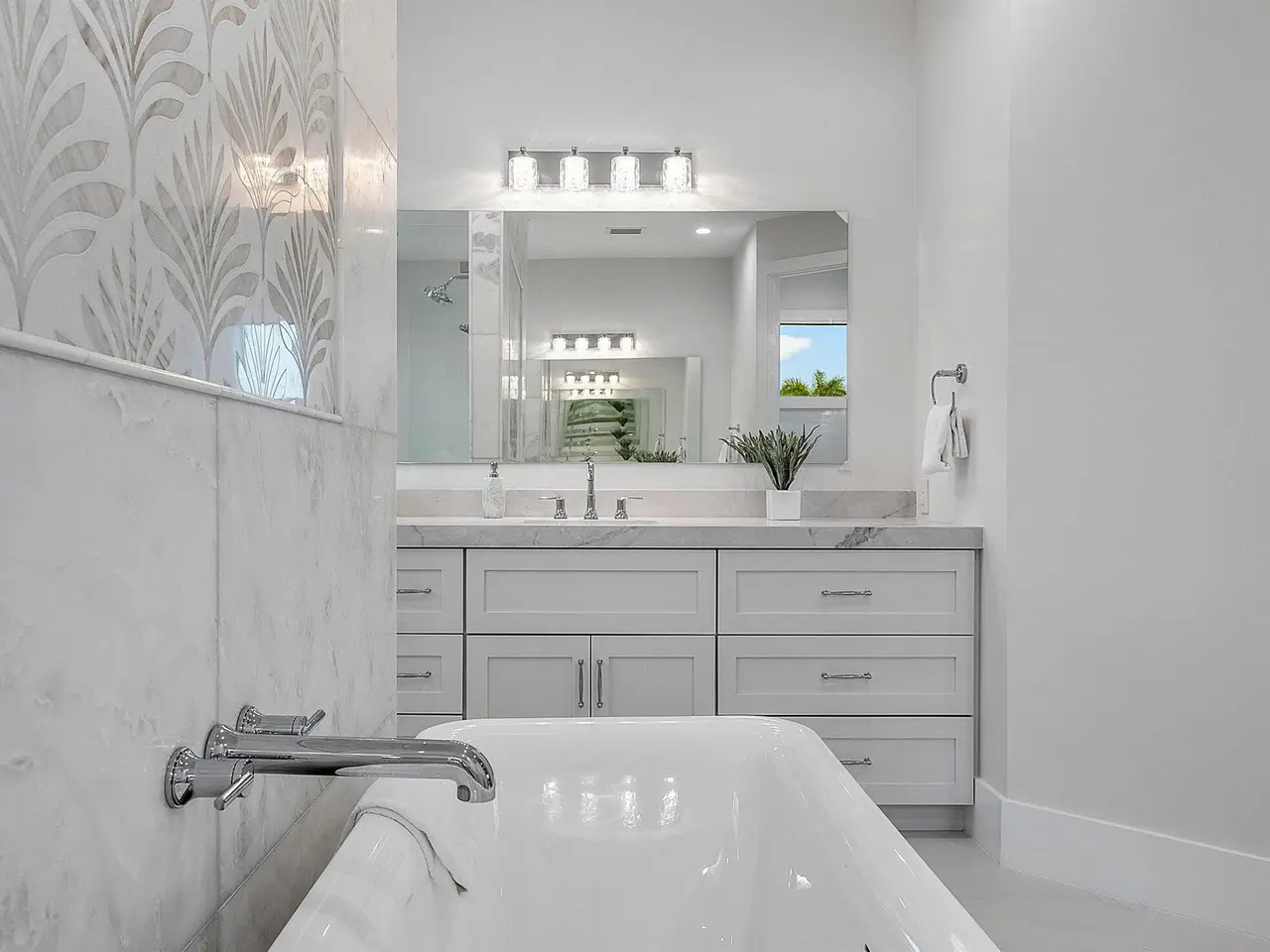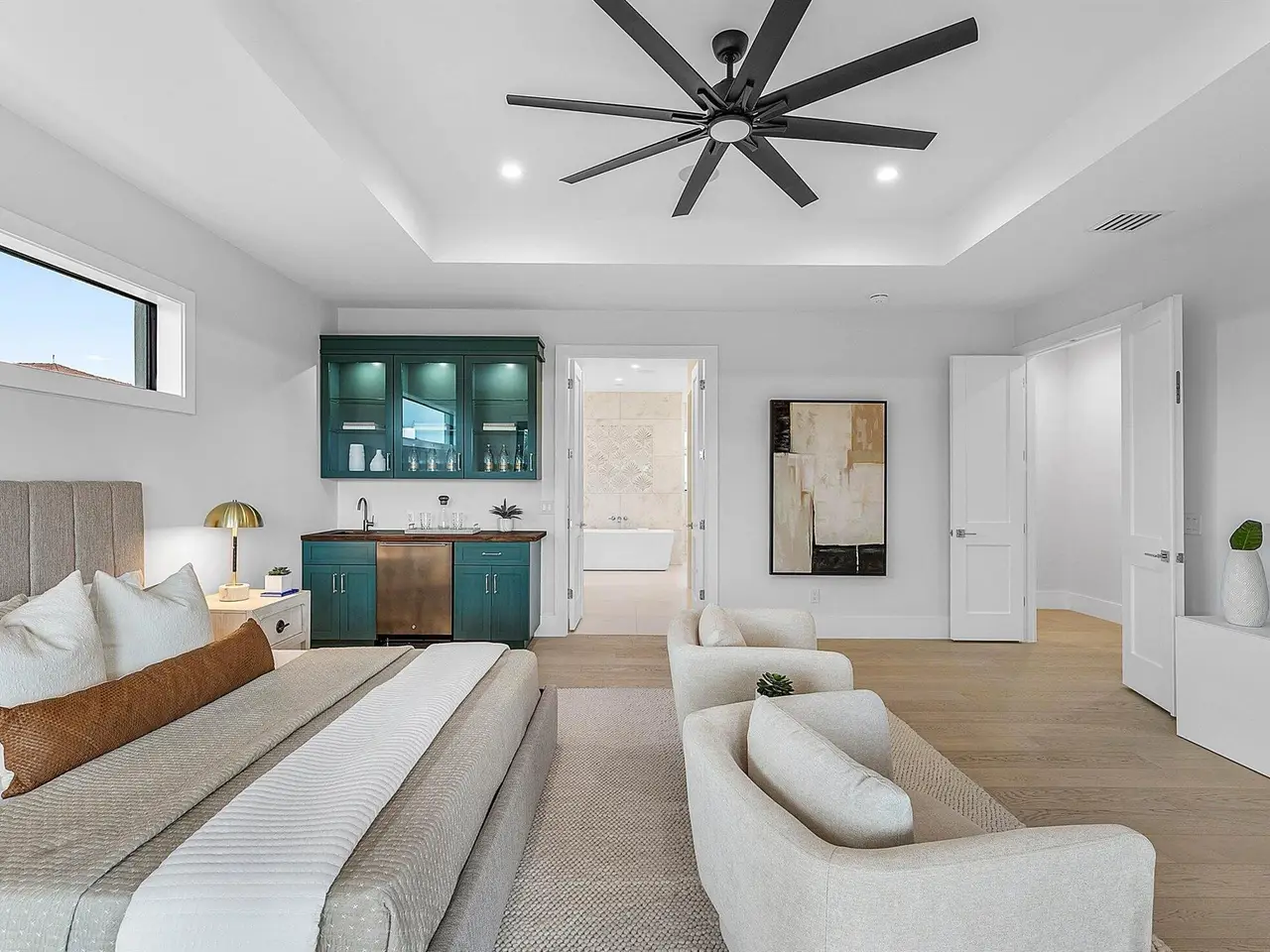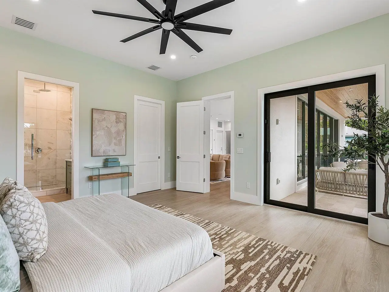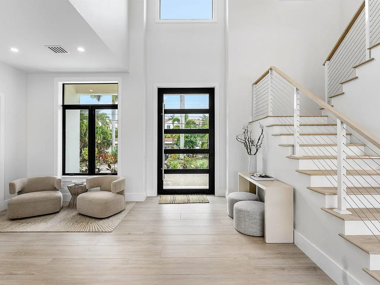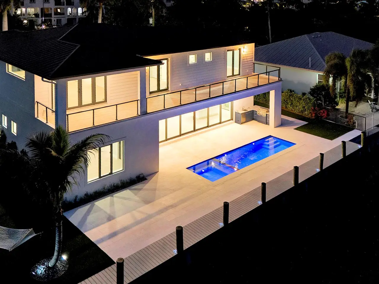Welcome to 101 feet of direct waterfront on a private road in unincorporated Delray Beach's coveted 33483. This brand new residence offers a new seawall and dock, 5 bedrooms, 7 bathrooms and 5644 total sqft (4621 under air) with thoughtful spaces for work, play, and relaxation.Beautifully designed kitchen featuring a full Thermador appliance suite--6-burner dual fuel range with griddle, double oven, and sleek finishes flowing effortlessly into the expansive living and entertaining space where natural light pours in from every angle.Giant pocket sliders disappear like a curtain of glass blending indoor comfort with outdoor living. Step onto the covered loggia with a full summer kitchen, built-in grill, bar seating, cabana bath and outdoor shower--perfect for entertaining.