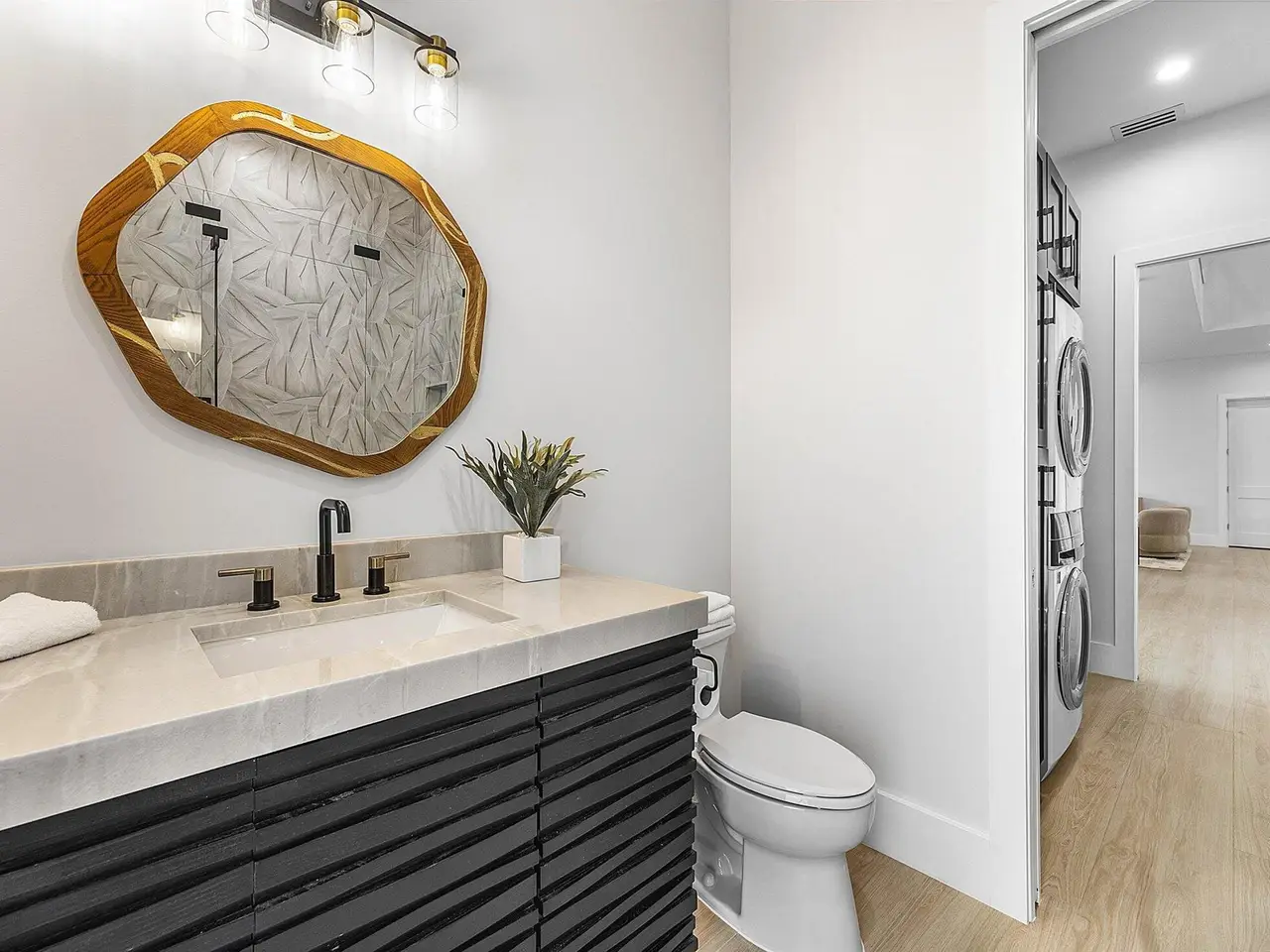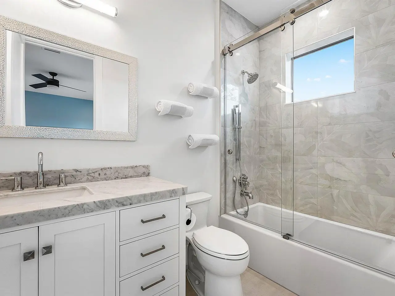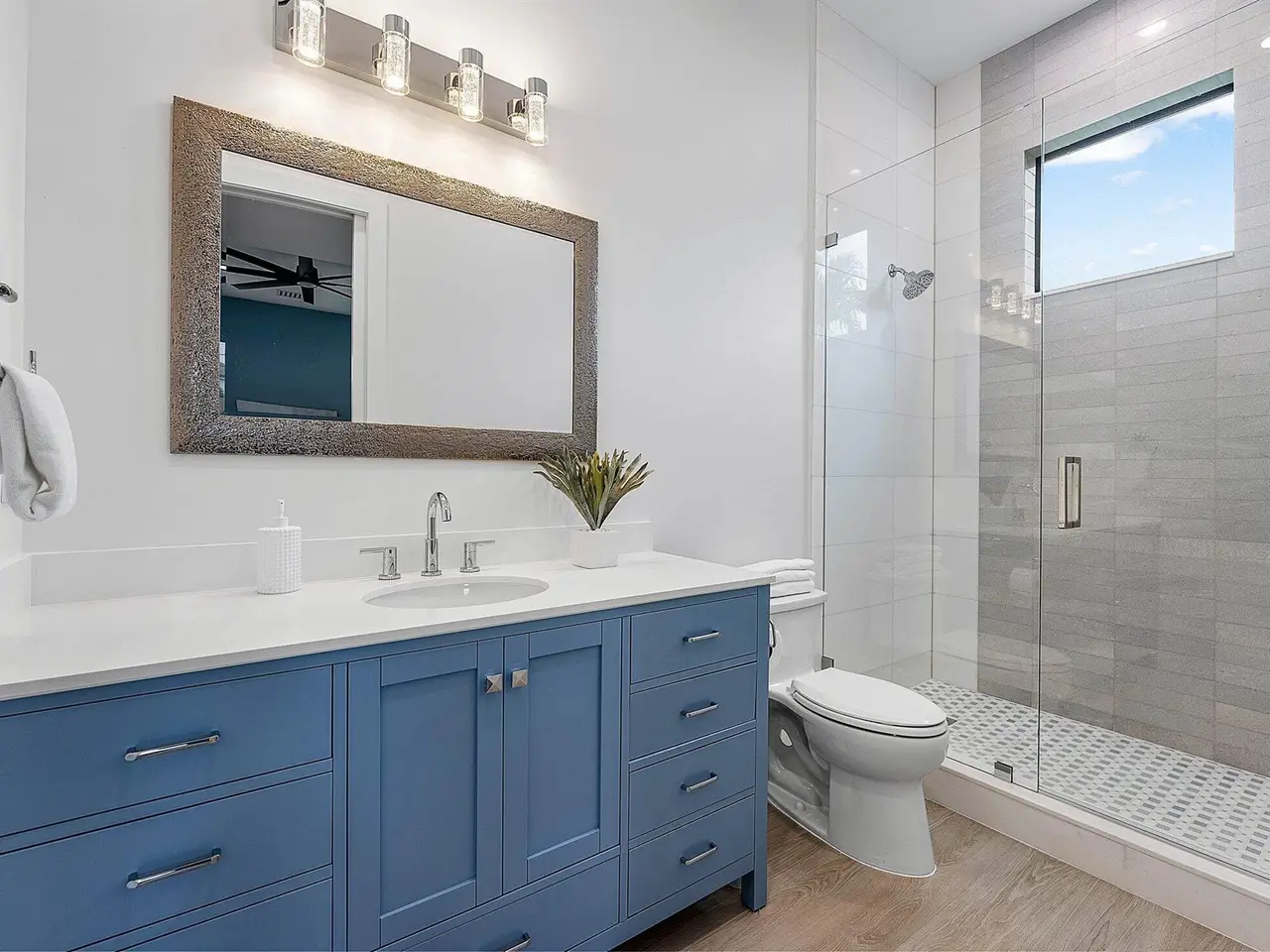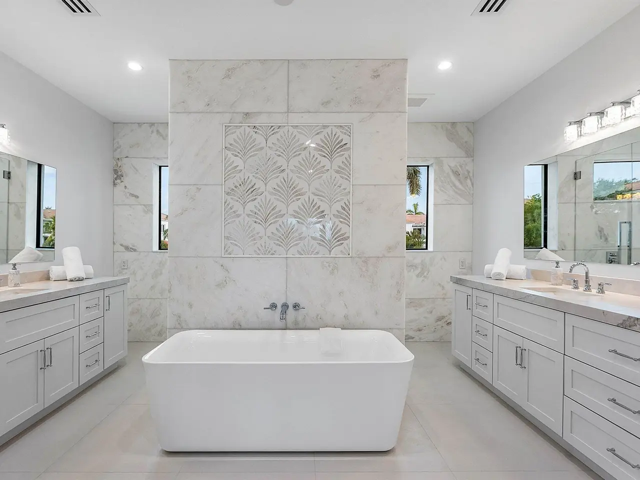 Welcome to 101 feet of direct waterfront on a private road in unincorporated Delray Beach's coveted 33483. This brand new residence offers a new seawall and dock, 5 bedrooms, 7 bathrooms and 5644 total sqft (4621 under air) with thoughtful spaces for work, play, and relaxation.Beautifully designed kitchen featuring a full Thermador appliance suite--6-burner dual fuel range with griddle, double oven, and sleek finishes flowing effortlessly into the expansive living and entertaining space where natural light pours in from every angle.Giant pocket sliders disappear like a curtain of glass blending indoor comfort with outdoor living. Step onto the covered loggia with a full summer kitchen, built-in grill, bar seating, cabana bath and outdoor shower--perfect for entertaining.
