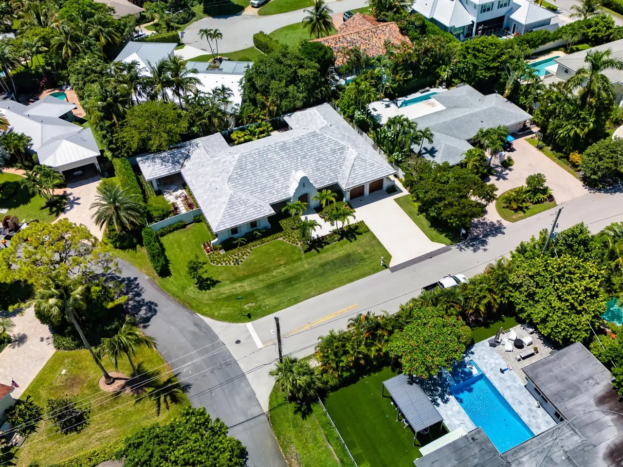 On a prime corner lot in Delray Beach's coveted Lake Ida enclave, this chic 2025-built contemporary residence offers an open floorplan great room, topped by a beamed vaulted ceiling, accessing the pool loggia and summer kitchen; four bedrooms with the primary bedroom opening to a private covered patio, a pocket office; and a cook-island kitchen with two-tone cabinetry, quartz counters and Thermador appliances.