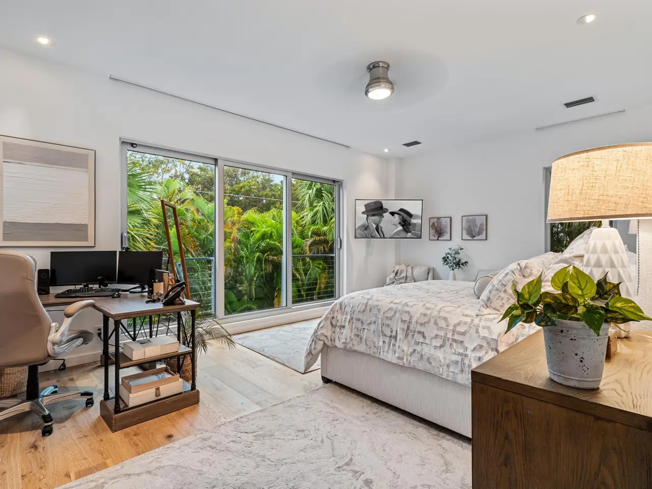 Near Atlantic Avenue and the ocean, this chic custom townhome, with no HOA, features a stunning open floorplan in a unique configuration that creatively elevates the living, dining and kitchen areas into one open, airy living space. Details include walls of glass offering garden and pool-patio views, custom cabinetry, and an outdoor entertaining area set within beautiful tropical landscaping.