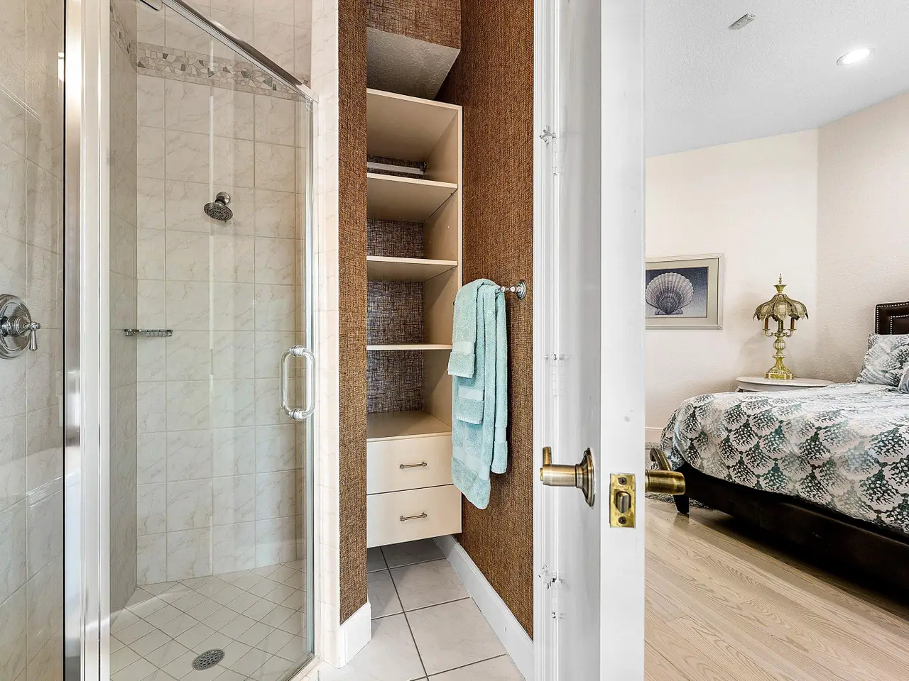 - Marble and wood flooring