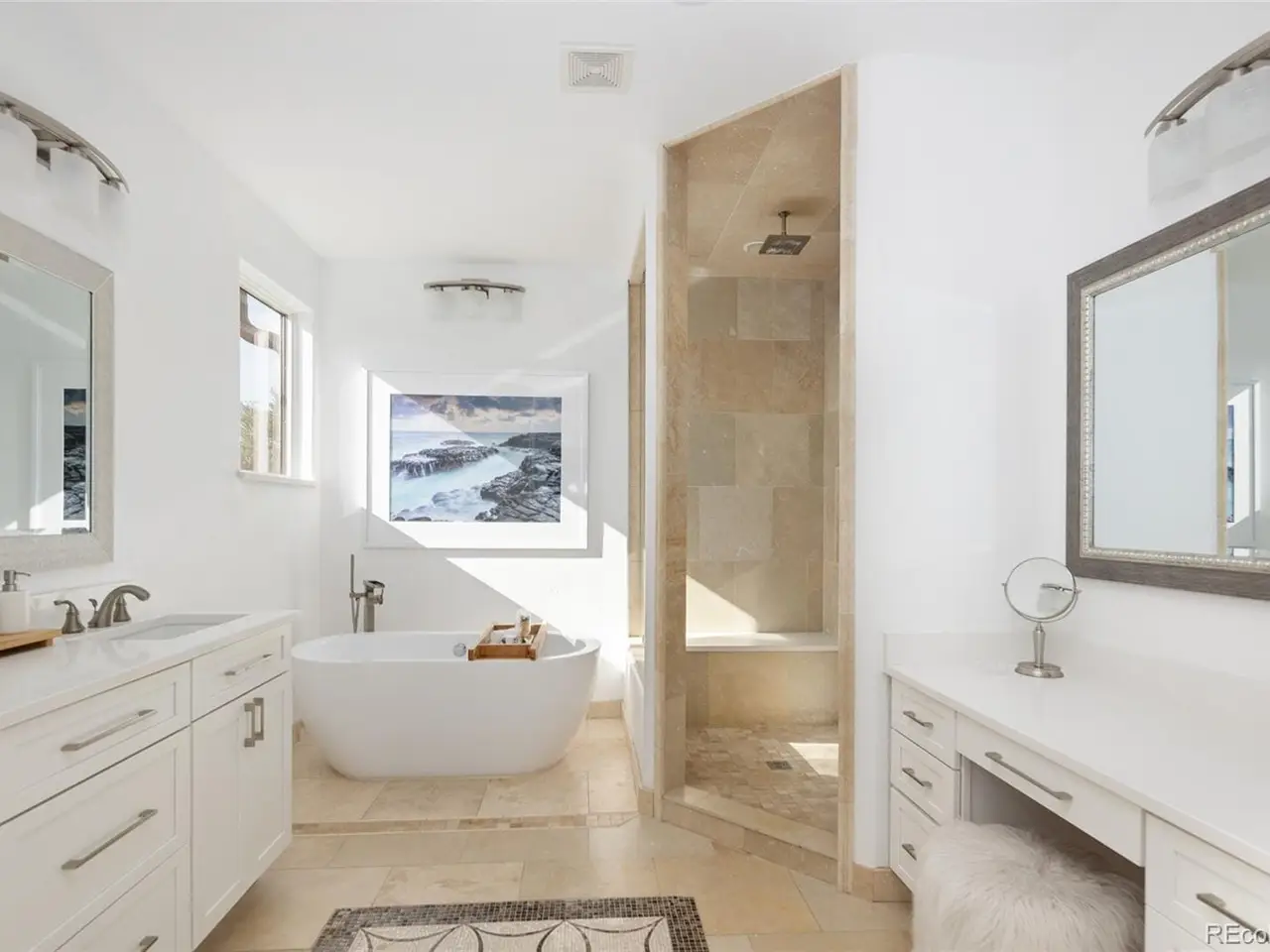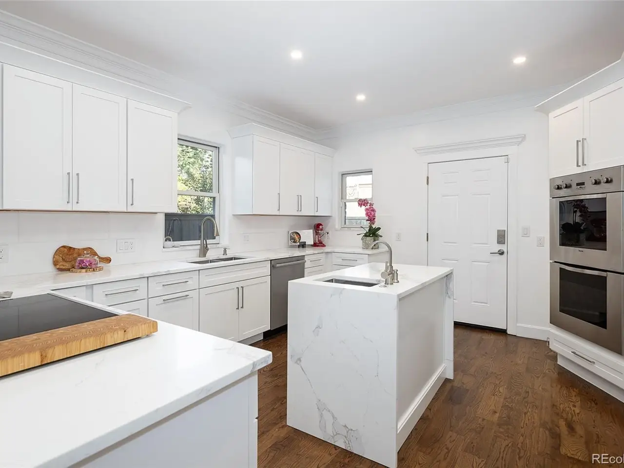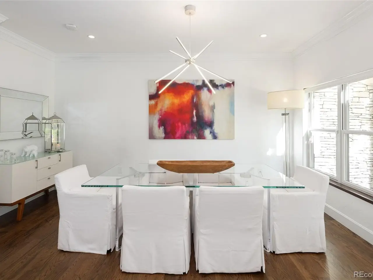 Rebuilt in 2009 with timeless craftsmanship and thoughtful updates, this residence blends elegance with everyday comfort in one of Denver's most desirable neighborhoods. With five bedrooms and an office, it offers value unmatched in the neighborhood. Southern exposure fills each room with natural light, while tree-lined streets, nearby parks, and vibrant dining create the perfect mix of neighborhood charm and city convenience. Inside, new oak floors and an open layout center around a welcoming fireplace, balancing comfort and style. The renovated chef's kitchen features custom cabinetry, quartz countertops, Bosch and Viking appliances, and an island with prep sink and seating - ideal for gatherings. A main floor office with French doors and a spacious main-floor bedroom with en-suite bath make everyday living effortless. Upstairs, the primary suite boasts a cozy fireplace, spa-like bath, and generous walk-in closet, accompanied by two sunlit bedrooms, a full bath, and a convenient laundry room. A finished basement with bedroom, a bath and fireplace provides flexible space for guests, a gym, or media. Outdoors, a tranquil water feature, two flagstone patios, and a firepit combine to create a private backyard oasis. All this in an unbeatable location with preferential waiting list to the Crestmoor Swim & Tennis Club. New furnace and A/C for main floor & basement installed 2022. New furnace & A/C for upstairs installed 2020.