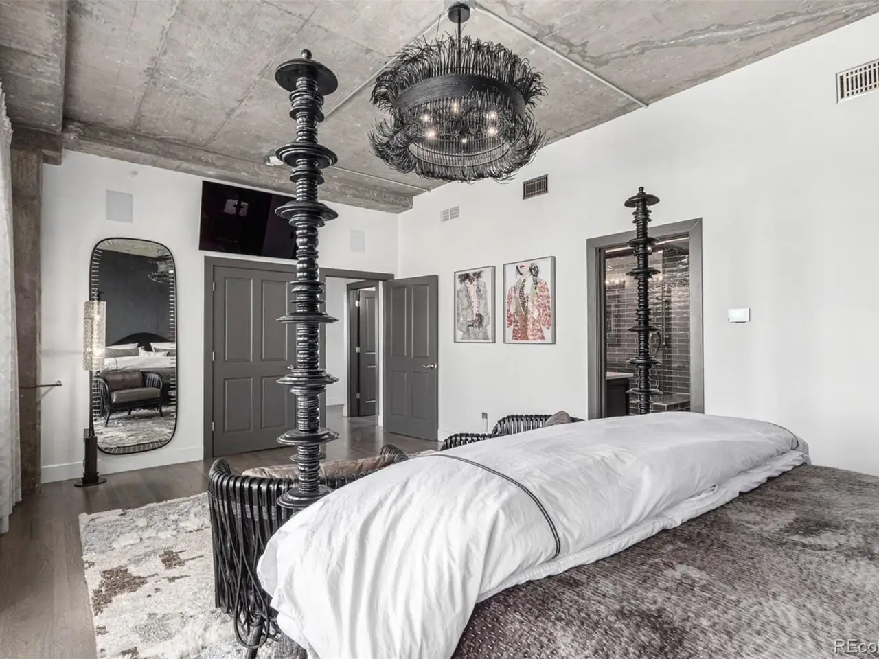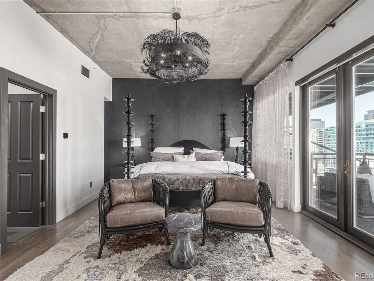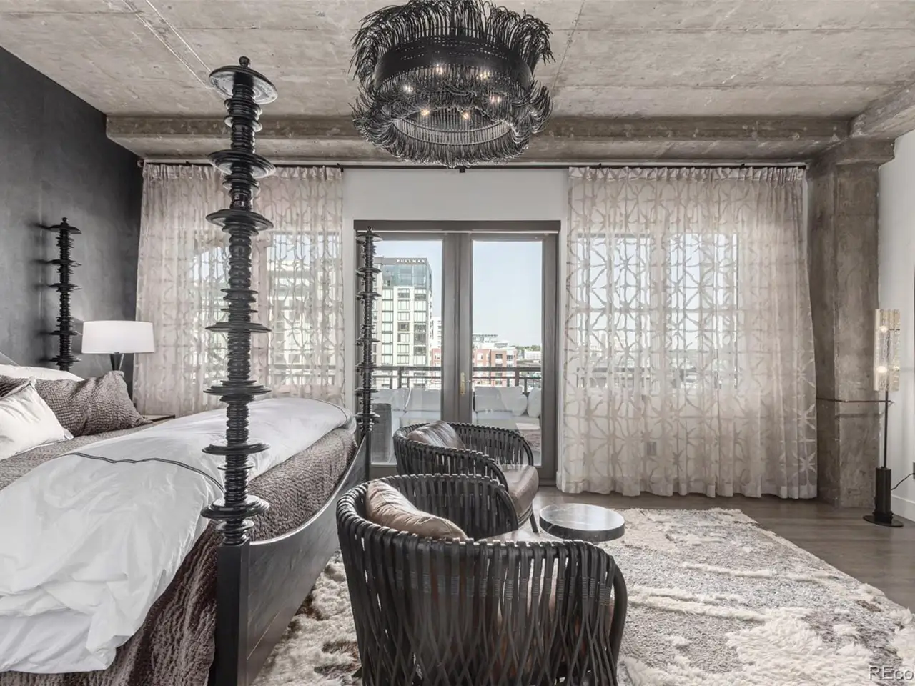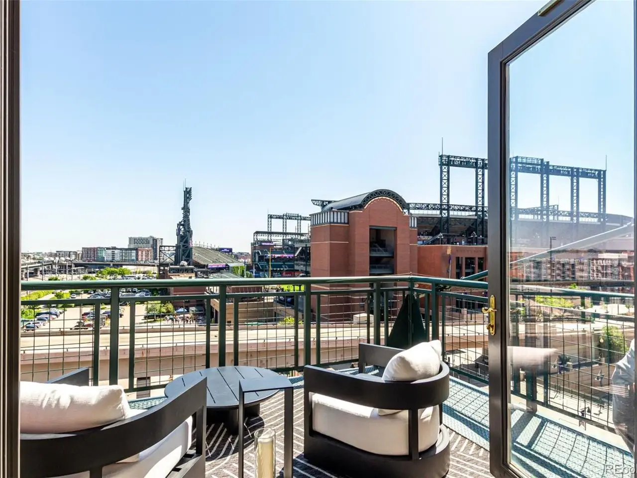 Emerge from the newly upgraded elevator into a private, light-filled entry with views of McGregor Square. This welcoming space includes custom cabinetry, a Murphy bed for guests, a large metal barn door for privacy, and chic dcor with designer lighting and furnishings. Just beyond, a stylish open office features a tufted chair, desk, and whimsical stool under a custom chandelier, with a nearby guest bath showcasing designer tile, wood and stone vanity, and Delta fixtures. The chefs kitchen impresses with a 7' x 7' butcher block island, aged black cabinetry, Sharp drawer microwave, two beverage fridges, and premium Thermador appliances. Burnt red subway tile, Tan Brown granite counters, glass display cabinets, and elegant lighting create a warm, functional space. Four hammered iron bar stools complete the look. Enjoy three balconies with stunning views. The 210 sq ft covered southeast balcony features a gas firepit, water spigot, and Restoration Hardware furniture. The northeast balcony is perfect for morning coffee or fireworks over Coors Field, while the northwest balcony, private to the primary suite, offers sunset and mountain glimpses. The dining area includes a charcoal wood table for eight, three custom chandeliers, and a full-height curio. The spacious living room offers a large L-shaped sofa, leather chairs, smart TV, and crystal chandelier. The guest bedroom features blackout drapes, king bed, smart TV, and adjacent steam bath. The primary suite includes a canopy bed, sitting area, walk-in closet, blackout shades, private balcony, and spa-like bath with Euro shower, double vanity, and in-suite laundry. Includes 2 tandem garage spaces, oversized storage, all in the heart of LoDonext to Coors Field, across from McGregor Square, and just 2 blocks to Union Station and all restaurants, culture and sporting venues that Downtown has to offer. AVAILABLE FURNISHED - MOVE RIGHT IN!