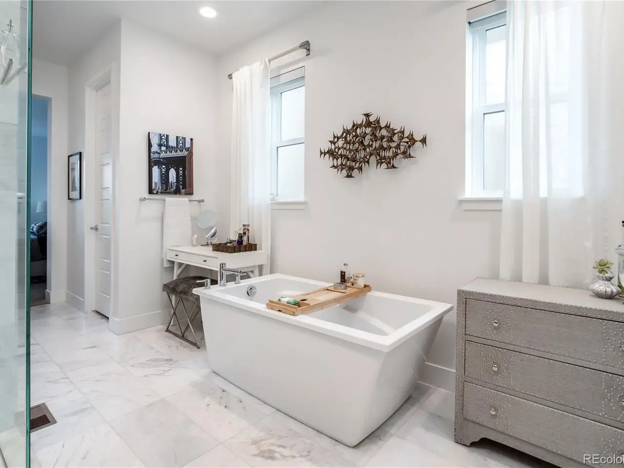 Welcome to 43 S Oneida Court., a luxurious residence in Denver's sought-after Boulevard One Lowry neighborhood. This three-story, modern home will exceed all your expectations with its harmonious, spacious floor plan and effortless flow. Striking architecture with outstanding design and craftmanship in this stunning city chic home is truly one of a kind. The exquisite interior combined with the strong connection to the outdoors creates a home you will be hesitant to leave. The professional gourmet kitchen boasts high-end Wolf range and Sub-Zero refrigerator, quartz countertops, and a massive island. It is the perfect place to gather, with the adjacent great room. Truly the heart of the home. The primary suite is polished and serene, ushering in a sense of peace and tranquility. The primary bathroom features extensive marble finishing and the soaking tub will melt away the stress of the day. The 3rd level is a wonderful secondary spot to gather. The kitchenette includes a wet bar and built-in drawer refrigerator, freezer with ice maker and dishwasher, perfect for entertaining. A roof top deck to entertain or simply relax completes this stylish and sophisticated home.