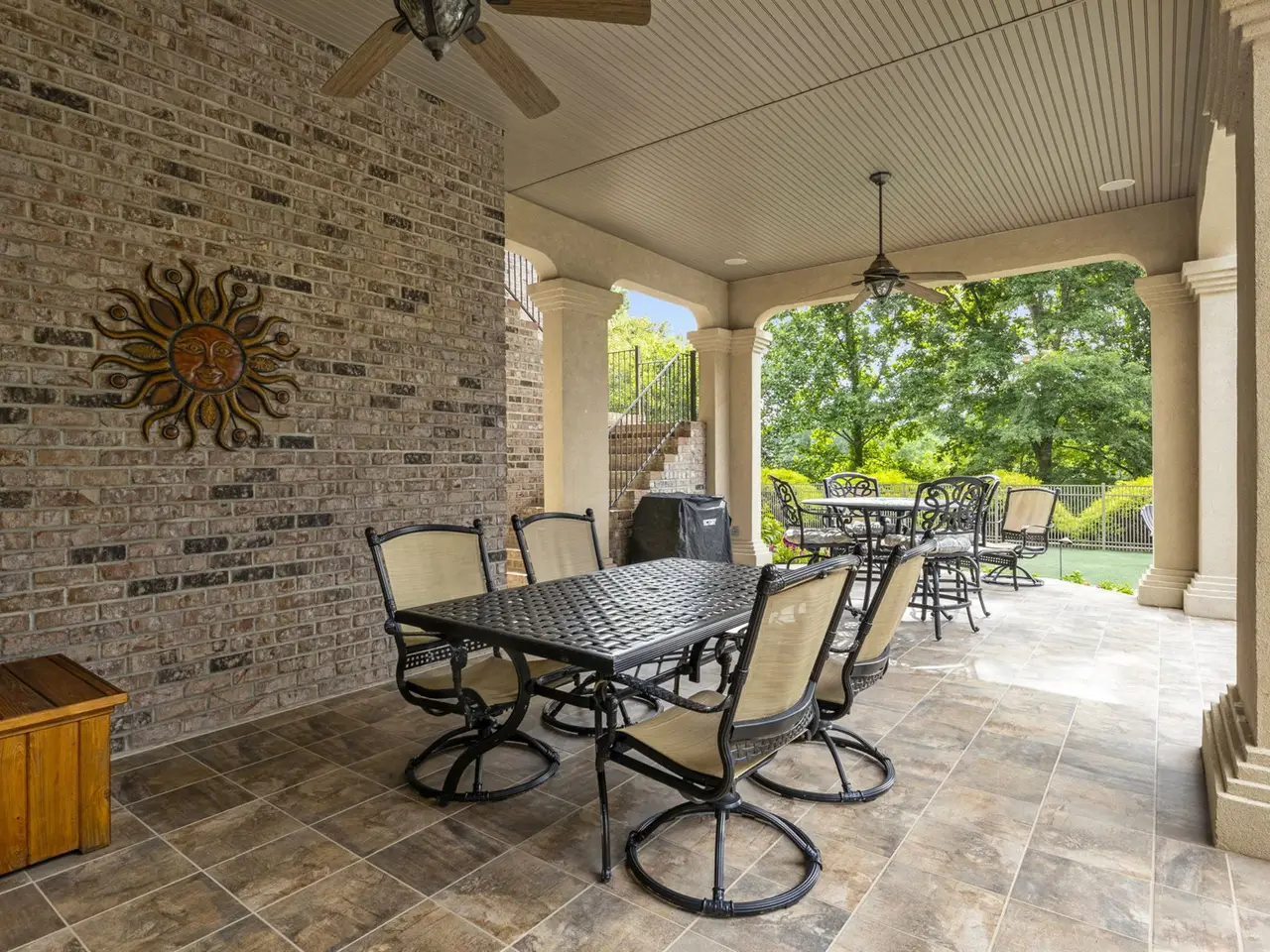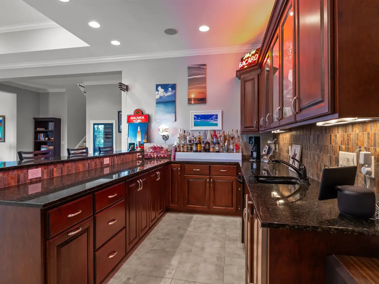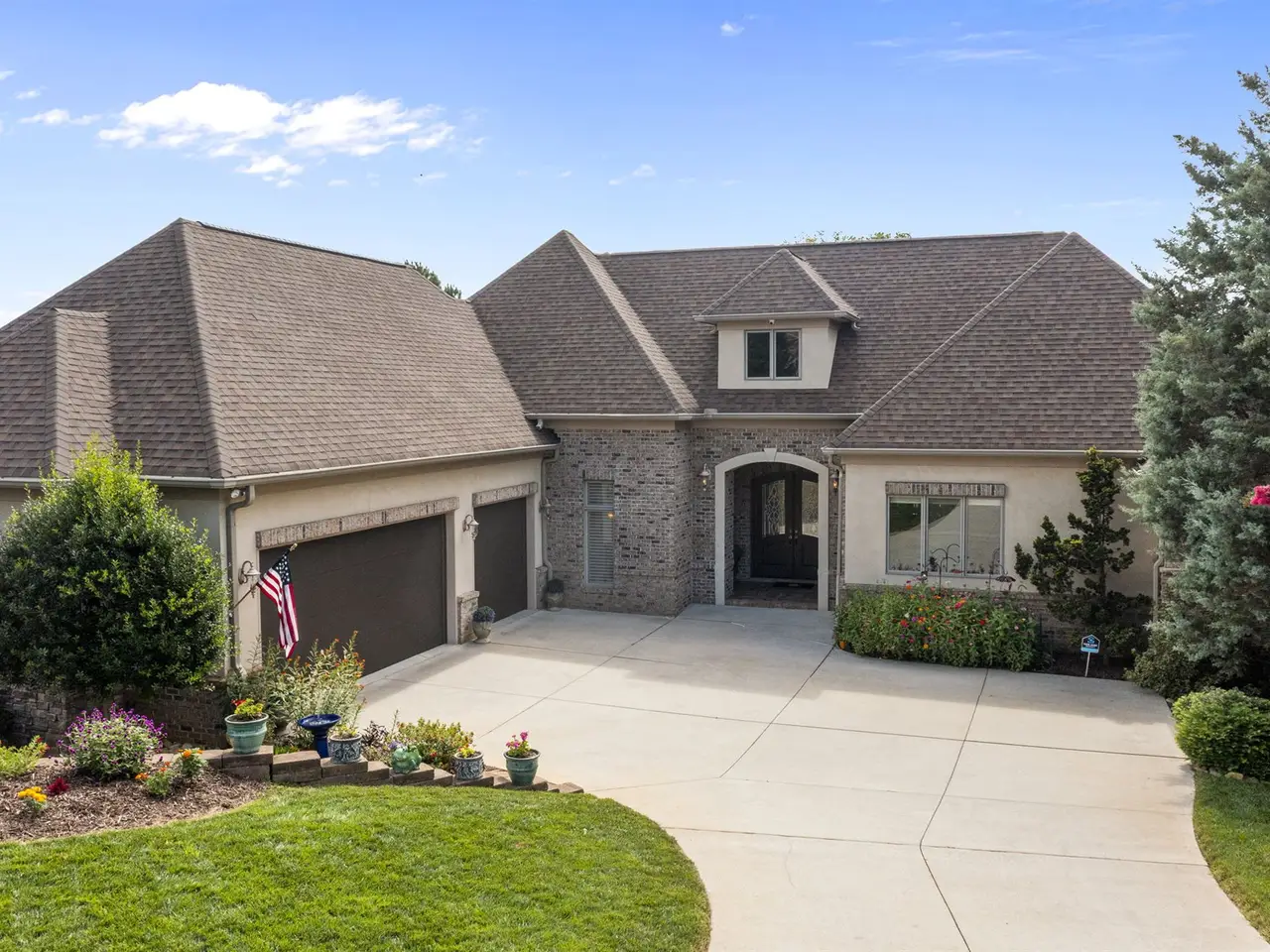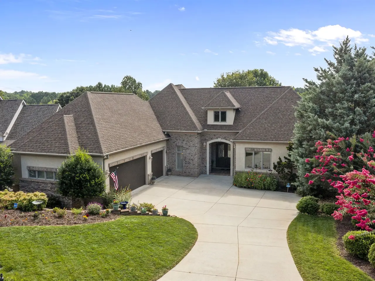 Perched on an elevated lot with views of 8th fairway at Verdict Ridge Golf Course, this stunning retreat blends timeless elegance with resort-inspired living. Step inside a sunlit main level where the spacious kitchen flows into the family room perfect for entertaining with tranquil golf course vistas. An elevator provides access throughout, while the primary suite offers a spa-style bath and dual walk-in closets. The laundry room doubles as a workspace. The office & the fireside sitting room add charm. Car lovers will enjoy the 3-car garage with epoxy floors and workshop space. Outside, your private oasis awaits complete with a heated salt water pool, covered patio, screened-in porch with fireplace & lush landscaping ideal for relaxing under the stars. The finished walk-out basement features 3 guest rooms, 2 full baths, full kitchen and bar, game/family room and generous storage. With striking curb appeal and refined design throughout this is a paradise you'll never want to leave!