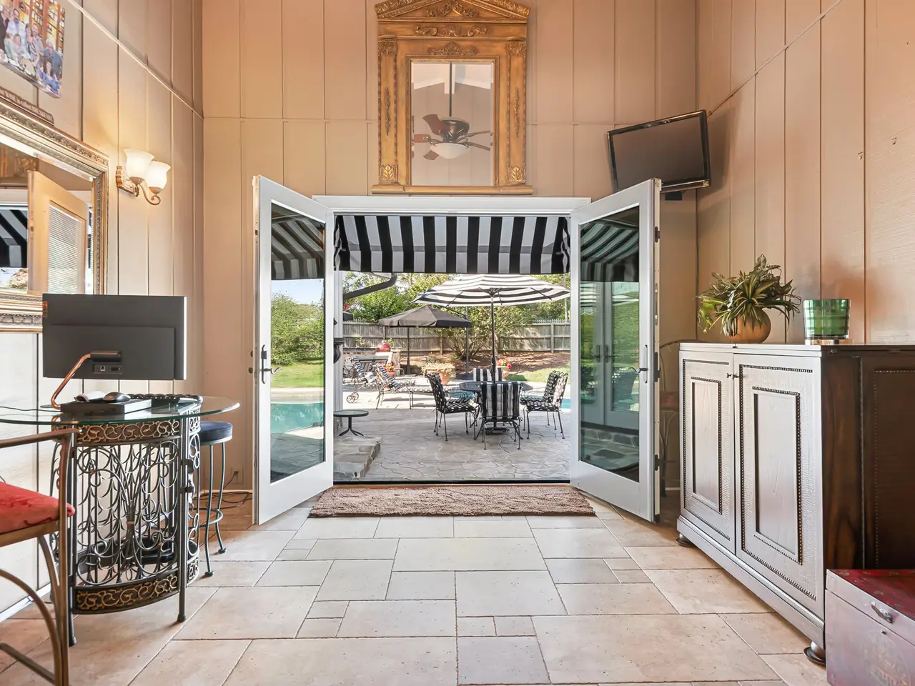A Westport mid-century charmer with a 2BR guest house, inground pool, outdoor kitchen, and privacy fencing on a .70 acre lot. What more do you need? Guest house/ADU is 2BR, 1FB, living room and kitchen. Perfect for family or guests. The main house is a classic mid-century design with many updates. Updated kitchen, with beautiful island 5 burner gas stove with vent hood and pot filler, beverage fridge, 2 pantries, and skylights. Great room has a beautiful coffered ceiling, stone fireplace and accent wall. The primary suite is oversized and anyone's dream. Walk in custom closets, access to pool area, separate shower and tub, heated floors, dual sinks. 2 additional bedrooms with full original mid-century decor bath. One bedroom currently used as office with custom desk and Murphy bed in the design. Stunning entry foyer with slate flooring and high ceiling. Covered front porch with beautiful light fixture to light your way into the home. The outdoor living is the place to be for cooking outdoors. Gas grill, burners, fireplace and, of course the pool as your backdrop. There is also a separate storage shed hidden away behind the guest house. The fencing does not define the lot. Lot goes beyond side fencing. This is a very special home and property in the popular Westport community.
