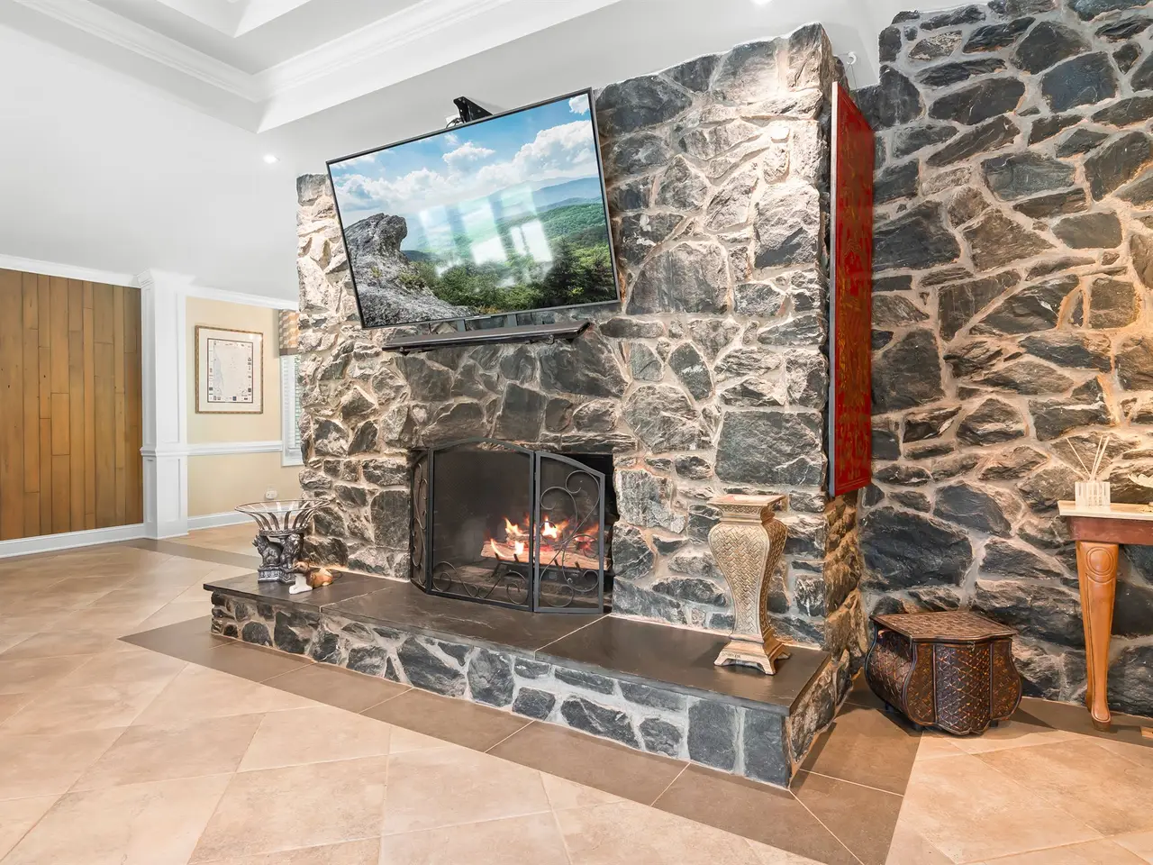 Stone fireplace