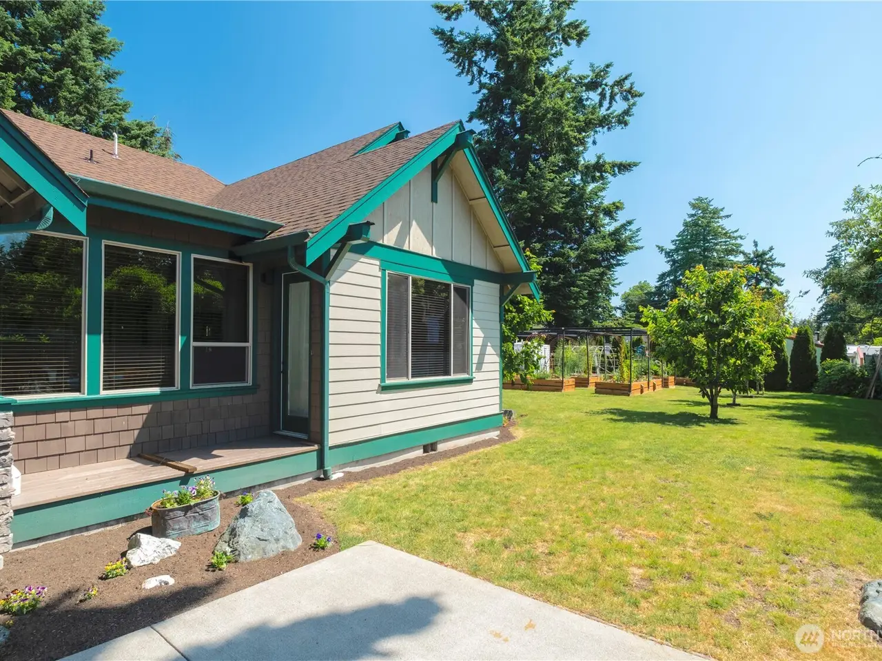 Don't miss this private lodge style sanctuary! The flat almost 1/2-acre lot with private drive & gated entry boasts a one-story 2014 custom-built home that is a car collector's dream! It has an oversized 3-car attached garage + 4-car detached shop w/1/2 bath & 10' doors for your RV/boat. The home has a grand covered entry that leads to sizable foyer w/adjacent office, vaulted ceilings & an open great room w/gas fireplace, dining area, & cook's kitchen. The luxurious primary suite features a spa-style bath. Step outside to the 422+ SF covered patio w/fireplace, built-in BBQ & TV wiring. Fenced yard w/fruit trees and a garden of raised beds- your urban farm to table awaits! Mature landscaping throughout. Sewer connected. Minutes from I-5 and 509.