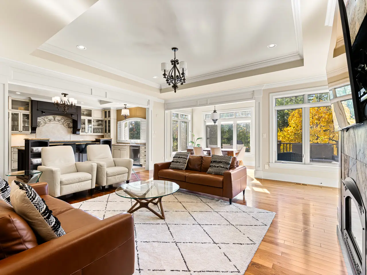 ***IMMACULATE BUNGALOW WITH WALKOUT BASEMENT // INGROUND SALTWATER POOL // NATURAL GAS*** Welcome to 29 Samuel, a true SHOWSTOPPER on 1+ ACRE of beautifully landscaped property. With a striking STONE AND WOOD exterior, this home radiates curb appeal. Inside, 6,278 sqft of elegance is designed for everyday luxury living and entertaining. The main floor impresses with HIGH CEILINGS and intricate TRAY DESIGNS/MOULDINGS throughout. The grand foyer with graceful ARCHES leads to the kitchen/eating nook/living room area, anchored by PROPANE FIREPLACE, stunning GRANITE COUNTERS, WALK-IN PANTRY, and GAS RANGE. From here, enjoy the ambiance of the magnificent FORMAL DINING ROOM with another FIREPLACE and beautiful SUNROOM with back deck access. Rest in the primary suite offering 2 WALK-IN CLOSETS, DOUBLE-SIDED FIREPLACE, MASSIVE ENSUITE, and SUNROOM ACCESS. 2 more bedrooms share a stylish Jack-and-Jill bath. A home office, laundry, powder room, and mudroom complete this floor. The WALK-OUT BASEMENT is designed for versatility with massive rooms, including family room, gym, playroom, 3pc bath, and 2 bedrooms. HEATED FLOORS run throughout the basement, kitchen, bathrooms, and TRIPLE GARAGE, which also boasts EPOXY FLOORS. Entertain outside in style with a SALTWATER POOL enclosed by a DECORATE FENCE, POOL HOUSE, HOT TUB, PAVER STONE walkways/retaining walls, and NATURAL GAS BBQ hookup. Added perks include SONOS MULTI-ZONE SYSTEM, SECURITY CAMERAS, ALARM SYSTEM, and NEWER ROOF