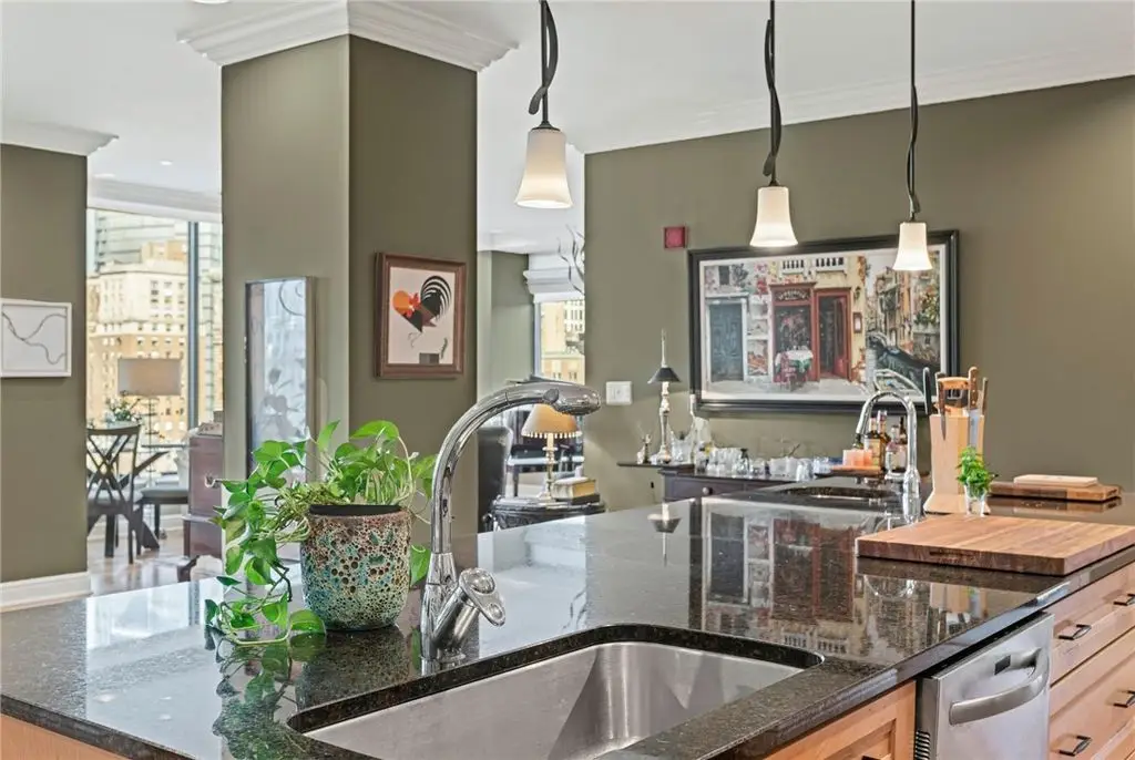 Panoramic city and river views greet you on the 16th floor of this luxury condo in a secure building! Enjoy a thoughtful floor plan (two shell units were combined before construction) with architectural details and upgrades, including Australian Cypress flooring and a gas fireplace. Two entrances, three bedrooms, two full bathrooms, a living room, dining area, and a den/family room provide ample space (2,266 SF) and stunning views from the expansive windows. Dining, cultural and sporting venues are steps away! Monthly HOA fee includes gas, water, sewage, trash, common area maintenance, fitness center, conference/meeting room, building management and 24/7 security. VIEW 3D TOUR AND VIDEO FOR A CLOSER LOOK!