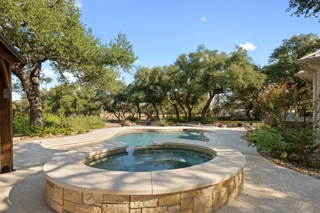 Discover the elegance of 290 Trailmaster Circle, a breathtaking home located within the exclusive gated La Ventana community in Driftwood, Texas. Residents of La Ventana enjoy premium amenities, including a gated entrance, multiple pools, tennis and pickleball courts, a driving range, putting green, fitness center, saunas, and a grand neighborhood clubhouse. Embrace sophisticated living in this remarkable Driftwood property, complete with a low tax rate and HOA dues.Set on a serene lot at the end of a quiet cul-de-sac filled with majestic oaks. The property shines with a heated inground saltwater pool and spa, a sprawling fenced yard, and an expansive 1145 sqft Trex deck--both covered and open--ideal for relaxation. This refined residence features a striking stone facade, a durable standing seam metal roof and an eco-friendly rainwater harvesting system. Recently transformed through a comprehensive renovation, the home showcases a refreshed primary bathroom, new flooring, cabinetry, fixtures, paint, doors, appliances, moldings, and upgraded central air conditioning systems, all contributing to its timeless appeal.This residence offers a sprawling one-story layout perfect for both grand entertaining and comfortable daily life. At its core, the family room impresses with a dramatic floor-to-ceiling stone fireplace. The thoughtful mother-in-law floor plan includes a versatile rear bedroom that can serve as a secondary owner's suite, home office, media room, or fitness space. The primary suite is a tranquil retreat, featuring tray ceilings, bespoke lighting, and direct access to the covered patio and pool area. Its spa-inspired bathroom boasts a walk-in shower, a freestanding soaking tub, and an expansive walk-in closet with custom shelving.Wimberley ISD has open enrollment at this time. Let's set a showing time for you to view this amazing Driftwood retreat!