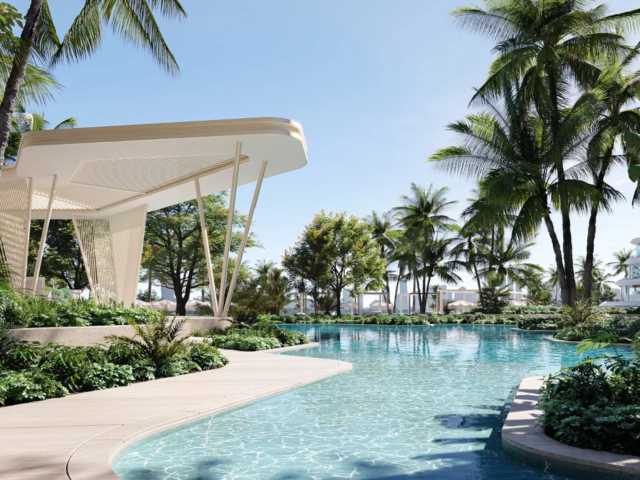 - Private beach access and resort-level leisure zones including infinity pools, Zen gardens and sky gardens.