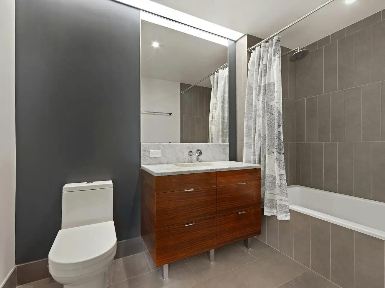 TRUE THREE BEDROOM WITH ONSITE DEEDED PARKING & ADDITIONAL STORAGE AVAILABLE! A gracious entry with two large coat closets leads you into this true three bedroom, two bathroom home in one of DUMBO's most sought after full-service condominium buildings. Beautifully finished with 5" fumed white oak flooring and enormous, show stopping and south facing black metal framed windows of double layered insulated glass that provide energy efficiency, pin drop quiet and pour light into the space. The huge open kitchen with abundant counter and cabinet space creates an ideal setting for entertaining. Additional kitchen features include polished Luce de Luna Quartzite counter tops, Thermador range, Insinkerater garbage disposal, wine fridge, Sub Zero refrigerator and a Bosch dishwasher. On the far side of the apartment you will discover a beautiful and bright primary bedroom suite with a large walk-in closet and en suite bathroom featuring Carrera marble countertops, Italian porcelain tiles and a rain shower. The neighboring second and third bedrooms are amply sized with generous closet space and share a spa like second bathroom complete with a deep soaking tub. All complete with a large laundry closet housing a Bosch washer/dryer with extra room for utilities and a multi zoned heating and cooling system. Building features include a full-time attended lobby, live-in super, state of the art fitness room (with a Peloton bike!), bicycle storage, a common media lounge and two common outdoor spaces. 205 WATER was ground up new construction, (fully completed in 2012) and was uniquely designed for sustainability and achieved the prestigious LEED Gold Certification. A storage unit and an on-site deeded parking space is available for separate purchase!