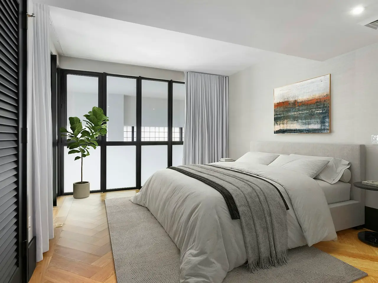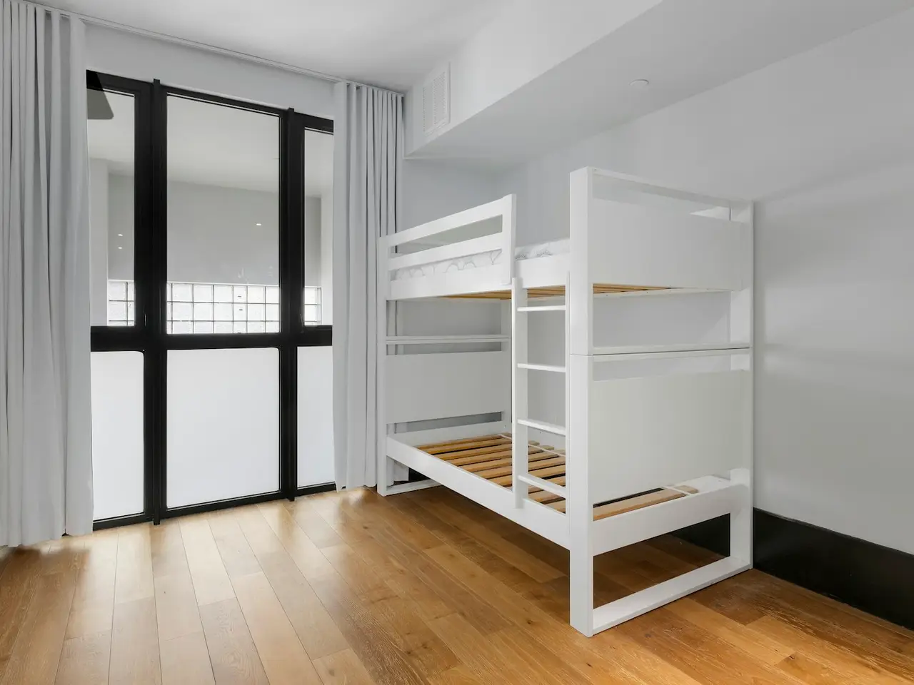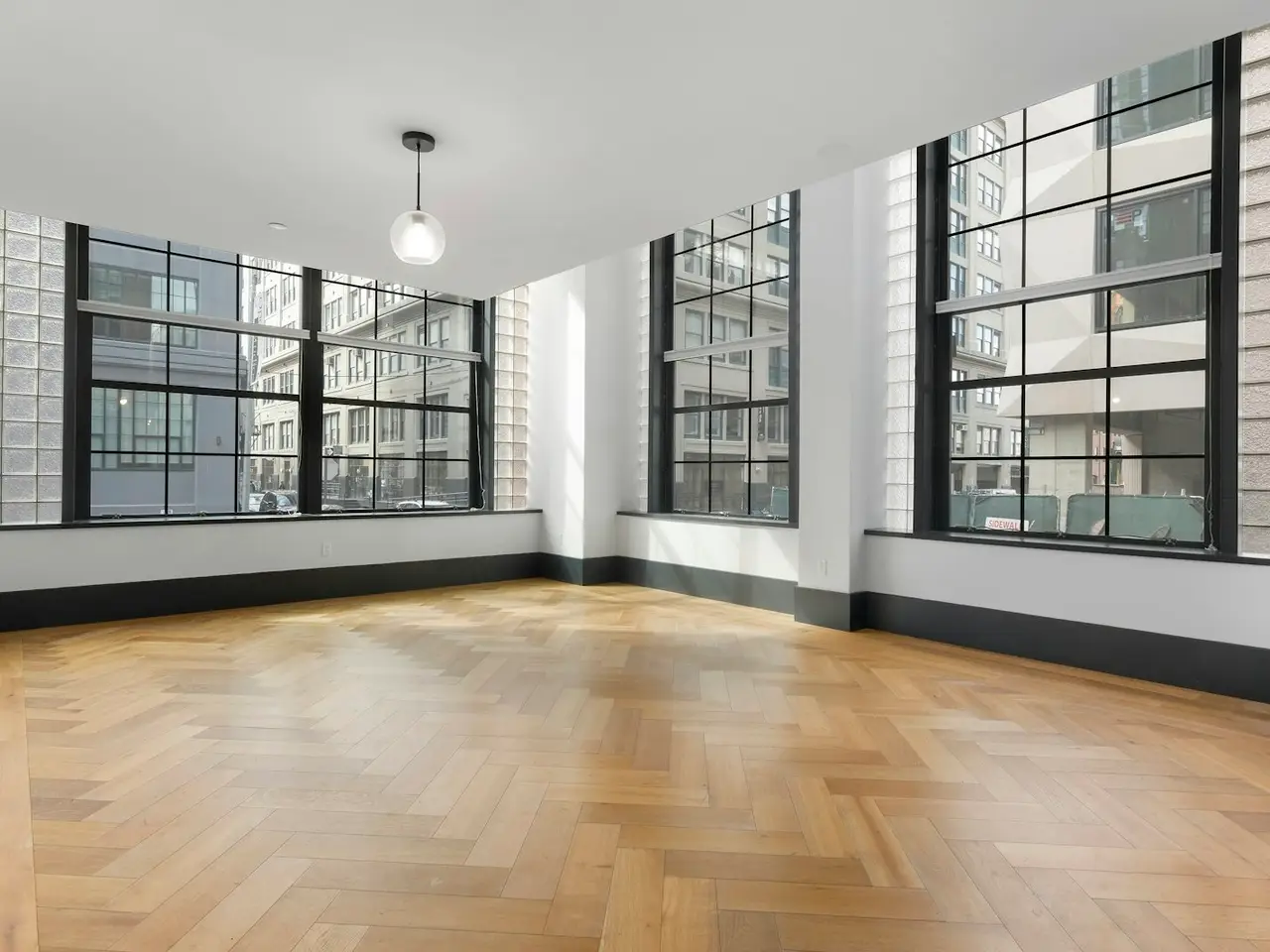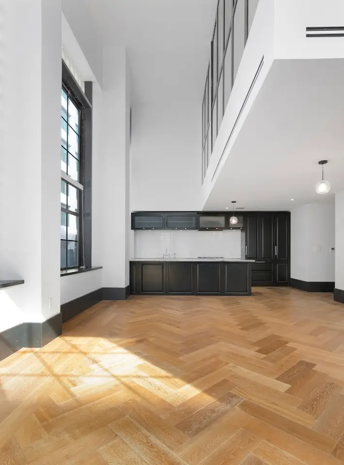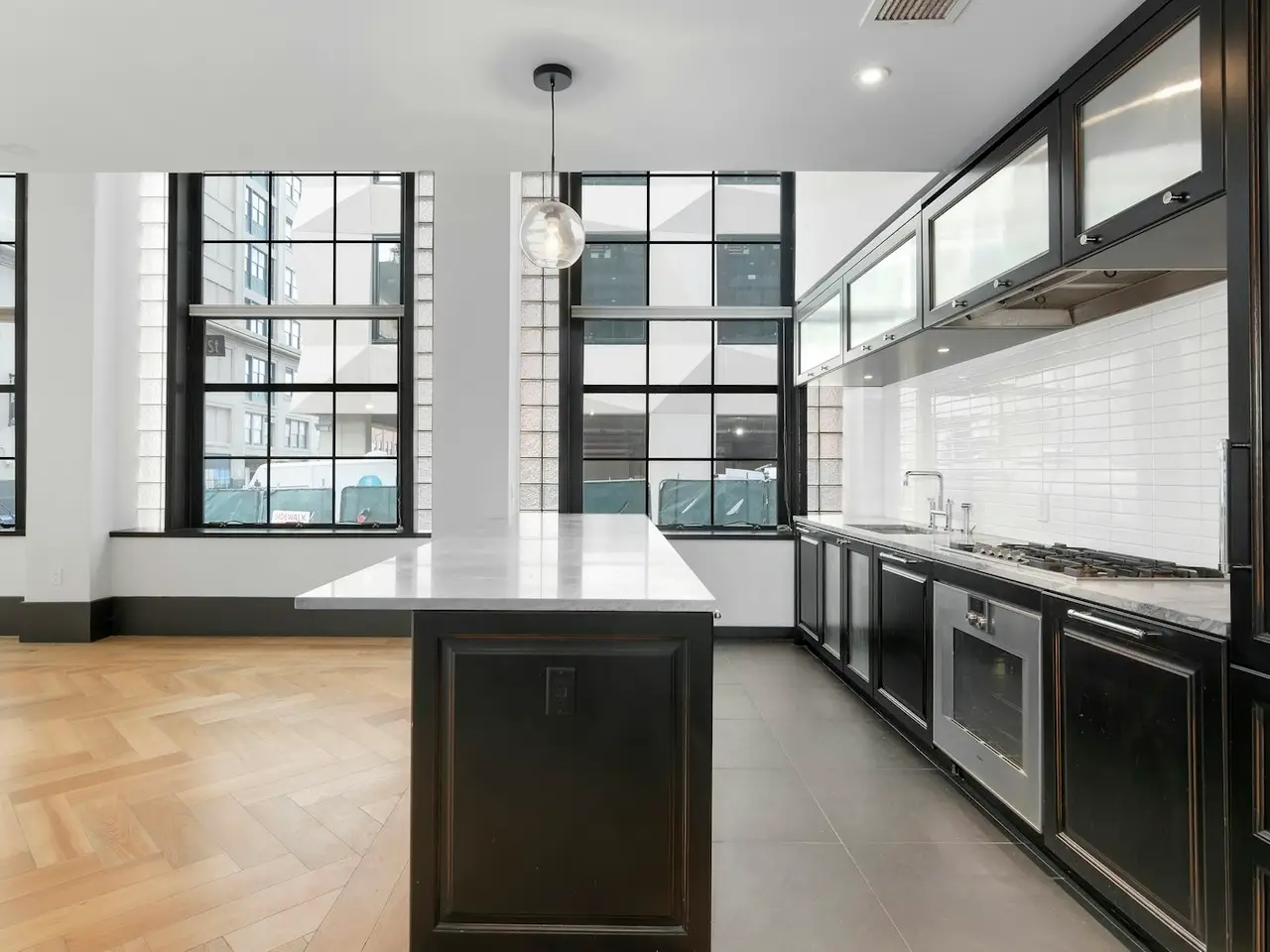 2,251 Square Feet. Designed by acclaimed architecture firm ODA, 51 Jay Street sets a new standard for living in DUMBO. Intensive study went into creating this duplex loft that is both elegantly proportioned and highly functional, a rare combination in warehouse conversions. Looking out over Dumbo's historic streets, this duplex residence is spread over two spacious levels and is loft living at its finest. In a nod to the charm of its industrial roots, the living rooms feature dramatic, double-height ceilings, expansive casement windows, and oak herringbone floors. Bedrooms on the second floor showcase blackened steel frame, wire-mesh windows that open out into the loft living room. Every detail throughout this duplex speaks of expert craftsmanship and fine materials that exude the industrial charm of the building. Oversized kitchens include dramatic custom cabinetry by Aster Cucine, La Rochelle Gris marble slab countertops, and a suite of Gaggenau appliances. Luxuriously appointed master bathrooms feature lacquered dark brown vanities with copper detailing, walnut brown marble flooring, and a glass-enclosed wet room with walk-in shower and soaking tub. The same level of design and attention to detail can be found throughout the impressive amenities at 51 Jay. A double-height, attended lobby features polished concrete flooring with steel tracks inspired by the original rails that carried goods through the building. At the heart of 51 Jay Street is a private courtyard garden that redefines the idea of nature in the city. This urban sanctuary, designed by Steven Yavanian, is a shared visual amenity that creates an immersive atmosphere of wilderness through lush plantings and natural materials. The expansive rooftop terrace is outfitted with several areas for entertaining or relaxing, including an outdoor kitchen, a fireplace and outdoor showers. An additional floor of amenities includes a fitness center with yoga room, residents" lounge, children's playroom, bicycle storage, resident storage, pet washing and grooming station and a large capacity laundry room.