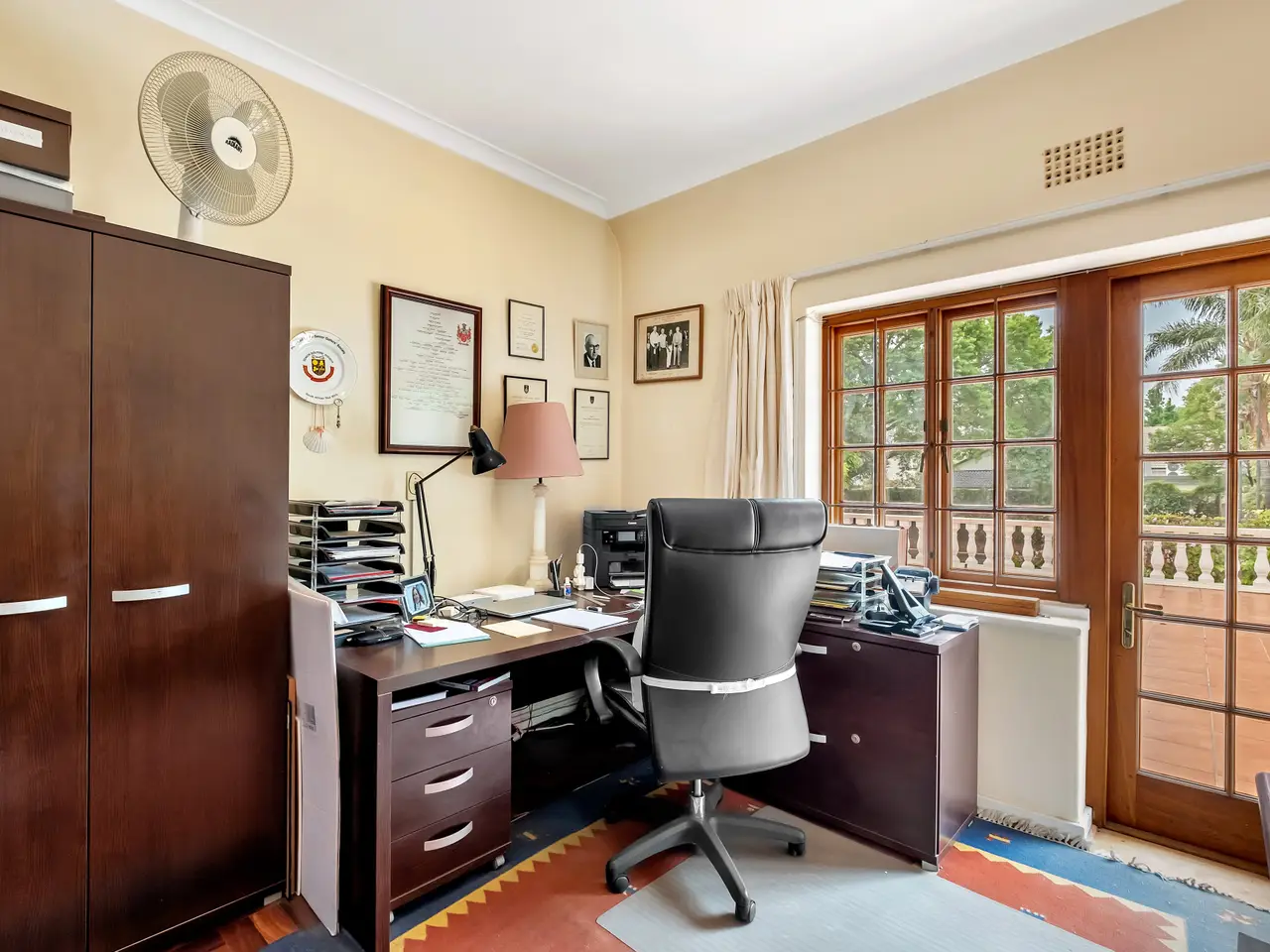 In the prime central block of Dunkeld sits this charming family home that will endure for years to come... Framed by a gorgeous garden and trees, with a pool & court, the south entry north facing home, offers huge potential to add further value. The main house comprises of spacious reception rooms - formal lounge, separate dining room, family room plus second family room complete with wine cellar – a perfect space for casual family entertaining. The well-equipped kitchen offers an easy conversion to an open plan scenario. The second level hosts 4 large bedrooms, 3 bathrooms ( 2 en suite), a comfortable main suite & dressing room. The 4th bedroom leads out to an expansive balcony with direct access to the garden. A purpose built 2 bedroom en suite cottage with lounge/dining, kitchen and double garage - income producing potential or home for in-laws. Further particulars : Pool, tennis court, Inverter, solar, 2 fireplaces (in formal lounge & morso-type in family room), stunning parquet floors, A/Cs, staff suite, laundry, alarm and beams, 4 garages with ample secure off street parking. Serene & private, in the highly desired suburb of Dunkeld. The perfect home to accommodate the extended family!