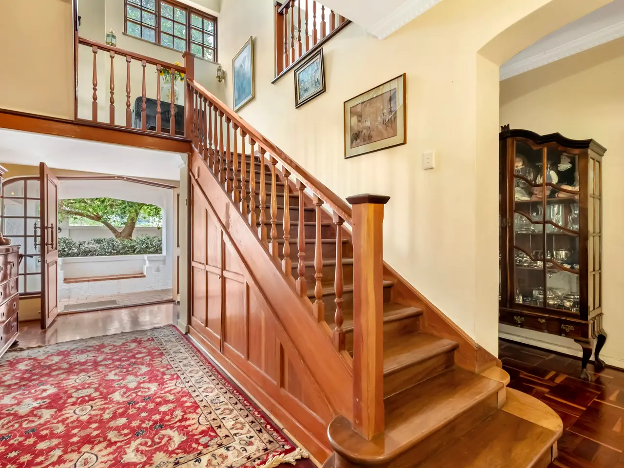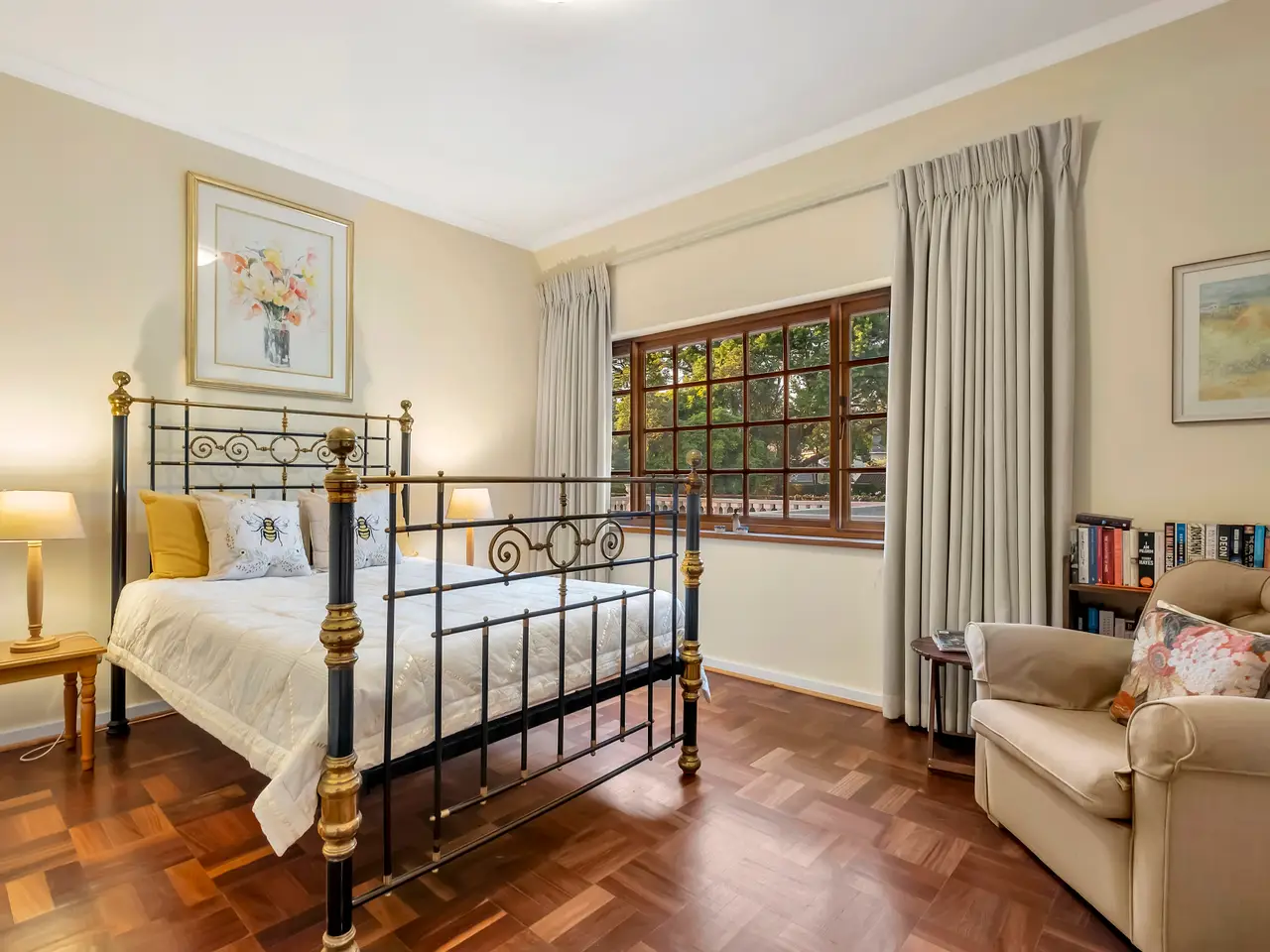 Framed by a gorgeous garden and trees, with a pool & court, the south entry north facing home, offers huge potential to add further value. The main house comprises of spacious reception rooms - formal lounge, separate dining room, family room plus second family room complete with wine cellar – a perfect space for casual family entertaining. The well-equipped kitchen offers an easy conversion to an open plan scenario. The second level hosts 4 large bedrooms, 3 bathrooms ( 2 en suite), a comfortable main suite & dressing room. The 4th bedroom leads out to an expansive balcony with direct access to the garden. A purpose built 2 bedroom en suite cottage with lounge/dining, kitchen and double garage - income producing potential or home for in-laws. Further particulars : Pool, tennis court, Inverter, solar, 2 fireplaces (in formal lounge & morso-type in family room), stunning parquet floors, A/Cs, staff suite, laundry, alarm and beams, 4 garages with ample secure off street parking. Serene & private, in the highly desired suburb of Dunkeld. The perfect home to accommodate the extended family!