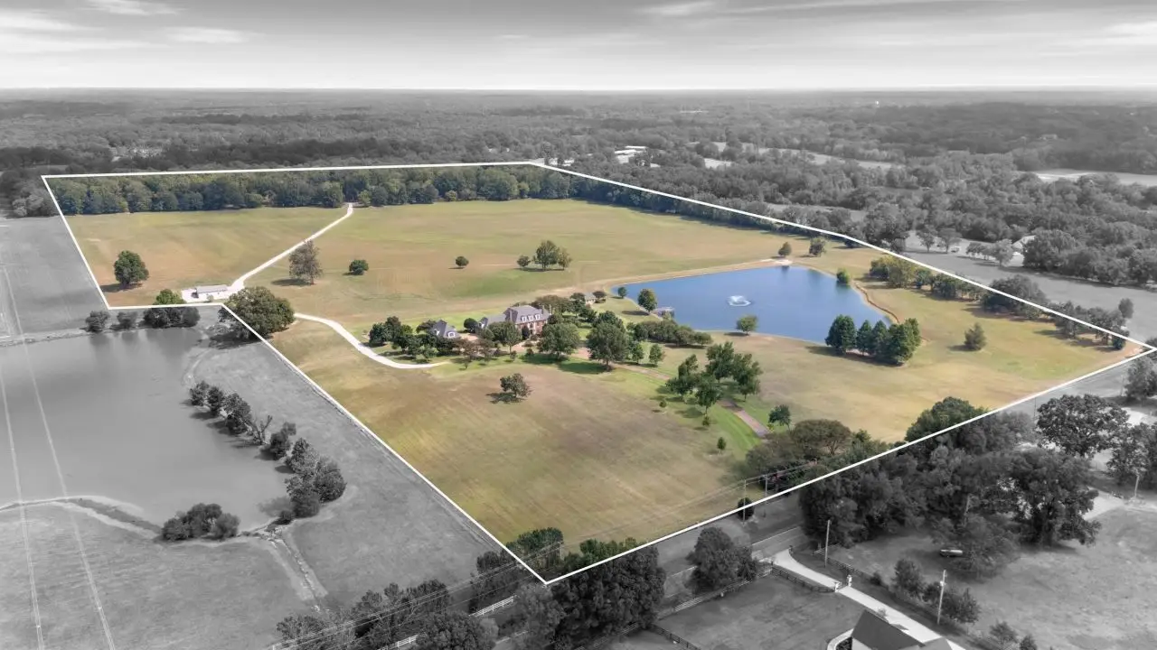 Custom built and offered by its original owner, this gated estate is set on 110+ landscaped acres, blending timeless craftsmanship with modern luxuries. A grand entry with imported antique doors, marble floors, and soaring ceilings opens to elegant living and dining spaces with exquisite finishes, including a Baccarat chandelier from Paris. The chef's kitchen is a culinary masterpiece with premium appliances, walk-in pantry, and travertine details. Relax in the family room with 12-ft ceilings and French doors leading to a screened porch overlooking serene grounds. The luxurious primary suite offers a fireplace, spa bath, and private access to a hot tub/sauna/exercise room. With 5 bedrooms, 5.5 baths, bonus rooms, elevator, generator, 7-car garage capacity, guest suite, stocked pond, and 60x40 barn with equestrian potential, this estate is ideal as a private sanctuary or multi-generational retreat. Exceptional outdoor living, courtyards, and gardens complete this rare offering.