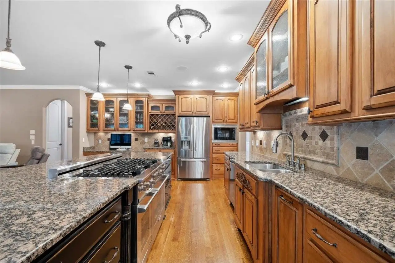 Stunning Resale in Aston Park! Located on a spacious corner lot over 1 acre, this beautifully maintained home offers the privacy and elegance you've been looking for. Built by Southern Serenity, renowned St. Jude Dream Home builder, this property boasts a desirable open floor plan ideal for both everyday living and entertaining. The chef's kitchen is a true showstopper, featuring stainless steel appliances, a custom gas stove with double ovens, and a large center island perfect for gatherings. The inviting primary suite is located on the main level and includes a luxurious bathroom retreat. Upstairs, you'll find 3 additional BRs, a media room, and a bonus room?plenty of space for family, guests, or hobbies. Storage is no issue with 2 walk-in attics, and functionality is key with 2 laundry rooms, central vacuum, and surround sound throughout. Enjoy the private backyard with a wooded backdrop from your covered patio, take advantage of the 4-car garage, perfect for vehicles, tools & toys.