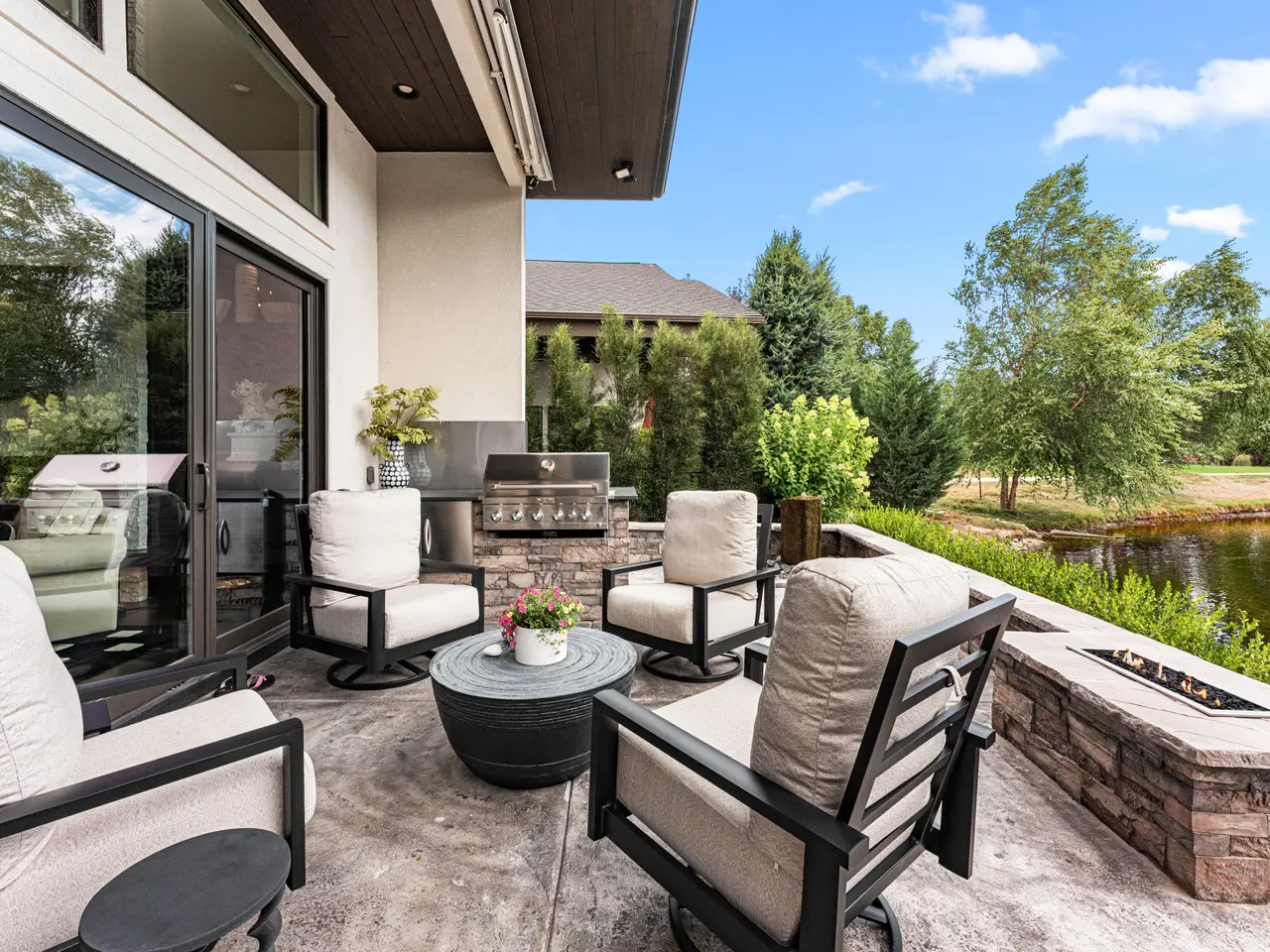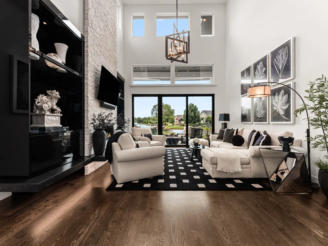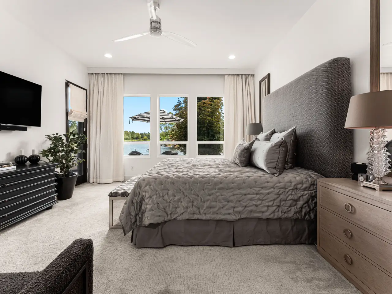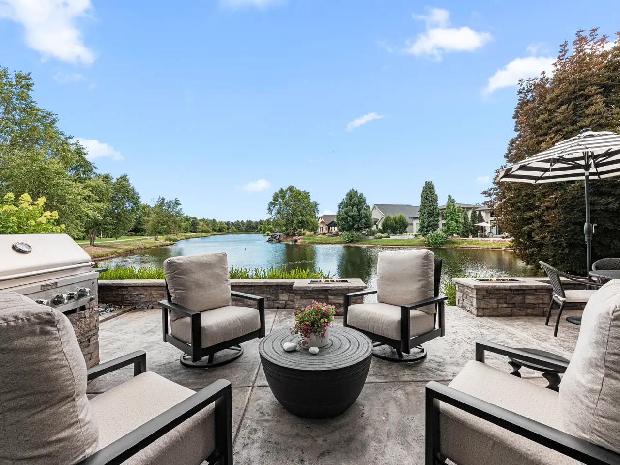 Experience refined living in this one-of-a-kind custom-built residence, set on a private waterfront lot within the prestigious gated Lakemoor community. Situated on a quiet, dead-end cul-de-sac with direct Greenbelt access, this prime location is just steps from the renowned Crave restaurant and the Lakemoor District shops. The sleek, modern interior is adorned with soaring double-height ceilings, rich hardwood flooring, and expansive windows that flood the home with natural light. The open-concept living space centers around a dramatic floor-to-ceiling stacked stone fireplace and flows seamlessly onto a covered patio equipped with a full outdoor kitchen. The kitchen features a curved granite island, Thermador and Sub-Zero appliances, a walk-in pantry, and a convenient dumbwaiter. The luxe master is set on the main level while the upper level hosts a large bonus room and full Jr. Suite. Enjoy exceptional amenities including two resort-style pools, sports courts, & walking paths with fabulous walkability!