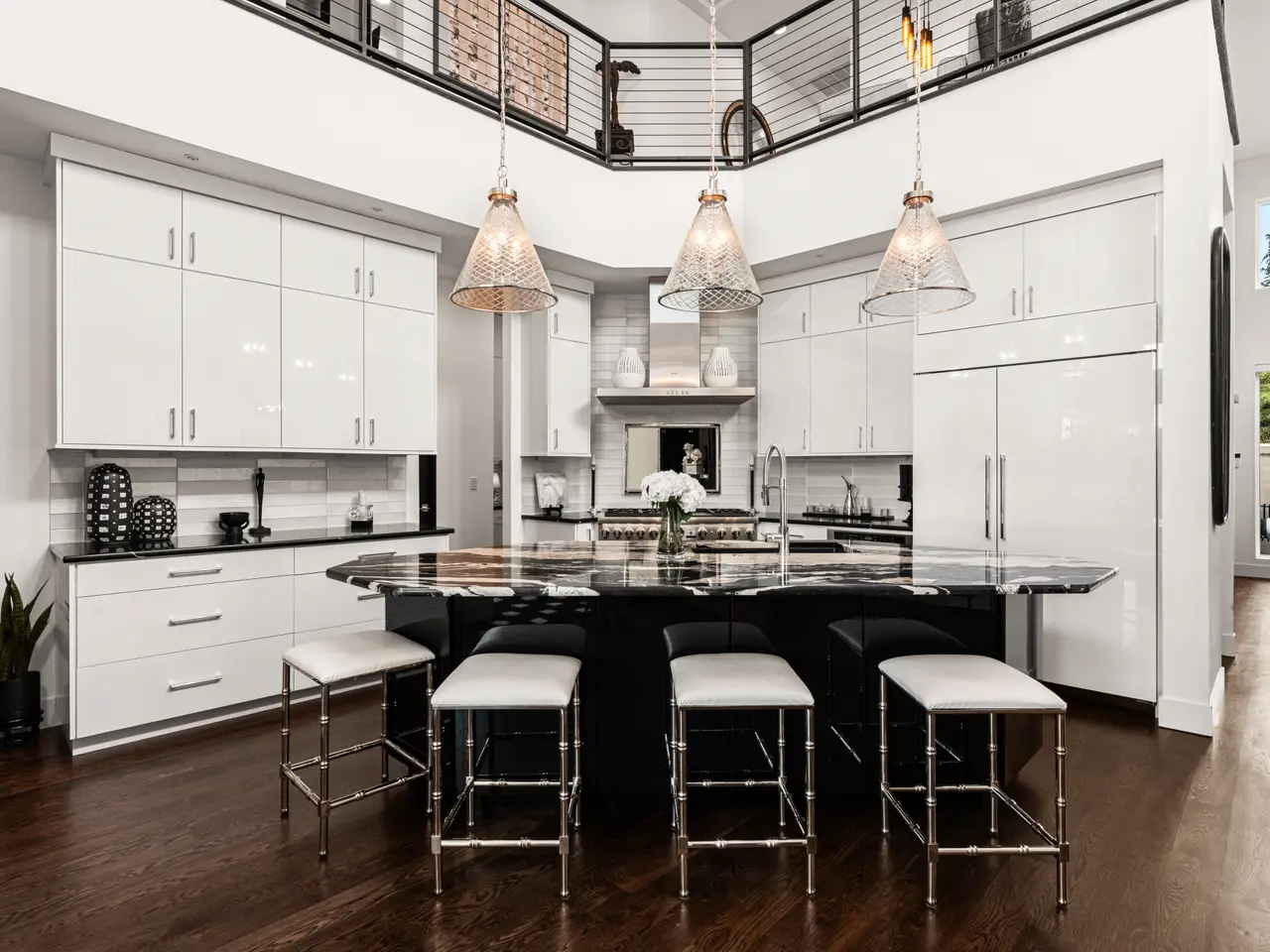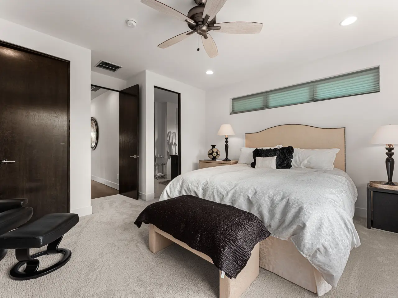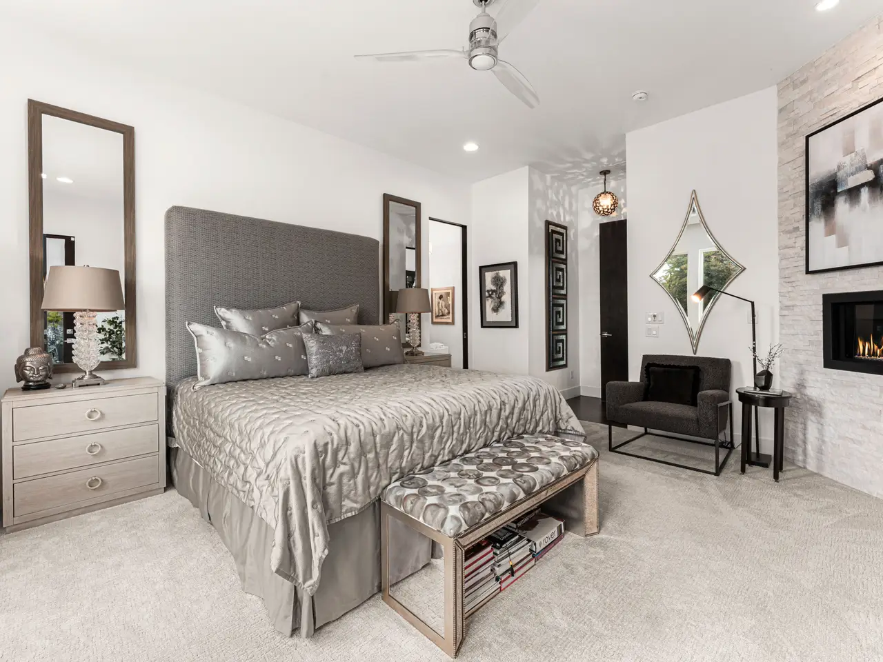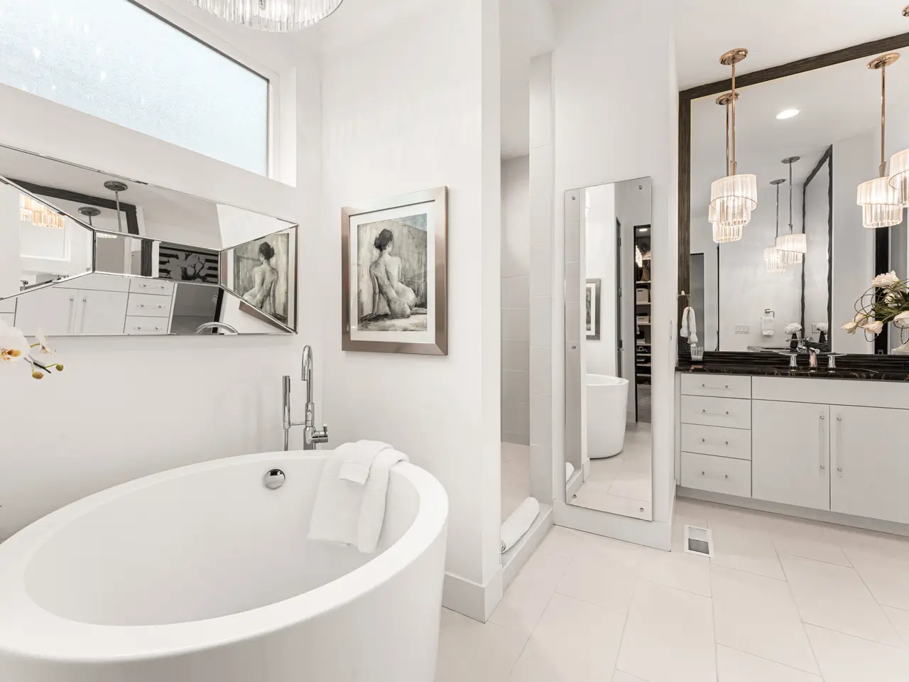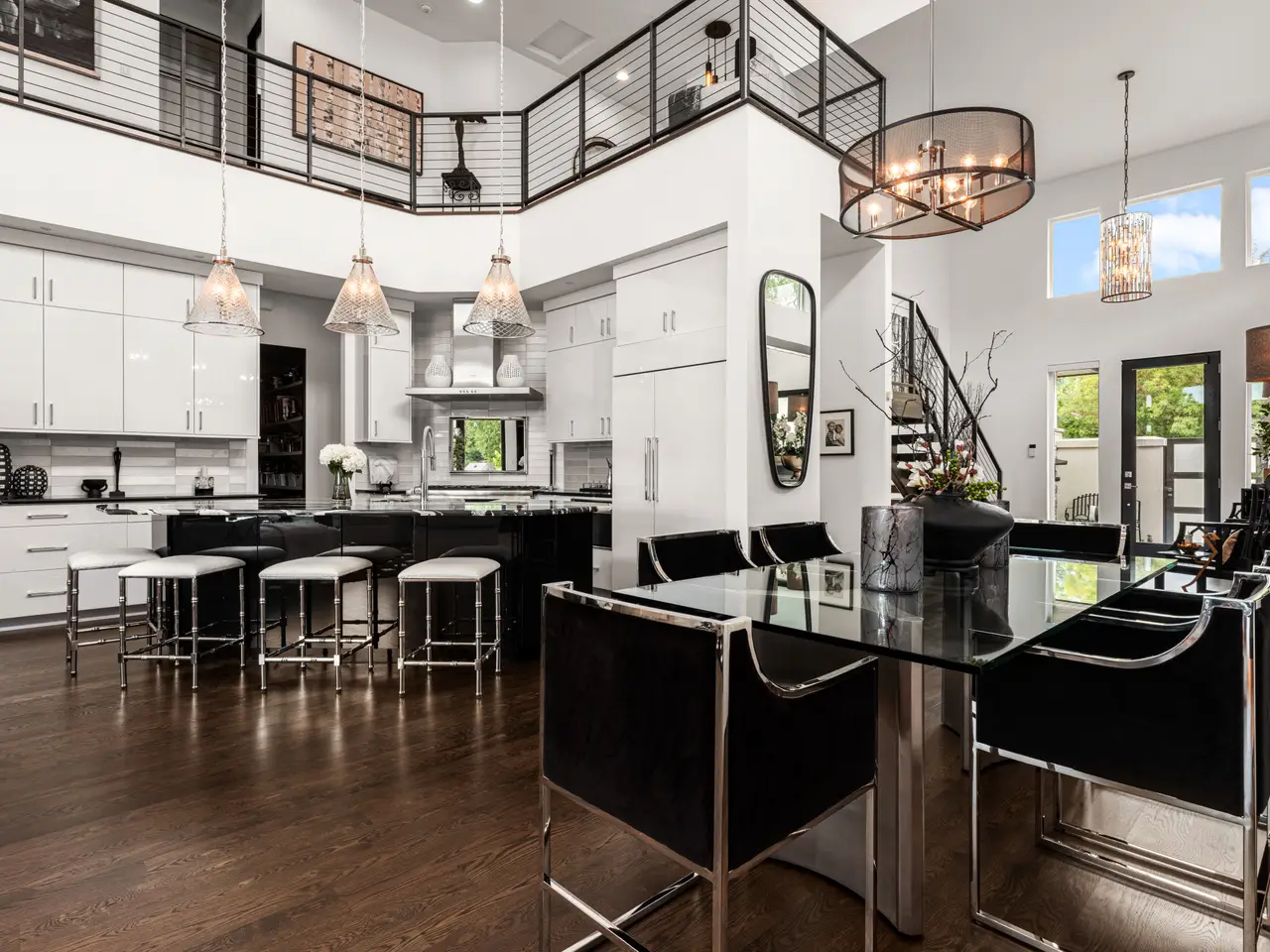 Experience refined living in this one-of-a-kind custom-built residence, set on a private waterfront lot within the prestigious gated Lakemoor community. Situated on a quiet, dead-end cul-de-sac with direct Greenbelt access, this prime location is just steps from the renowned Crave restaurant and the Lakemoor District shops. The sleek, modern interior is adorned with soaring double-height ceilings, rich hardwood flooring, and expansive windows that flood the home with natural light. The open-concept living space centers around a dramatic floor-to-ceiling stacked stone fireplace and flows seamlessly onto a covered patio equipped with a full outdoor kitchen. The kitchen features a curved granite island, Thermador and Sub-Zero appliances, a walk-in pantry, and a convenient dumbwaiter. The luxe master is set on the main level while the upper level hosts a large bonus room and full Jr. Suite. Enjoy exceptional amenities including two resort-style pools, sports courts, & walking paths with fabulous walkability!