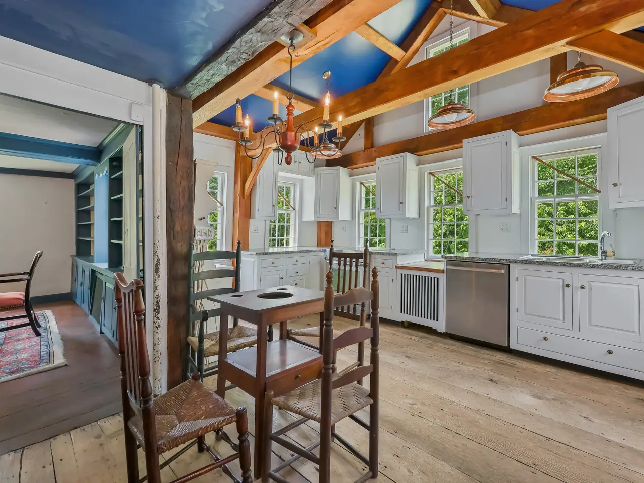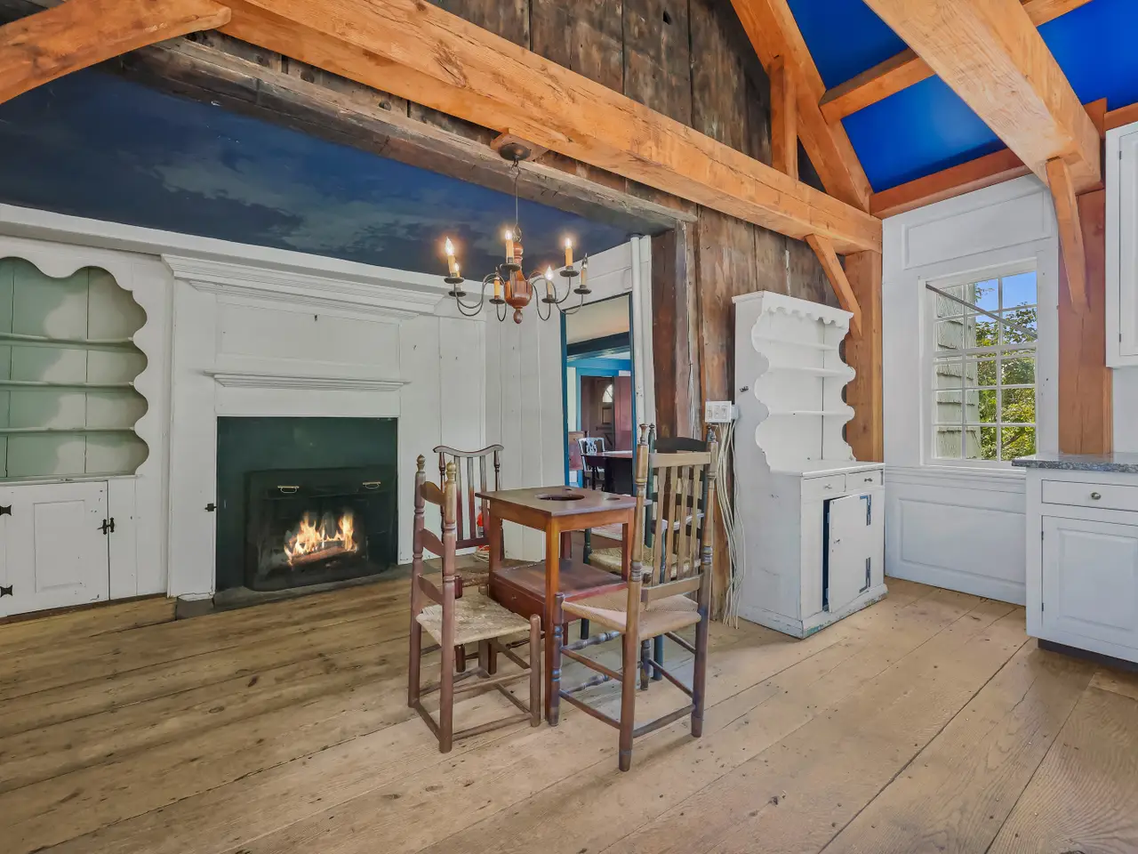 53 Old Town Street is more than a house; it is a living chapter of Connecticut history, gracefully updated for modern life, this impeccably preserved (circa) 1747 center-chimney homestead with clapboard facade, restored six-over-six windows, period hardware, and exposed post-and-beam framing sets an authentic tone that continues throughout the interior of the home, where a grand sitting room centers on an awe-inspiring eight-foot hearth. Original paneling, wide-pine floors burnished by generations, open beamed ceilings, built-in corner cupboards, and hand-wrought latches complete the historic canvas. A thoughtfully designed wing featuring a vaulted-ceiling primary suite with a spa-inspired bath, blending seamlessly into the home's scale and style. Outside, roughly 24 acres of rolling meadows, whispering woodlands, and fenced pasture with nearly a mile of stone walls and a classic post-and-beam barn only steps from the back door. There are endless possibilities-equestrian haven, boutique vineyard, Airbnb-worthy estate, organic farming, Historic heritage site or a private family retreat. Just minutes from the Connecticut River, Goodspeed Opera House, Gillette Castle , and less than two hours to Boston or New York, this tranquil sanctuary is the perfect country getaway. Request your private showing today. Deeds record that the house was erected by members of the Cone family, early farmers and patriots who reputedly sheltered Continental soldiers on their march to Valley Forge. Handwritten ledgers later describe the barn storing wool for Civil War uniforms and the meadows supplying hay to riverboat barges bound for Long Island Sound.