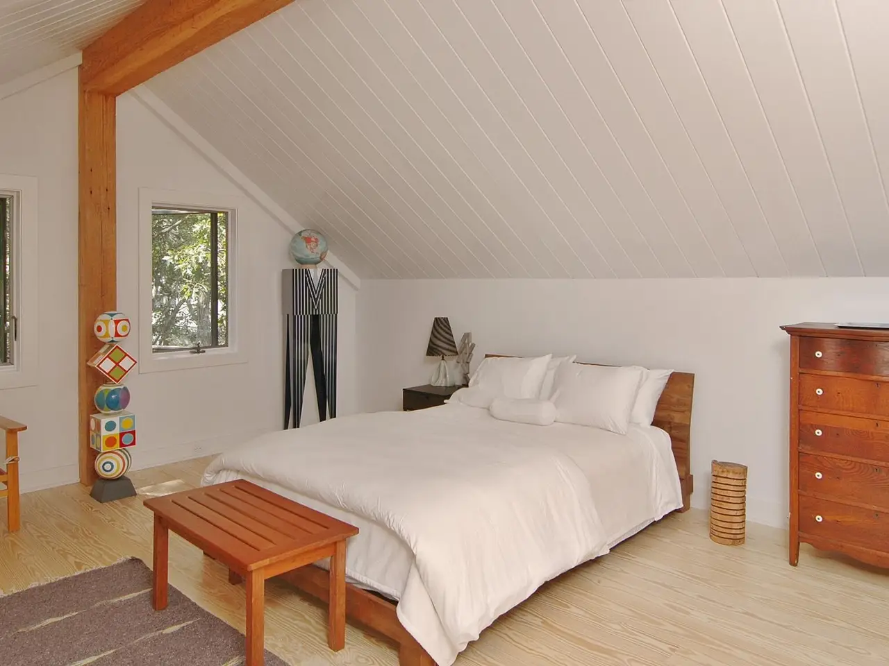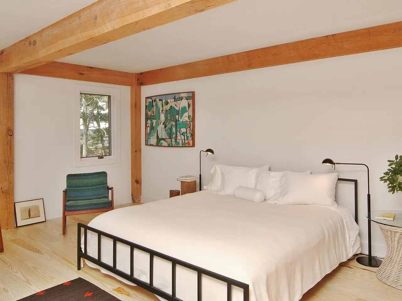 Rental Registration #: 25-3 This is a completely renovated three bedroom/2.5 bathrooms, additional rooms, den, on .67 acres very close to East Hampton Village. The house features a soaring, double height living room, floor to ceiling windows, open living area. Three zones central air-conditioning. New kitchen, high end stainless appliances, all counter tops are white calatrava marble , finely equipped, perfect for entertaining indoors or out. The master suite is on the ground floor with a luxurious en-suite bath, huge glassed shower and a soaking tub, gray Italian porcelain tile and marble cabinet tops. The master suite includes a windowed sitting room. The second floor has two bedrooms with queen beds, additional large open loft area with skylight overlooking the living room and a separate den/tv room. The second floor bath includes a large walk in shower, skylight. There is a 20 x 40' saltwater swimming pool which is surrounded by a 1200 square foot wood deck with lounge furniture, dining table and umbrellas, vegetable and herb garden for guests to enjoy. The house is on a gentle winding, dead end street which backs on a large preserve. The house is fully stocked with everything needed in the kitchen for cooking, serving, entertaining, a new Weber gas grill, all new linens, bath and beach towels, a sound system with speakers, WiFi, cable included. The setting is private, grounds have substantial trees. Just north of East Hampton Village, three miles to ocean or bay beaches.