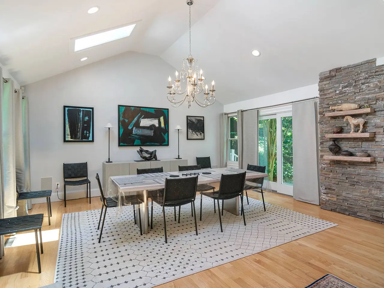Rental Registry #21-1231 Spend a magical and memorable summer enjoying the breathtaking beauty and serenity of Gardiner's Bay. You'll enjoy private access to its pristine salt-water beaches while living in this fastidious, private, and spacious home designed by noted architect Harry Bates. Located in the North Hollow community of East Hampton, village amenities are just minutes away, including restaurants, shops, Hampton Jitney, train station, and East Hampton airport. This 5-bedroom, 4-bath rental is sited on 0.84+/- acre and features a custom heated Gunite swimming pool, a pool house with kitchenette, an outdoor shower, and meticulously maintained grounds that integrate perfectly with the exterior entertaining areas. Multiple stone terraces provide charming spaces for entertaining or lounging in the Hamptons sun, as well as several dining areas. The custom outdoor kitchen features a large built-in barbecue, outdoor media/tv space, and spa. The stunning open interior areas include a custom kitchen, dining and living room with a beautiful stone fireplace. Cathedral ceilings, large and numerous windows, as well as glass doors fill the spaces with light and comfort. Top-of-the-line appliances including two ovens, two dishwashers and a wine cooler can be found in the eat-in kitchen. The luxurious accommodations continue into the well-appointed bedrooms. The primary bedroom defines a grand lifestyle with a private terrace, roof deck with lovely views and a primary bath with double granite-top vanity, soaking tub, and frameless glass-enclosed shower. The finished lower level offers a living area/media room, all new state-of-the-art professional gym, and separate laundry area with 2 top quality washers and dryers. All is power by a solar energy system. This exceptional East Hampton rental offers nearly every amenity one could need for a fabulous summer on the East End! Listing ID: 884542