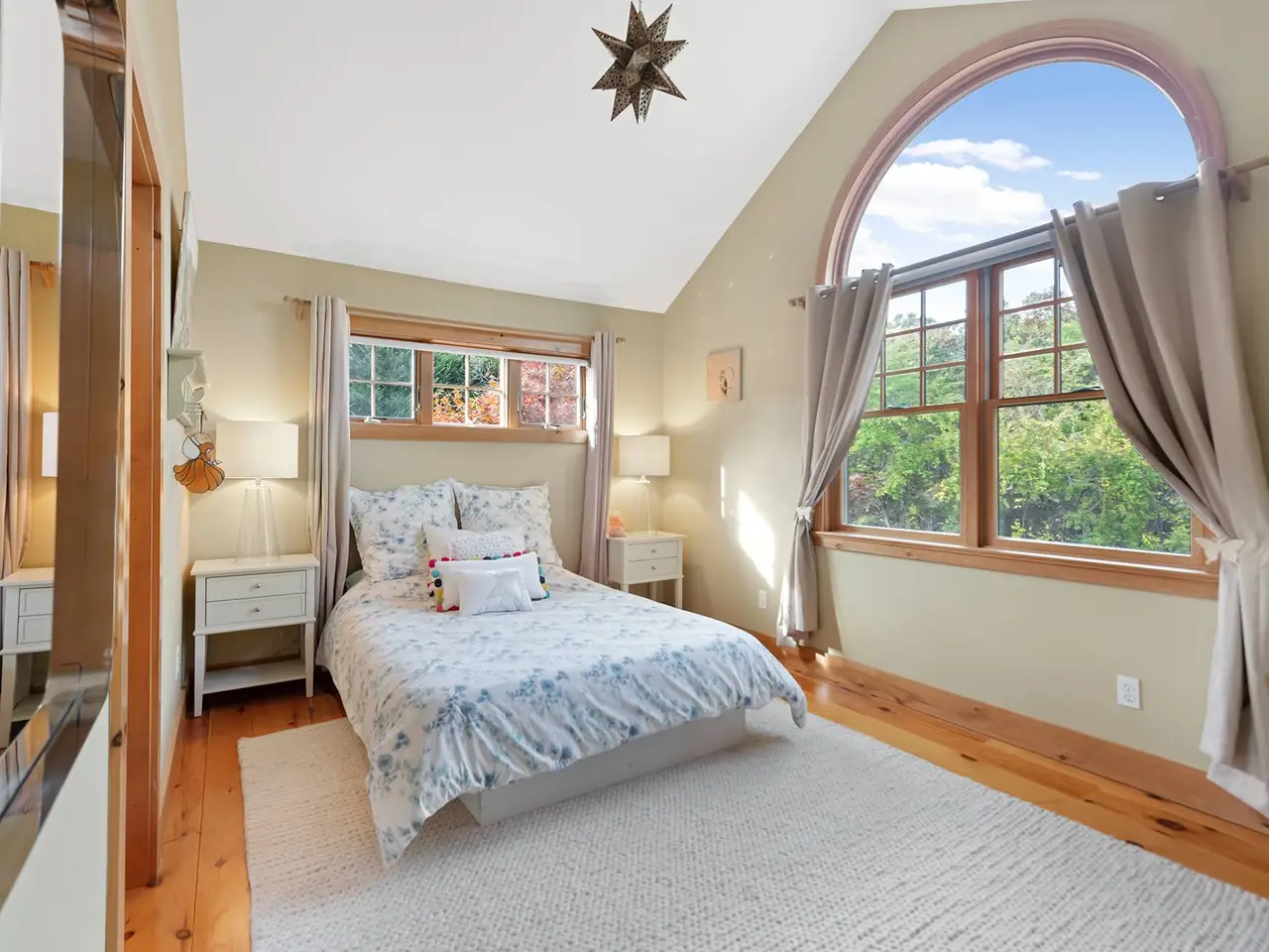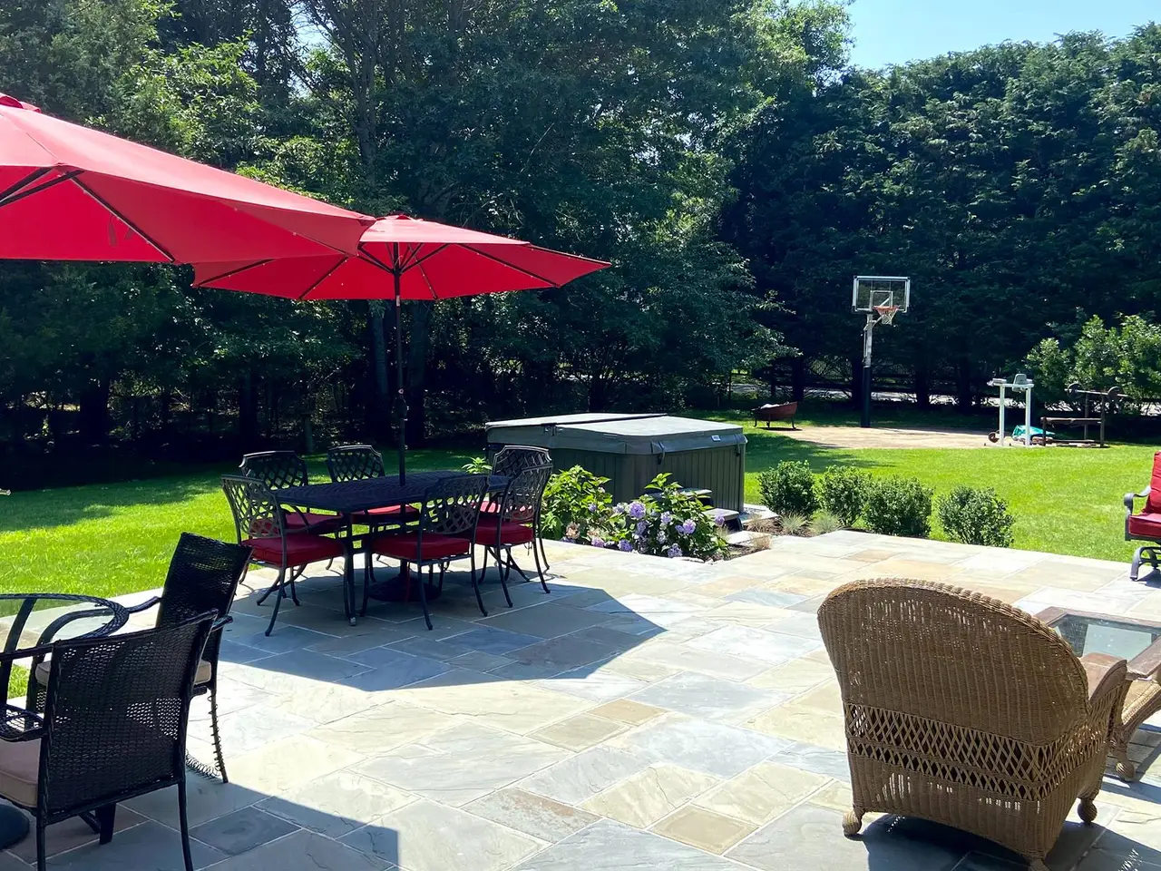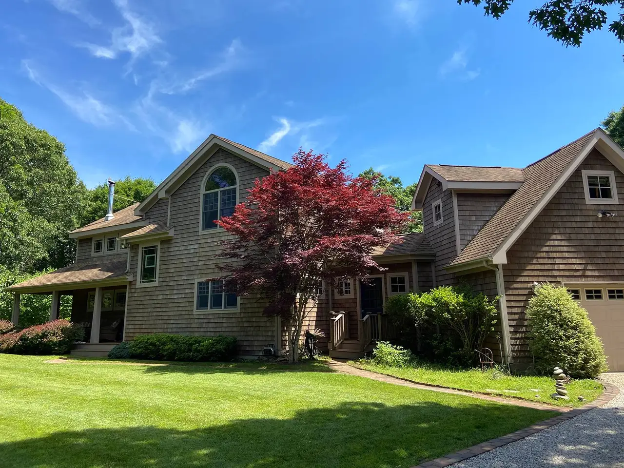 Rental Registry #23-865 - This one-of-a-kind home located on a private cul-de-sac offers a cathedral living room, den, loft, gourmet kitchen, four bedrooms and three and half baths. All amenities including central air, stereo system throughout interior and exterior, wireless internet access and finished lower level. There is an outdoor patio entertainment area with hot tub, outdoor sauna, cold plunge barrel, double deck with WiFi, covered patio with TV. The safe heated pool, outdoor shower and custom basketball court complete this perfect summer getaway. Proximity to village shops and ocean beaches. Short distance to the local farmers market, Nick & Toni's, the IGA grocery store, and Main Street. 741501