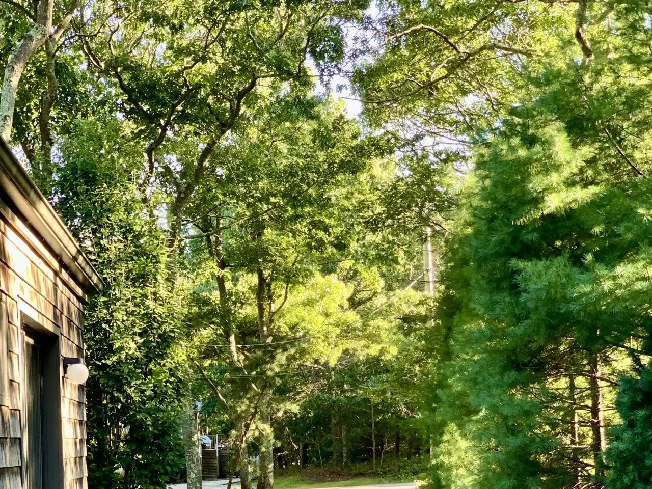 Interior photos coming soon! Charming retreat in East Hampton Village Fringe just minutes from Main Street, ocean beaches, shops and a host of dining experiences. Welcome to 33 Wooded Oak Lane, offering 1500 sq ft of comfortable light filled living space set in a private lush oasis with circular drive, front porch and wraparound deck with pergola and outdoor shower. This 3 bedroom 2 bath residence features an open concept living space on one level: spacious great room with vaulted ceilings, skylights and wood burning fireplace, open kitchen and dining area with banquet. The primary suite is on one side of the great room and two additional bedrooms on the other with bath between. Sliding glass doors lead to the deck perfectly situated for outdoor dining and entertaining and onto the heated pool. Just listed, call me to take a look at this excellent opportunity.
