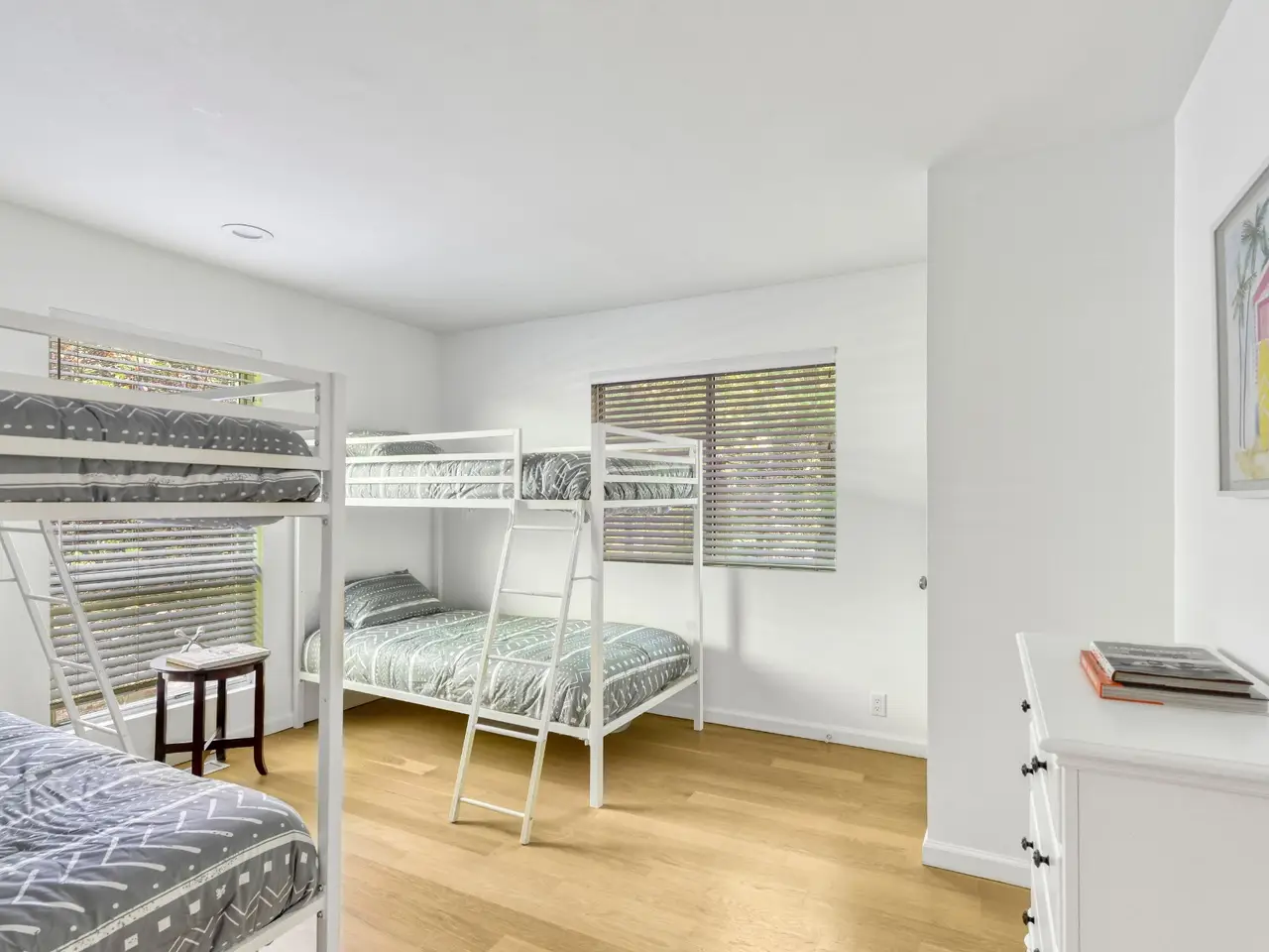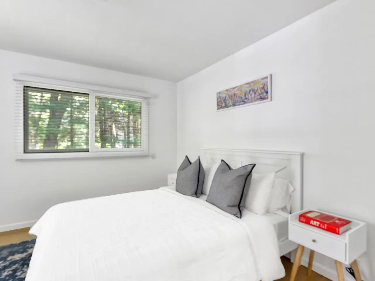 Nestled along the border of a wildlife sanctuary to its south, this stylish contemporary home features the perfect layout for lounging, entertaining or simply enjoying the rare sense of calm its environment bestows. The home feature an ensuite primary, three guest bedrooms, two baths and an open-style living and dining area. A partially open kitchen is surrounded by windows, a glass slider and a skylight above. Outside, a mahogany deck surrounds multiple seating and dining areas and an 18 x 32-foot heated pool. A wonderful lawn with a fire pit to the side blends gracefully with the endless views beyond. Close to East Hampton village and a variety of the most beautiful beaches in the world, this exclusive rental property elevates the extraordinary experience of life in the Hamptons to something truly sensational.
