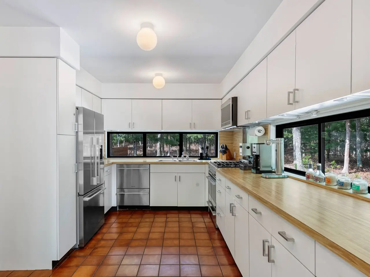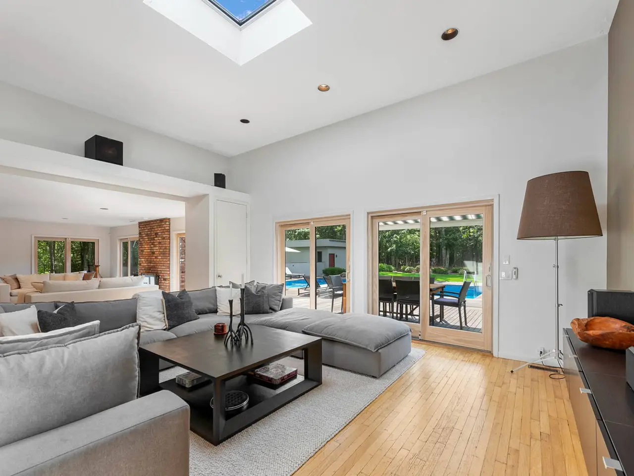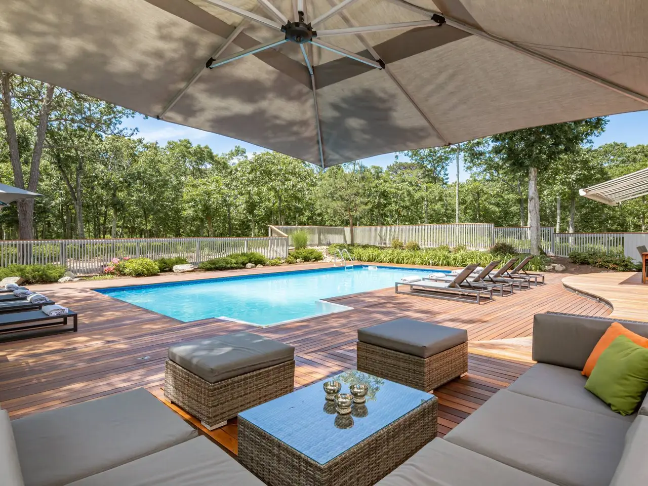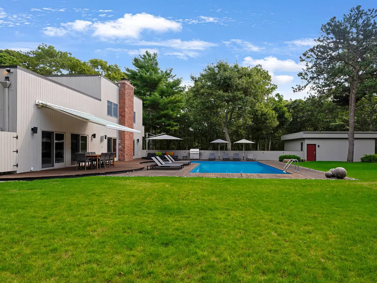 Located in the Northwest woods, just a few miles from the village. Stylish home offering three bedrooms and 2.5 baths of spacious airy living and set on a gorgeous and completely private three-acre lot bordering a reserve (no visible neighbors during the summer). Oversized living room, dining room and den with a 65-inch flat screen TV. Central air, heated pool, beautiful decking, BBQ, indoor-outdoor audio/video, fireplace, Wi-Fi (also, Wi-Fi enabled lights, thermostat, universal remote) -- Super spacious!