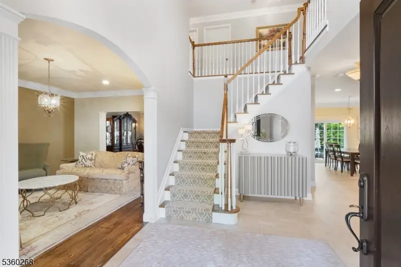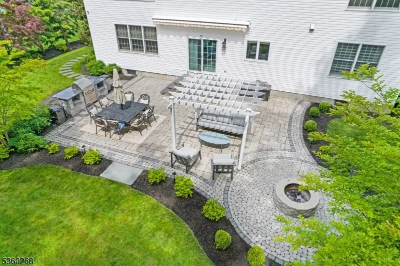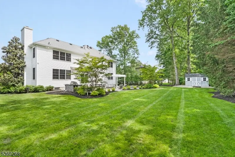 Outstanding brick front Center Hall Colonial set back beautifully on spectacular showcase property in a welcoming cul-de-sac neighborhood- a truly compelling luxury home abounding with custom amenities. 9 rooms including 4 airy bedrooms, 3 full baths, powder room, and brimming with many desirable features and captivating details, including volume ceilings, custom millworker, stylish lighting, lustrous hardwood flooring, and a newly renovated designer kitchen. This 3203 sq ft homes has a comfortable, spacious floor plan and seamless flow with the added utility and comfort of a sprawling finished lower level with full bath and kitchenette, plus a two-car attached garage, paved driveway with ample parking, expansive rear patio area with pergola, fire pit, and barbeque island, walk-in storage shed, pancake flat lawns with exquisite landscaping, and rear yard with tree-lined borders on three sides ensuring the utmost backyard privacy. Other notable features include abundant closet space, six-panel interior doors, neutral interior color scheme, central fire and security system including outdoor camera and Ring doorbell, newer 75-gallon hot water heater, no-maintenance brick and vinyl exterior siding, worry-free public utilities (all underground), and desirable cul-de-sac location; expertly maintained, skillfully updated, and move-in ready. An ideal commuter-friendly location offering easy access to connecting major roads and highways, and less than 23 miles to Newark airport.