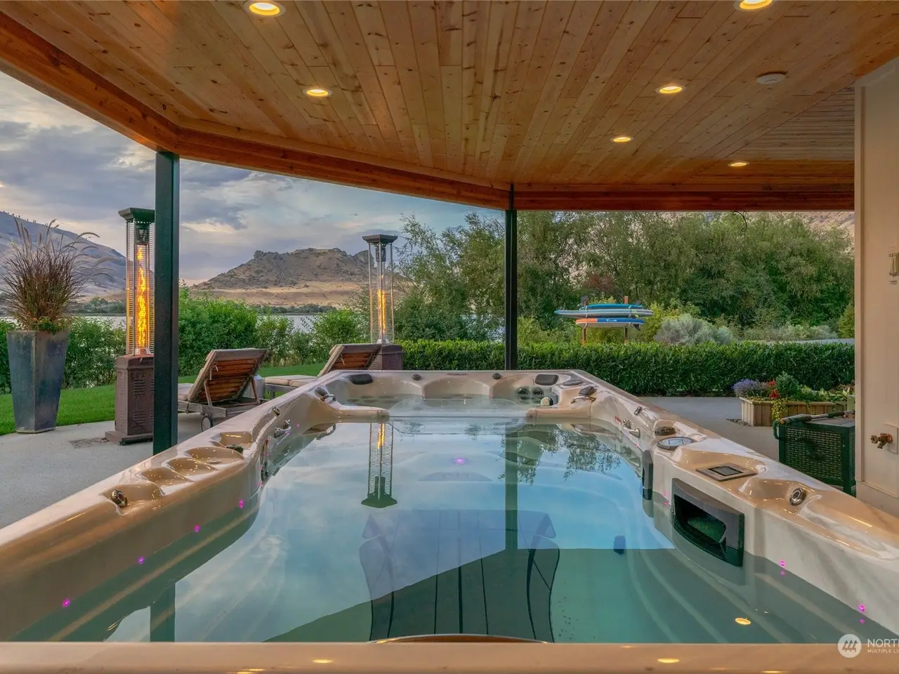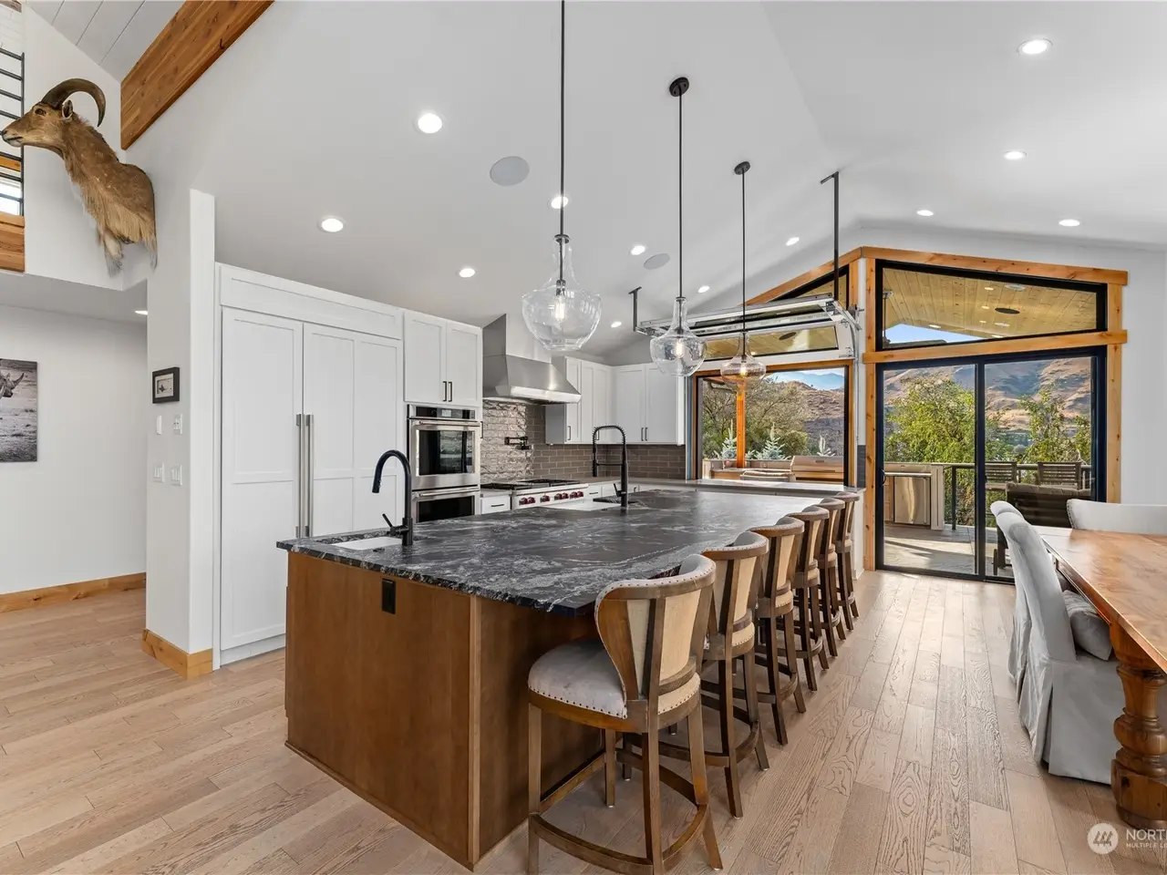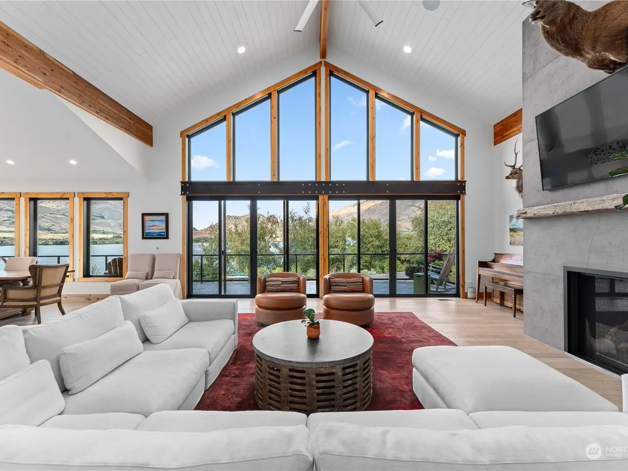 One-of-a-kind, 3bd/6bth 5,247sf home w/ 535' of waterfront on the Columbia River; thoughtfully designed for indoor/outdoor living & entertaining. The main level features a spacious great room w/ high ceilings, fireplace, dining room & a kitchen w/ high-end appliances, walk-in pantry, quartz countertops & granite island. Glass sliding doors open to wraparound deck & outdoor kitchen w/ fireplace, lounge & dining area. Primary suite w/ fireplace, spa-like bath, radiant heated floors & walk-in closet. 2nd bedroom w/ on-suite bath. Upper level loft w/ open office, bath & view balcony. Lower level w/ media room & kitchenette/bar, 3rd bedroom, bath, gym & swim spa/hot tub combo. Elevator, EV charger. Private dock w/ boat lift. Turn-key, furnished.