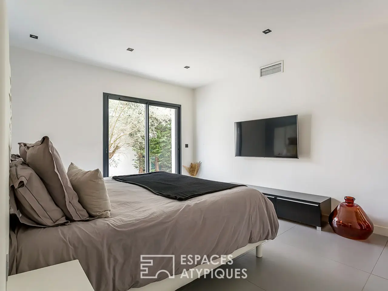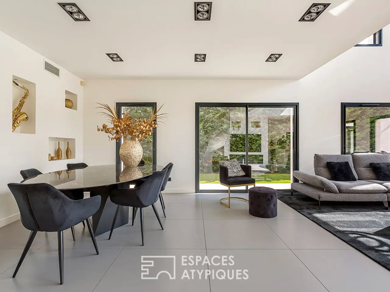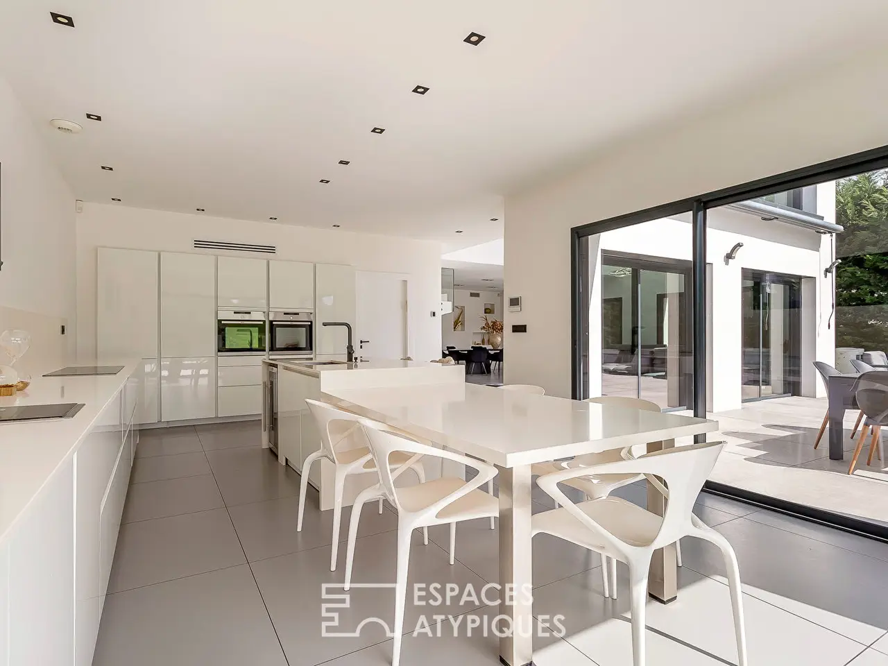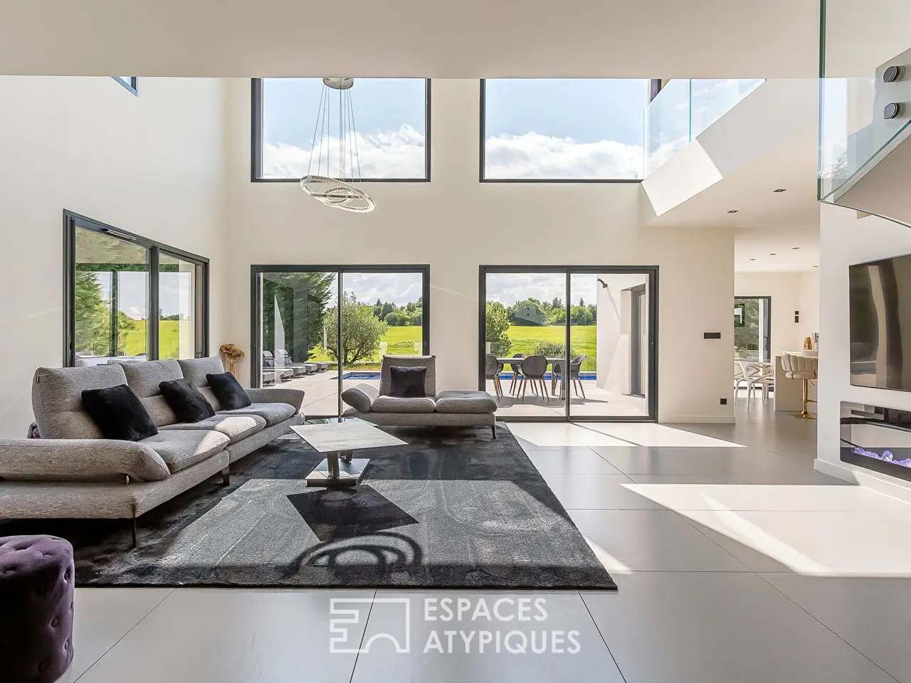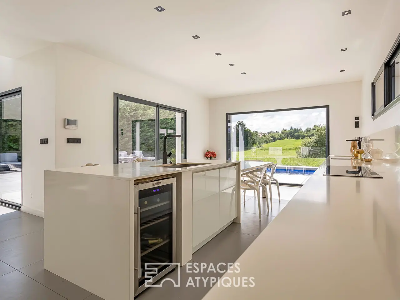 Nestled in the heart of a green setting in Écully, this contemporary house built in 2012, combines architectural elegance and high-end services in a peaceful and sought-after setting. This contemporary house of 234sqm of living space built on a plot of 790sqm with open views combines comfort and modernity. From the entrance, the generosity of the spaces impresses: a vast reception area of 80sqm, is organized around a living room, a dining area and a semi-open and equipped kitchen, all bathed in light thanks to multiple bay windows allowing to admire the view of a rare natural space. The whole communicates with a large terrace and an elegant swimming pool, perfectly integrated into the garden without any vis-a-vis. The sleeping area accommodates a Master Suite on one level of 37sqm, with private bathroom and access to the outside. Upstairs, four bedrooms, all with their own private bathroom, offering each occupant independence and privacy, a true luxury in everyday life. An exceptional address for a refined and bright daily life. ENERGY CLASS: / CLIMATE CLASS: . Estimated average amount of annual energy expenditure for standard use, indexed to the years 2021, 2022, 2023 Contact: Amandine: 06 50 86 46 08 REF. 11920 Additional information * 6 rooms * 5 bedrooms * 5 shower rooms * Outdoor space : 790 SQM * Parking : 3 parking spaces * Property tax : 2 200 € Energy Performance Certificate EPC blank or in progress Agency fees The fees include VAT and are payable by the vendor