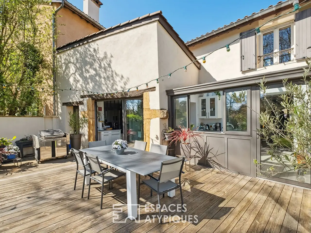 Located just a few minutes' walk from the center of Ecully, this hamlet house combines charm, modern comfort, and serenity. Secluded from view, it spans approximately 160 sqm and opens onto a 1,500 sqm landscaped garden. Upon entering, the eye is drawn to the light-filled kitchen. Its open-air ceiling accentuates the space and naturally extends the view toward the terrace and garden, promising convivial moments. Adjoining it, a spacious dining room precedes a cozy living room, enhanced by a fireplace, terracotta tiles, and beautiful windows overlooking the exterior. A multipurpose space completes this level, offering the possibility of an office, a reading room, or a fourth bedroom. Also on the ground floor, a master suite adds an extra touch of comfort. Built from a modern extension of over 23 sqm, the bedroom offers a dressing room and a practical and functional bathroom. Upstairs, two bedrooms enjoy beautiful light and share a bathroom. The peaceful, tree-lined exteriors are visible from each room and invite contemplation. A separate space of approximately 15 sqm can be used as a workshop, office, or studio. Just a short walk from the center, this light-filled house invites both tranquility and shared moments.A green setting where time seems to stand still, combining charm and convenience. ENERGY CLASS: D / CLIMATE CLASS: B Estimated average annual energy costs for standard use, based on 2021 energy prices: EUR2,050 and EUR2,830. Contact: Amandine - 06 50 86 46 08 REF. 12473 Additional information * 5 rooms * 3 bedrooms * 1 bathroom * 1 bathroom * Outdoor space : 1800 SQM * Property tax : 840 € Energy Performance Certificate Primary energy consumption d : 195 kWh/m2.year High performance housing