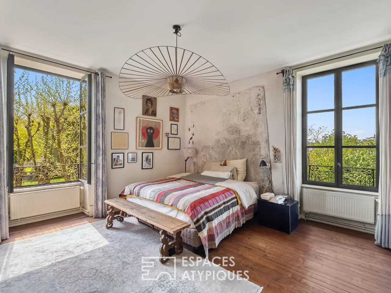 In Écully, in the heart of a green and preserved environment, this former castle outbuilding built in 1850 offers more than 380 sqm of living space. Set on a 1.5 hectare plot of land, 8,000 sqm of which is fenced, the property benefits from a 4,000 sqm landscaped garden, a swimming pool, and a unique atmosphere, combining historic charm and contemporary comfort.