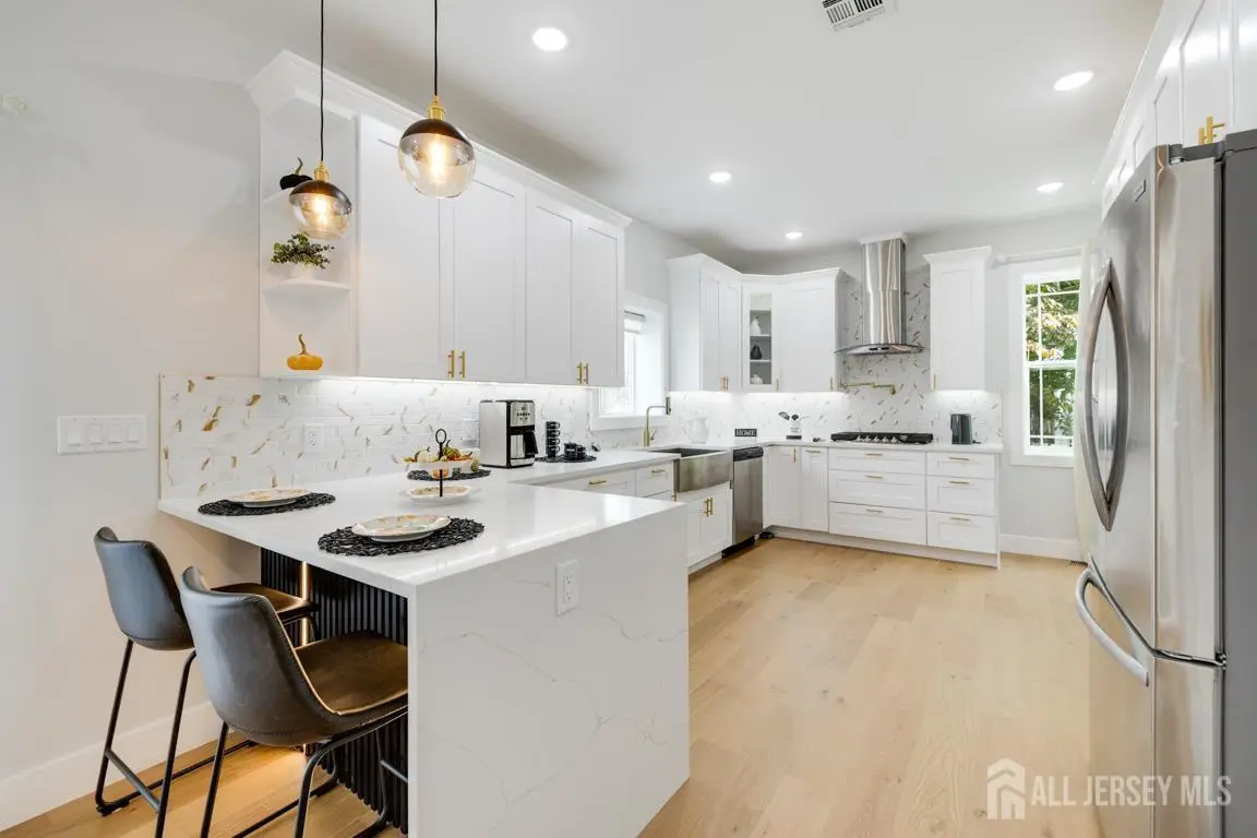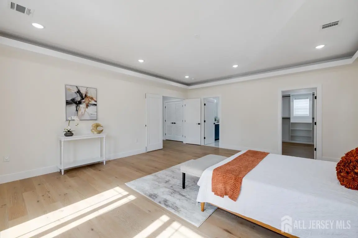 Welcome to this exquisite 5-bedroom, 5-bathroom home with a fully finished exterior access basement in Edison offering over **5,100 sq ft** of total living space, including the basement with a full bath. *** Experience luxury living with spacious interiors, modern design, and top-tier finishes throughout. The inviting floor plan features **9-foot ceilings on both levels** and a **first-floor bedroom with a full bath**, ideal for guests. *** The **gourmet kitchen** is a chef's delight equipped with a cooktop, high-end appliances, custom cabinetry, and a convenient breakfast bar perfect for casual dining. The **family room** exudes warmth and sophistication with an elegant electric fireplace and refined deco. *** Upstairs, the **primary suite** offers a spacious closet and a spa-like ensuite bath with a soaking tub for ultimate relaxation. An additional **ensuite bedroom** plus two more generous bedrooms sharing a full bath provide flexibility and comfort for family or guests. The **second-floor den** makes an ideal office, library, or extra lounge area, complete with access to a private balcony. *** Additional premium features include **Pella windows**, **dual-zone HVAC**, **EV charger setup**, and **security camera readiness**. The **finished basement**, with ceilings over 8 feet and a full bath, provides endless possibilities for a home theater, gym, or recreation space. *** Nestled in a sought-after Edison neighborhood, this home offers **easy access to major highways, top-rated schools, shopping centers, dining, parks, and the Edison NJ Transit station** ( and #8776;50 minutes to NYC). Close to **Rutgers University, RWJ Hospital**, and major supermarkets and malls, this property delivers the perfect blend of **luxury, convenience, and location**. **Truly one of the finest homes in South Edison a rare opportunity not to be missed!**