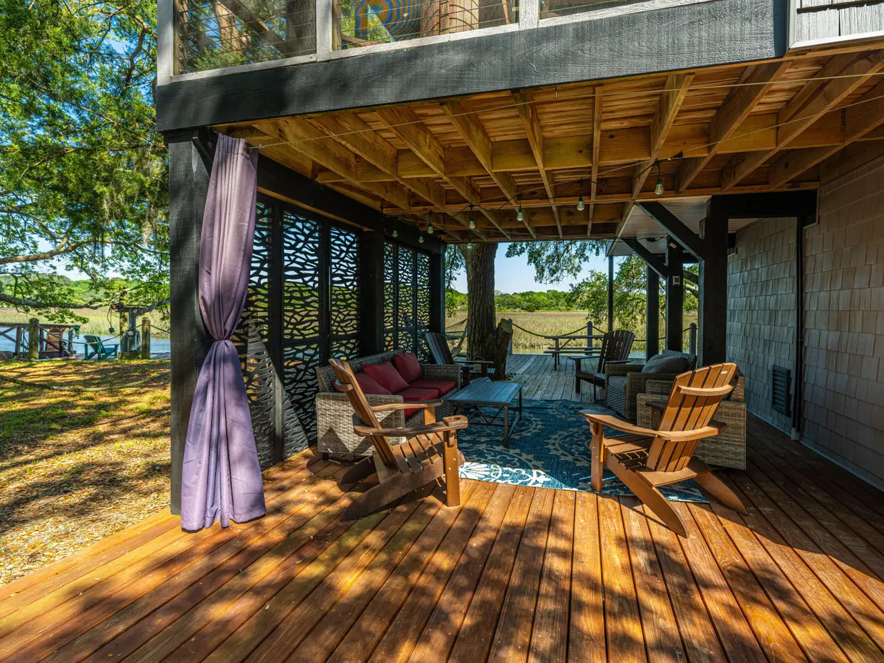 King's Grant house - glorious creekside and direct ocean views with pedestrian access to Edingsville Beach. Almost total renovations in 2019 (see feature list in documents), this designer decorated home is offered fully furnished including kayak (jon boat negotiable). Spectacular views abound from every room, balcony, screen porch, and multiple ground level decks. The dock with float awaits your boating/kayaking/fishing adventures. Hurry, don't miss this one.