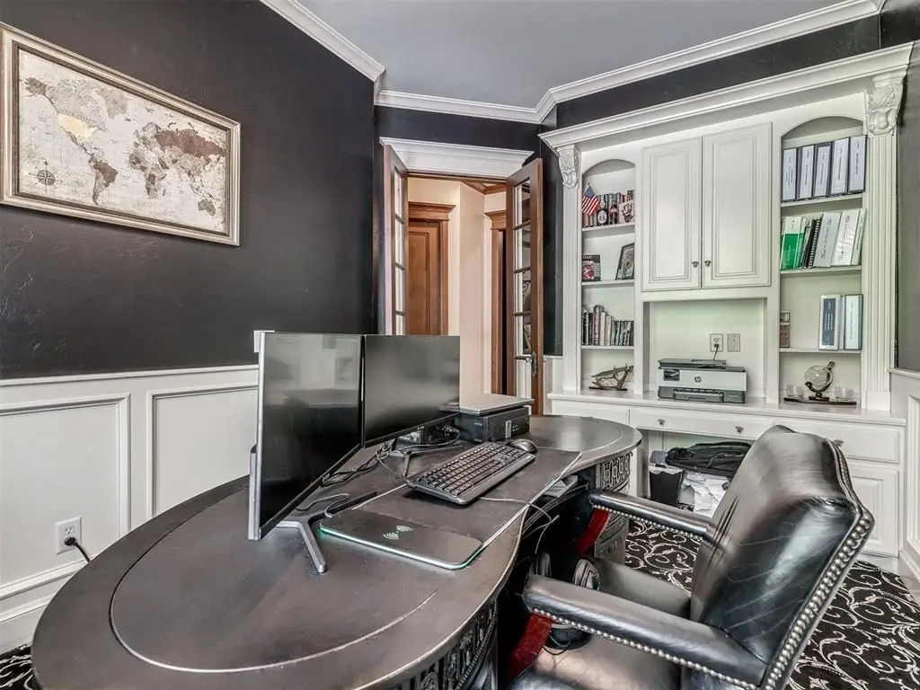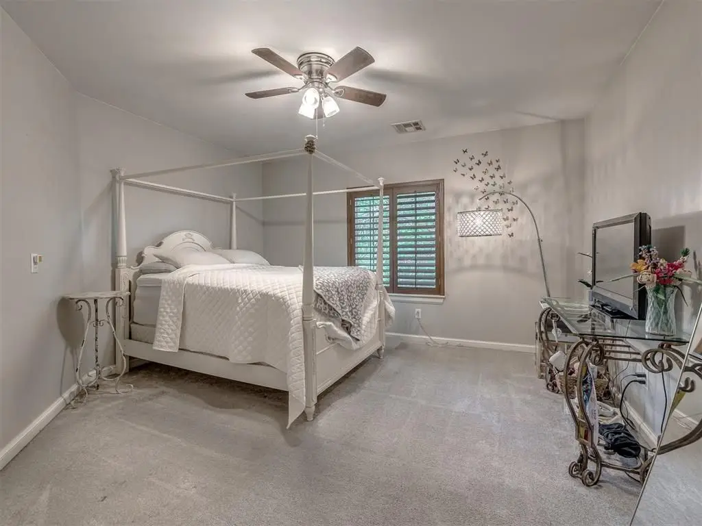 he perfect backdrop for turning life’s most meaningful moments into lasting memories. Nestled along the 5th fairway in the prestigious gated community of Fairfax Estates, this exquisite residence offers timeless elegance, inviting warmth, and sweeping golf course views. Picture ending each day with a front-row seat to breathtaking sunsets from your covered back porch, complete with a sparkling pool and generous outdoor living designed for both entertaining and relaxation. Step through the grand entry to find a spacious formal dining room, a sweeping staircase, and a refined sitting area off the foyer, setting the tone for the elevated living throughout. Rich wood floors flow across the main level, enhancing both beauty and comfort. The central living room features a cozy fireplace, custom built-ins, and easy flow to the chef-ready kitchen, equipped with abundant cabinetry, a center island, walk-in pantry, and expansive prep space. Just off the private primary suite is a dedicated study with double glass doors, built-in bookcases, and large windows, ideal for a home office or quiet retreat. The primary suite offers serene backyard views and a spa-inspired ensuite with dual vanities, a luxurious jetted tub, walk-in shower, and custom closet. Upstairs, a versatile flex room awaits, perfect as a media room, home gym, or bonus lounge. Secondary bedrooms are bright, spacious, and include walk-in closets. A private downstairs guest suite adds flexibility and comfort. The backyard is a true showstopper with a stunning pool, lush landscaping, and space to entertain under the open sky. Upgrades include a new roof (2020), South HVAC (2020), upstairs HVAC (2024), and North HVAC (2011). Fairfax Estates offers residents a community pool, pickleball, basketball, and volleyball courts, a playground, and regular neighborhood events. Welcome home to refined comfort and resort-style living.