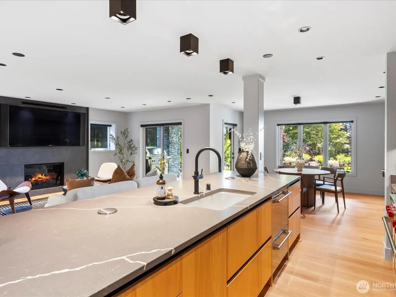 Some homes speak boldly, this one speaks in design language & quiet luxury. Reimagined from the studs w/ $4M+ in curated investment, this never-before-occupied PNW retreat reflects a rare caliber of craftsmanship & architectural mastery. Elevated above manicured grounds w/ layered Puget Sound views, feat multiple heated covered outdoor spaces for year-round connection. Inside, radiant floors run throughout, even the 3-car garage, underscoring a quiet commitment to quality & everyday comfort. Dual gourmet kitchens are both art & utility, anchored w/ a suite of top of the line appls & a coveted back pantry. Spa-level primary suite, skylights, AC & fully integrated smart systems. Private 1,100+ SF ADU mirrors the same artistry. Pre-inspected!