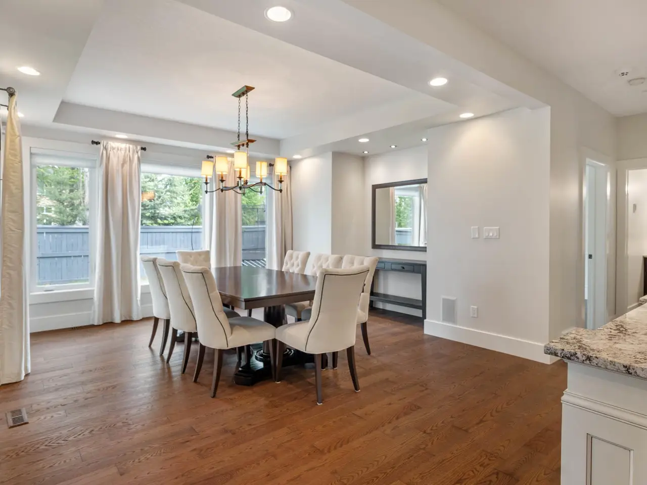 Steps from the serene MacTaggart Ravine, this elegant SW Edmonton home offers nearly 5000 sqft of beautifully designed living space. With 6 spacious bedrooms and 4 full baths, it’s ideal for multi-generational living. A main floor bedroom with adjacent full bath provides flexibility, while a private basement entrance from the garage suits extended family. The fully finished basement features a wet bar and a large rec room—perfect for entertaining. Enjoy the expansive dining area with views of the backyard and covered deck. The bright, open layout has a main floor with chefs kitchen, loads of cabinet space, large pantry and a mud room with built in mill work. Upstairs includes a luxurious primary suite with a massive custom walk-in closet and spa-like 5-piece ensuite. 2 furnaces/AC and infloor heat. Second-floor laundry adds everyday ease. Located in a prestigious, family-friendly community near top-rated schools, shops, and restaurants—this is refined living at its finest.