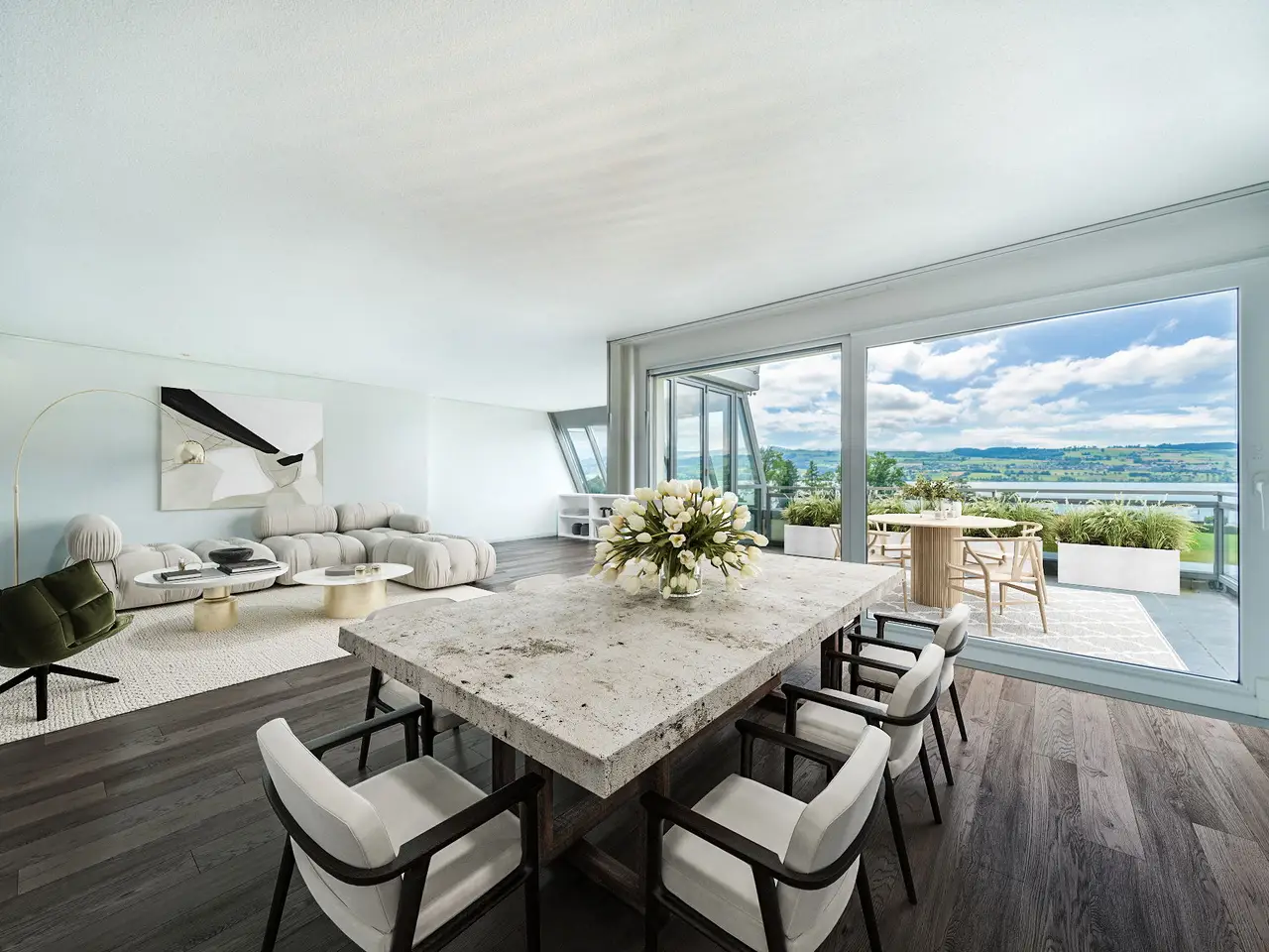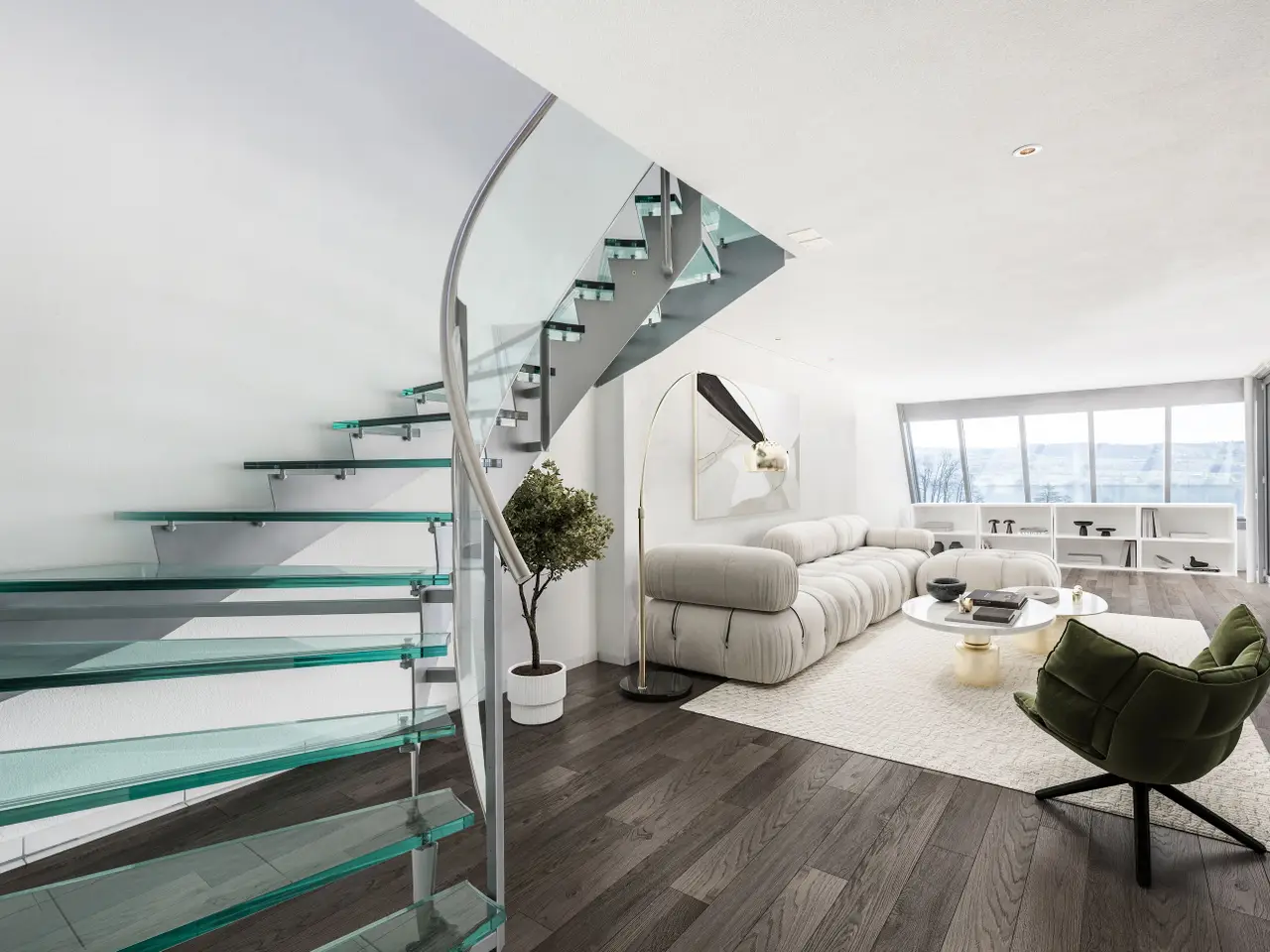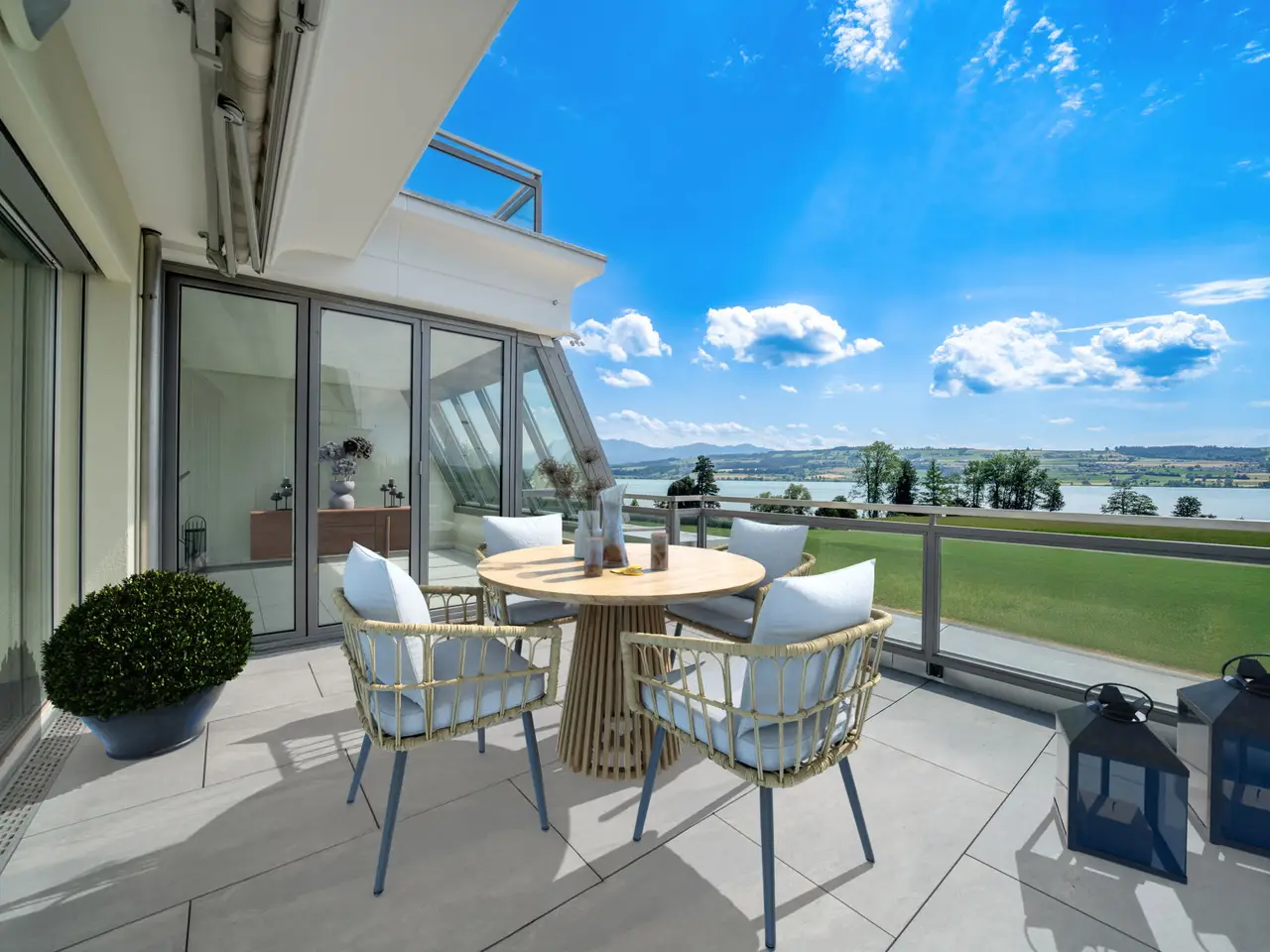 The elegant 5.5-room maisonette apartment welcomes you with an open and light-flooded atmosphere. In addition to its feel-good character, the apartment offers plenty of comfort with state-of-the-art fittings, a flexible floor plan and a fantastic terrace. The spacious living and dining area with panoramic windows offers a magnificent view of Lake Sempach. This and much more makes this apartment a real gem. • Unobstructed and fantastic view of the Lake Sempach • Central and preferred residential area • Just a few meters from the lake • High-quality and timeless interior design • Elevator to the apartment Our Bader team is always available via phone, WhatsApp, FaceTime and email.