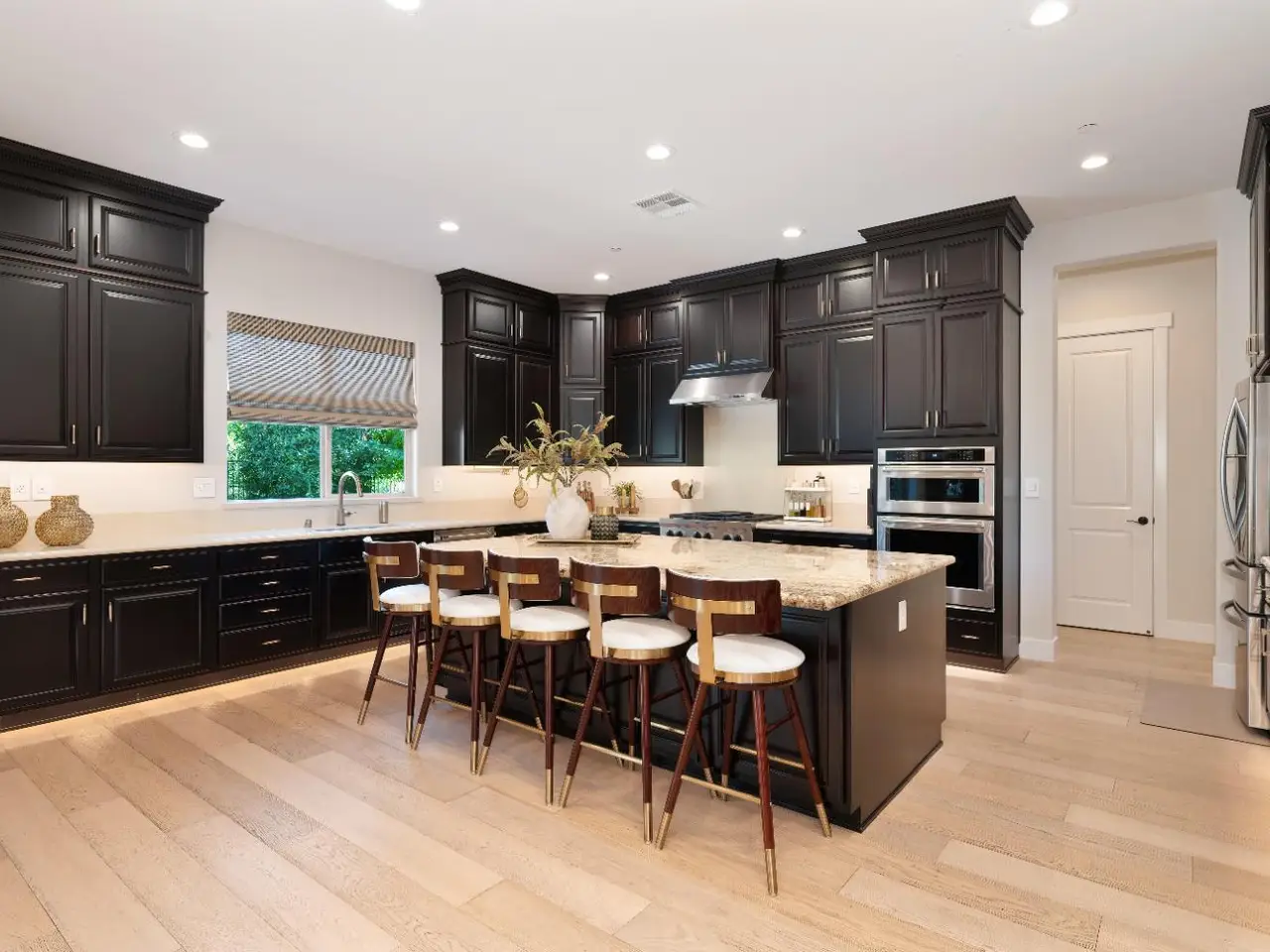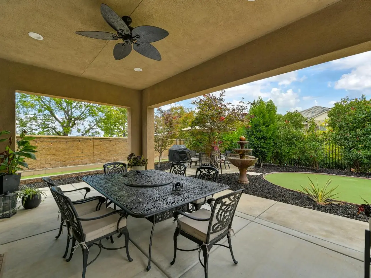 Your dream home in the prestigious 24-hour guard-gated community of Serrano Golf & Country Club awaits. This elegant residence features an open floor plan with hardwood floors, designer accents, and expansive living spaces. The main level offers a private office with French doors, guest suite with full bath, 1/2 bath, living room, pantry, formal dining room with custom lighting and a chef's kitchen which includes high-end appliances, and an oversized island perfect for cooking and entertaining. Upstairs you'll find a loft with balcony and panoramic views, two en-suite bedrooms with walk-in closets, and a luxurious primary suite with private balcony, spa-like bath, and dual walk-in closets. Enjoy indoor-outdoor living with large sliders opening to a Bocce court, private putting green, and outdoor dining areas. Additional features include a mudroom, 3-car tandem garage with epoxy flooring, and house is pre-plumbed for solar. Close proximity to parks, trails, Folsom Lake, and top-rated schools. Serrano Country Club offers world-class amenities: an 18-hole championship golf course, multiple dining venues, fitness center, junior Olympic pool, wading pool, four lighted tennis courts, and a spa.