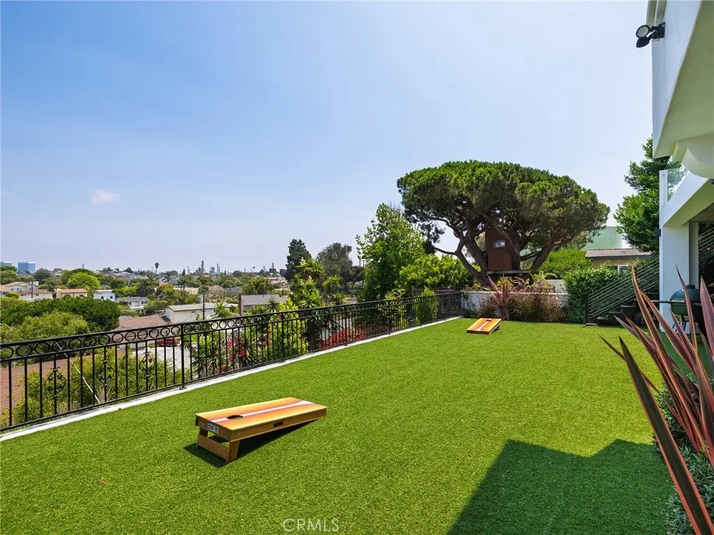 Perched on one of El Segundo’s most elevated and sought-after streets, this fully updated Mediterranean luxury estate sits at the end of a quiet cul-de-sac, offering unobstructed, breathtaking views of the city skyline. With over 4,500 square feet of refined living space, this home was thoughtfully designed for both elegant living and effortless entertaining. Upon entry, you're greeted by a seamless blend of indoor and outdoor living. Both levels feature 16-foot stacking glass multi-slide doors, creating a smooth connection between the sunlit interiors and expansive outdoor terraces. The result is a true entertainer’s dream, where panoramic views and sophisticated finishes set the tone. The first floor offers a media and entertainment space unlike any other, complete with a 97” Samsung TV, embedded Bowers & Wilkins speakers, a handcrafted terrazzo glass bar, sleek fireplace, wet bar, and custom feature wall. Slide open the aforementioned doors to reveal a beautifully remodeled backyard perfect for entertaining. This level also includes a large primary suite with a fully updated bath, a second spa-like bathroom with sauna situated between two spacious bedrooms, and a conveniently located laundry room. Upstairs, the gourmet kitchen—crafted by Euroconcepts of Beverly Hills—features Italian Arclinea custom cabinetry, Sub-Zero refrigeration, Wolf appliances, an espresso bar, floating hood, and sweeping neighborhood and park views. The open-concept layout flows into the stylish living room, anchored by a modern fireplace and opening to an expansive deck—ideal for indoor-outdoor gatherings. The second-floor primary suite is a sanctuary of its own, boasting high-end finishes, a huge walk-in closet, a dedicated laundry area, and an updated bathroom with separate tub and shower. Two additional office spaces and another upgraded full bath complete the upper level. Additional highlights include: central air conditioning throughout, a private elevator, an oversized driveway fitting multiple cars, and two separate garages offering a total of three garage spaces A rare offering with commanding views, cutting-edge design, and exceptional functionality—this estate is a must-see for buyers seeking luxury living in El Segundo.