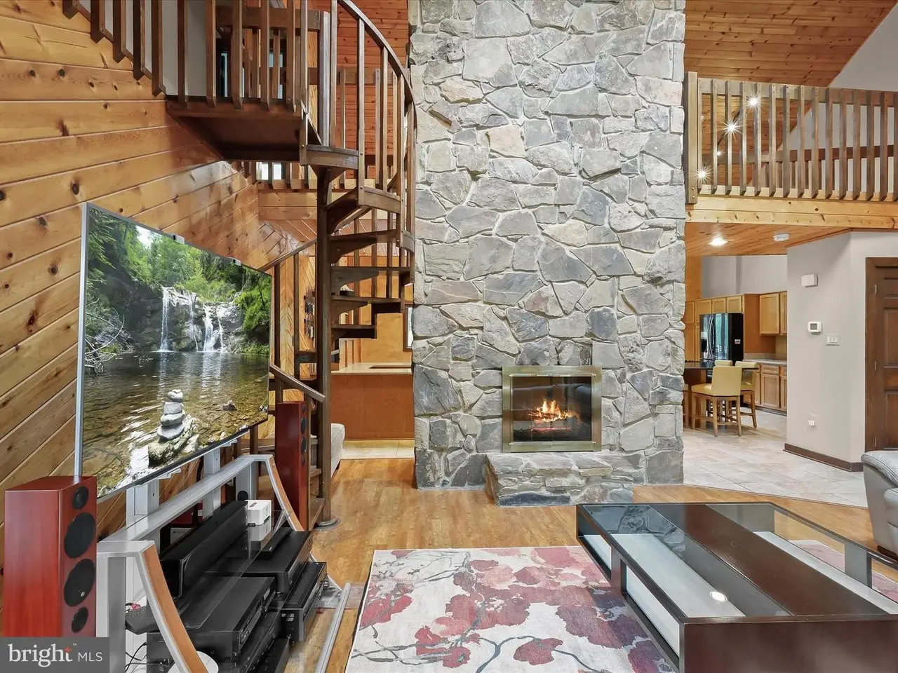 Welcome to your private retreat in one of the area's most sought-after communities! This one-of-a-kind custom home offers a truly unique living experience that will make you feel like you are on vacation every day. Featuring five bedrooms and three full bathrooms spread across four thoughtfully designed levels, this home provides generous space, flexibility, and privacy for every lifestyle. Nestled on over 4 acres of beautifully landscaped grounds that back to trees, the setting offers tranquility and seclusion while still being conveniently located near everything you need. From the moment you step inside, you are greeted by soaring vaulted ceilings with wood planks, skylights, and an abundance of natural light throughout. The main level features an impressive living room with a two-story stacked-stone wood-burning fireplace that is double-sided and shared with the kitchen, creating a warm, welcoming ambiance. A bar area off the living room is perfect for entertaining. The expansive kitchen is a chef's dream, fully equipped with stainless steel appliances, granite countertops, and a dining area with access to the deck overlooking the backyard and woods. Upstairs, the primary bedroom suite is a true escape, with a luxurious en-suite bathroom that includes a jetted tub and walk-in steam shower, along with a large walk-in closet and dressing vanity area. Three additional bedrooms and a second full bathroom complete the upper level. The lower level includes a spacious family room, a fifth bedroom, and a third full bathroom. A versatile bonus room on this level is ideal for an office, playroom, or even another bedroom. Downstairs, the basement provides even more flexibility with a recreation room and a large office with built-ins. Don't miss this rare opportunity to own a spectacular property that combines architectural distinction with a serene, resort-like atmosphere.